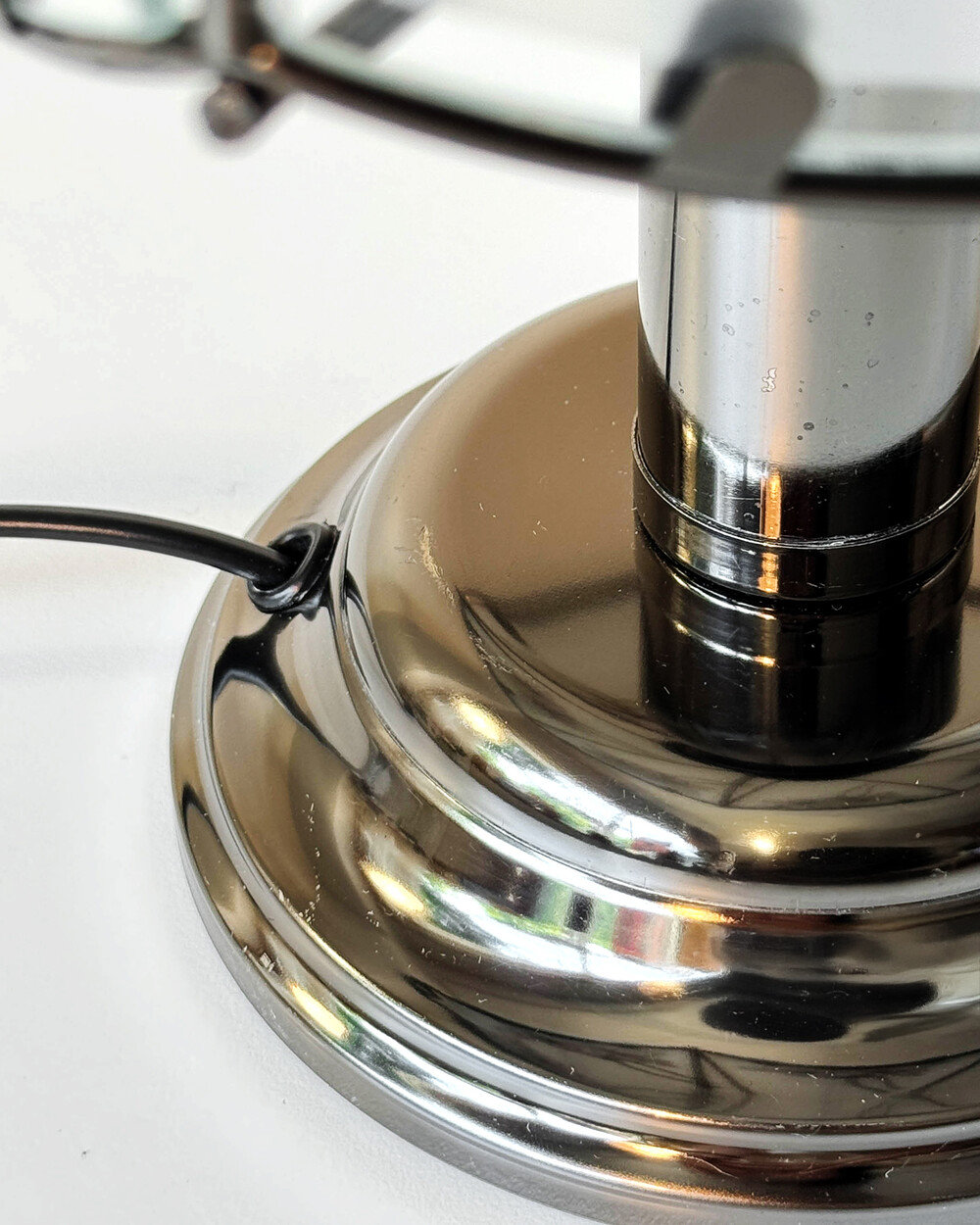메탈 소재로 이루어진 베이스와 프레임은 광택감이 도는 다크 그레이 컬러입니다.