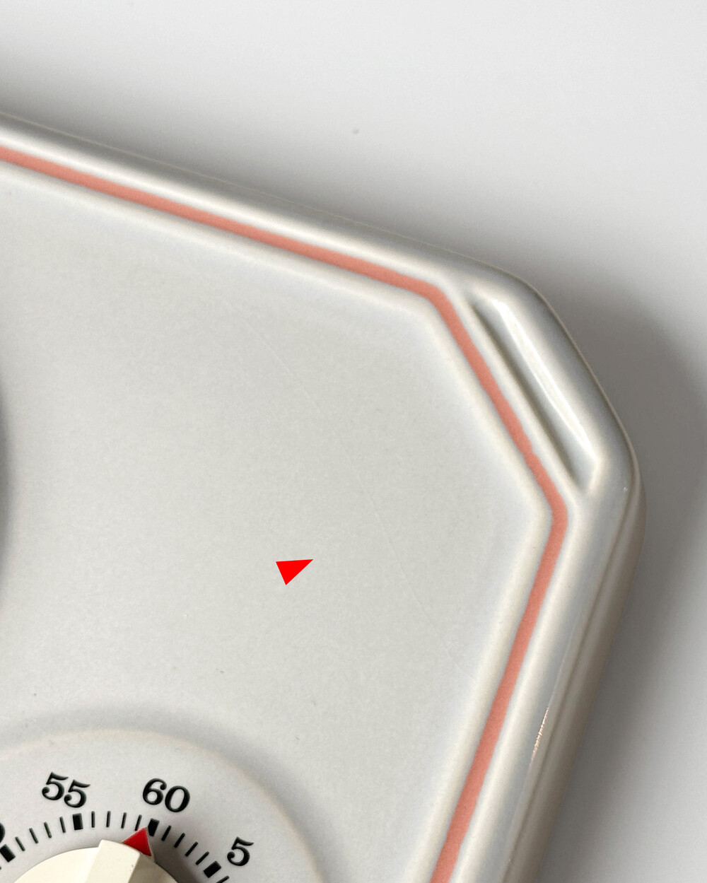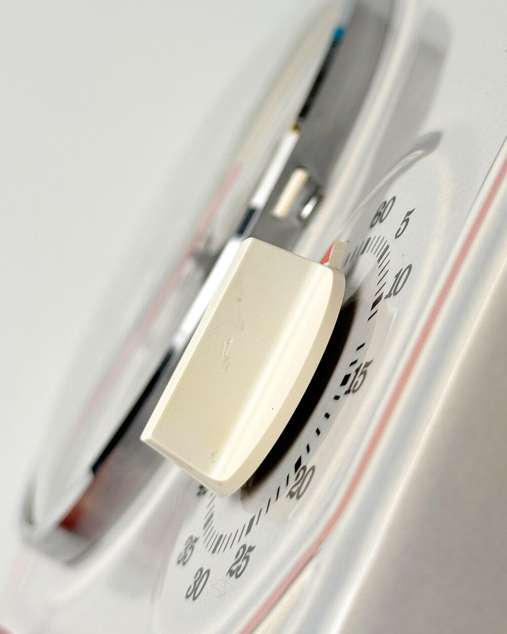 플라스틱 소재의 타이머 다이얼에 보이는 스크래치