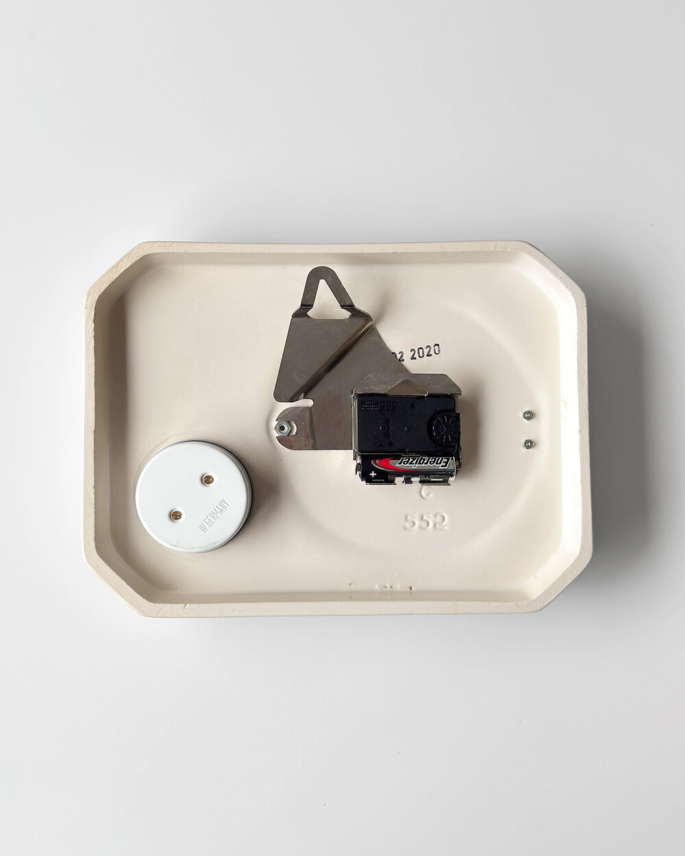 시계 뒷면에는 벽에 걸수 있는 고리와 오리지널 무브먼트가 장착되어 있습니다.