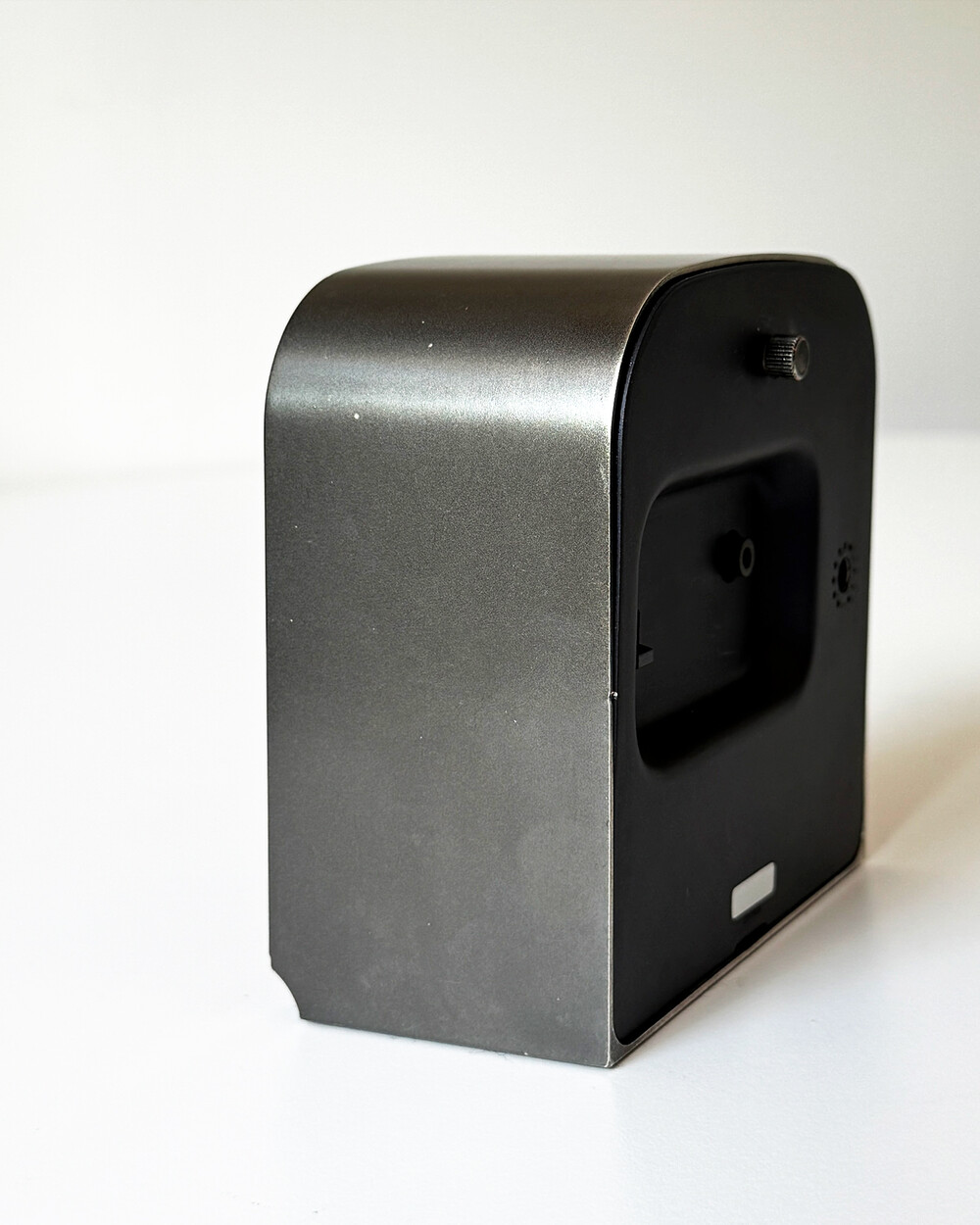 블랙 컬러의 메탈 케이스에 보이는 스크래치와 옅은 얼룩