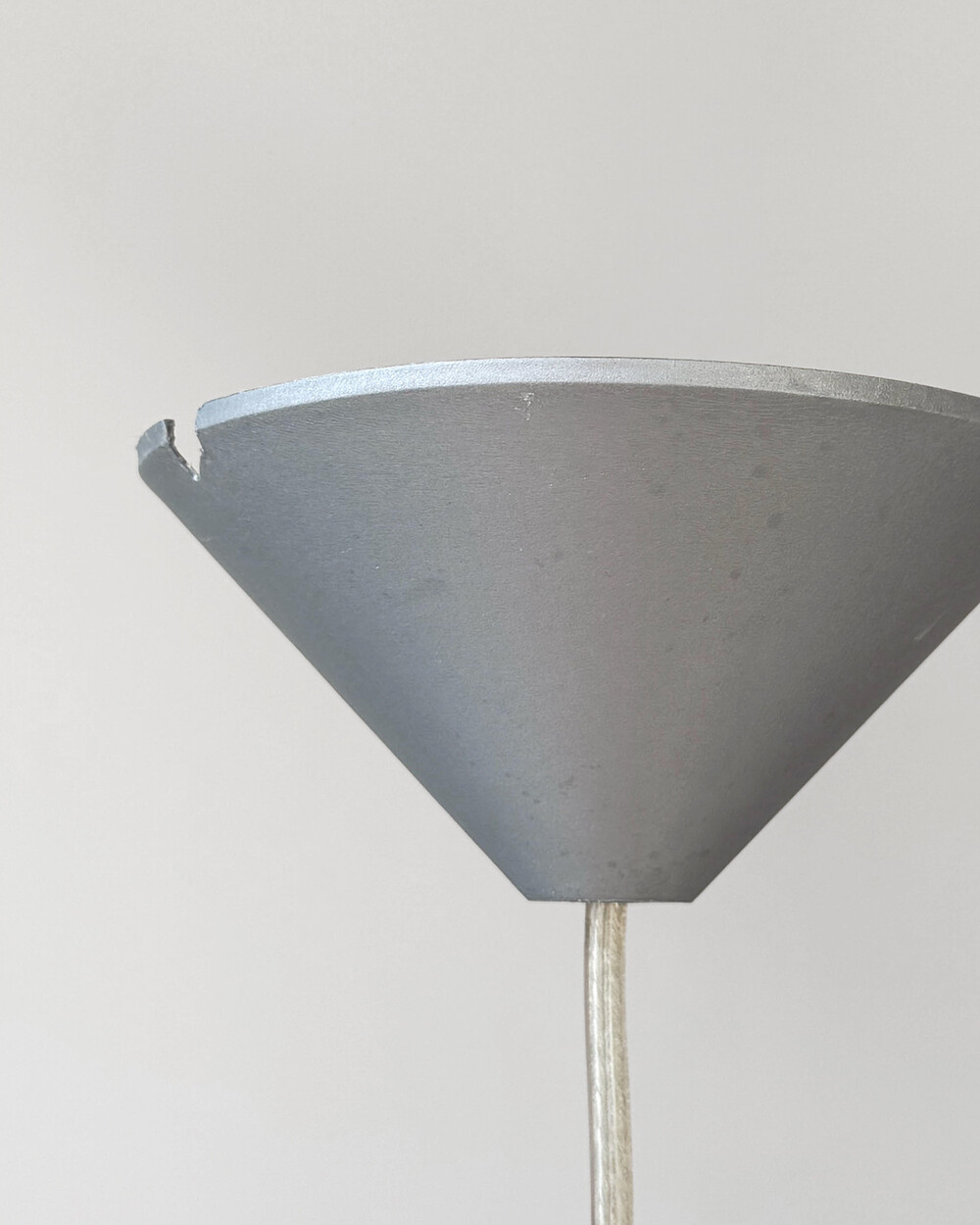 천장 방향의 전선커버 (캐노피)는 원뿔 형태의 플라스틱 소재로 만들어졌습니다. 커버 한켠에 전선 연결을 위해 컷팅된 자국이 남아 있습니다.