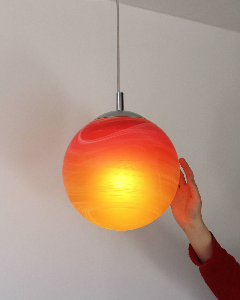 1990s WOFI Orange Planet Glass Pendant Lamp
