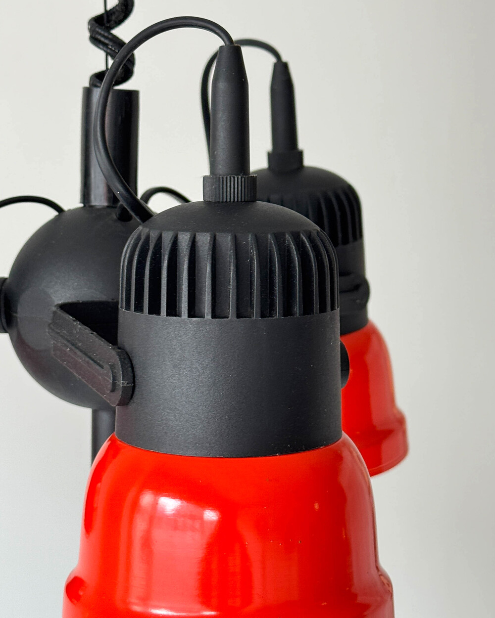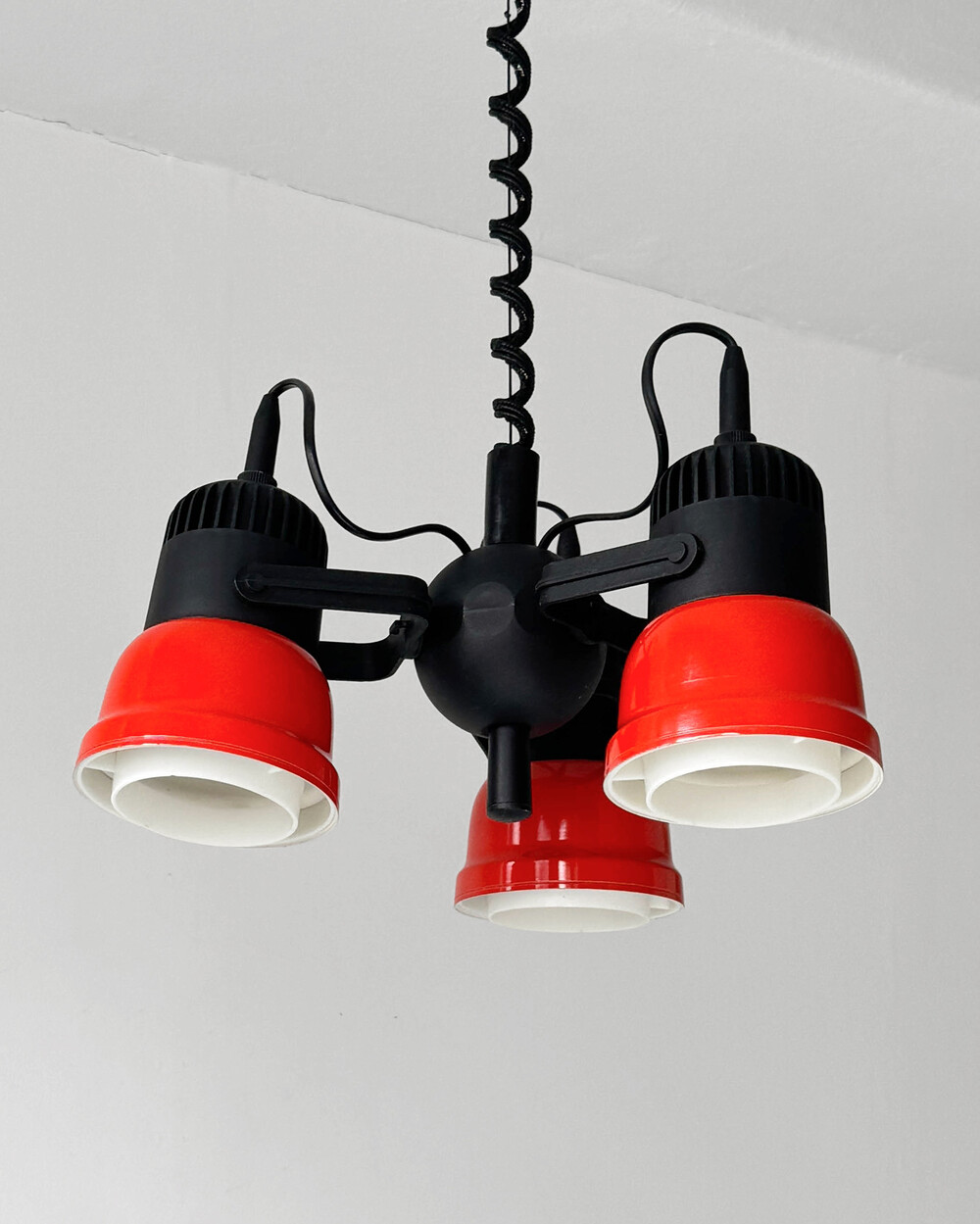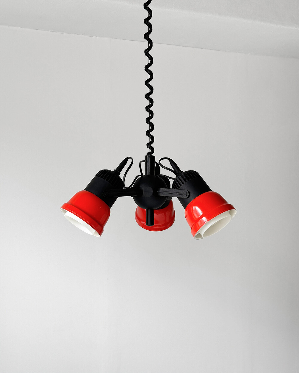 1980s POLAM PILA 3-Light Red Spot Pendant Lamp