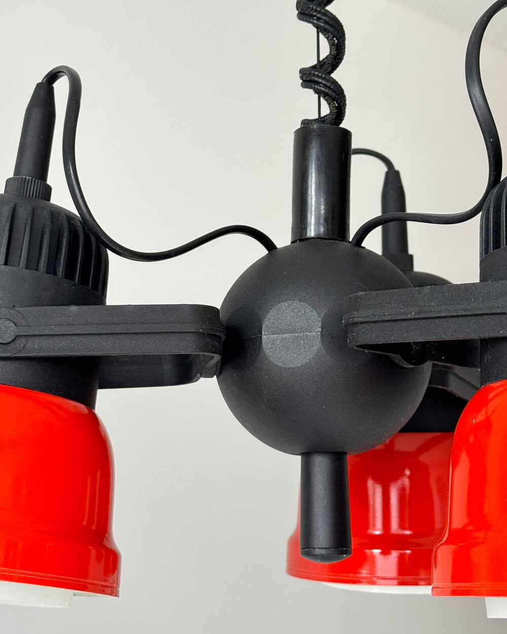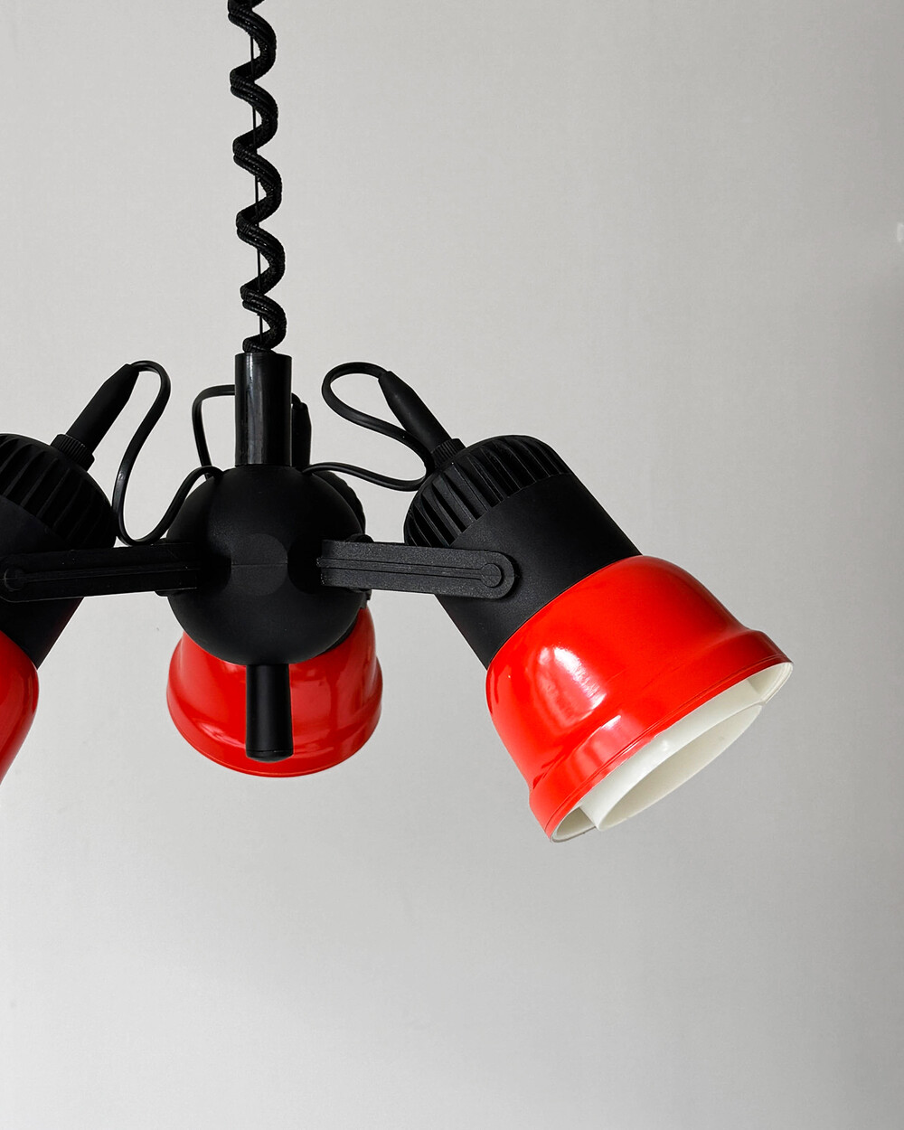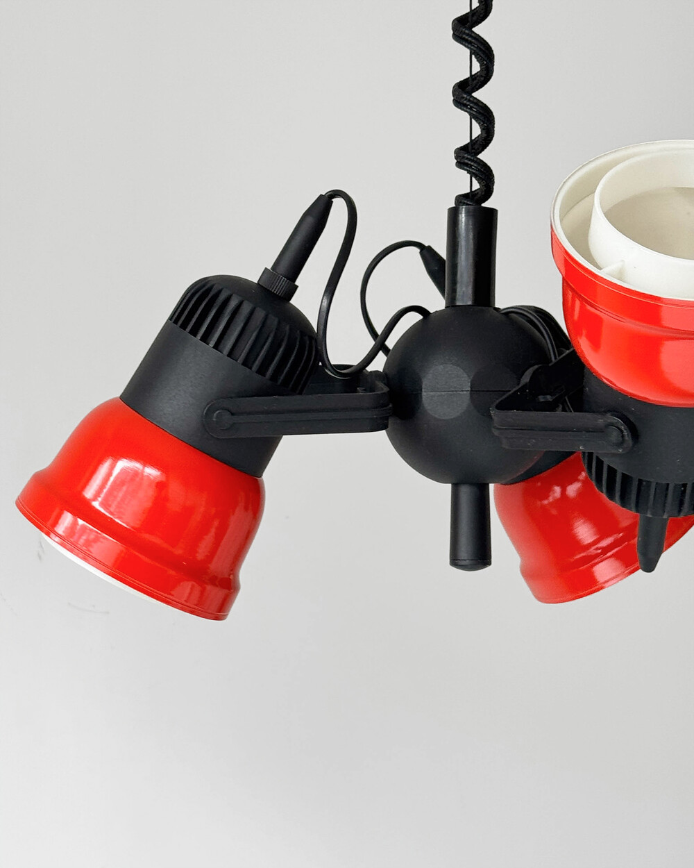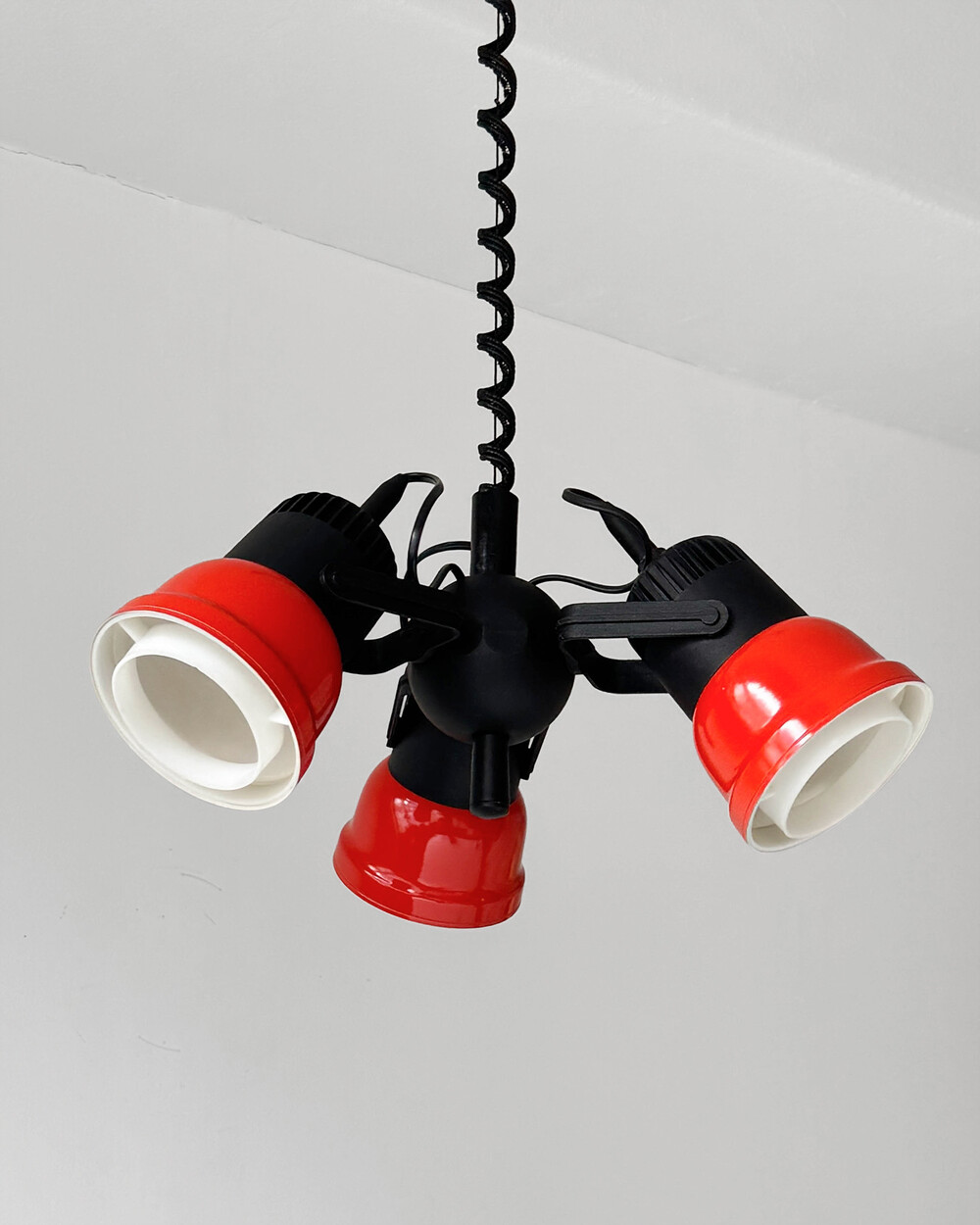 1980s POLAM PILA 3-Light Red Spot Pendant Lamp