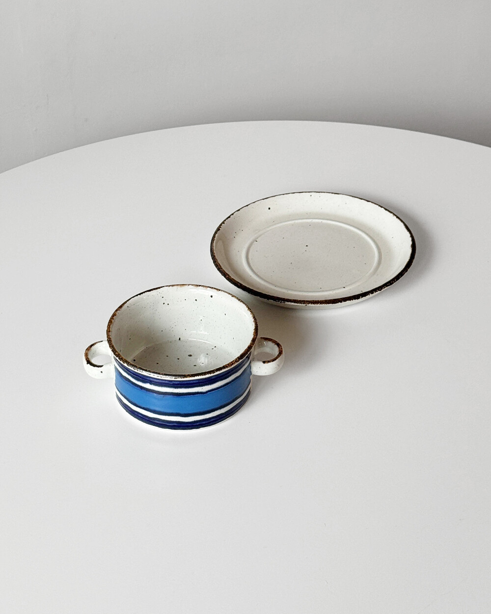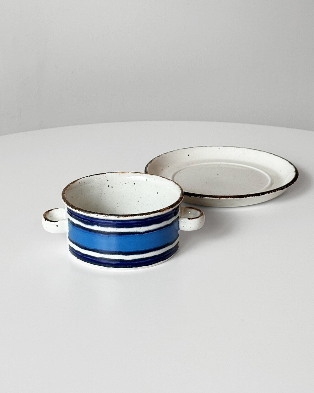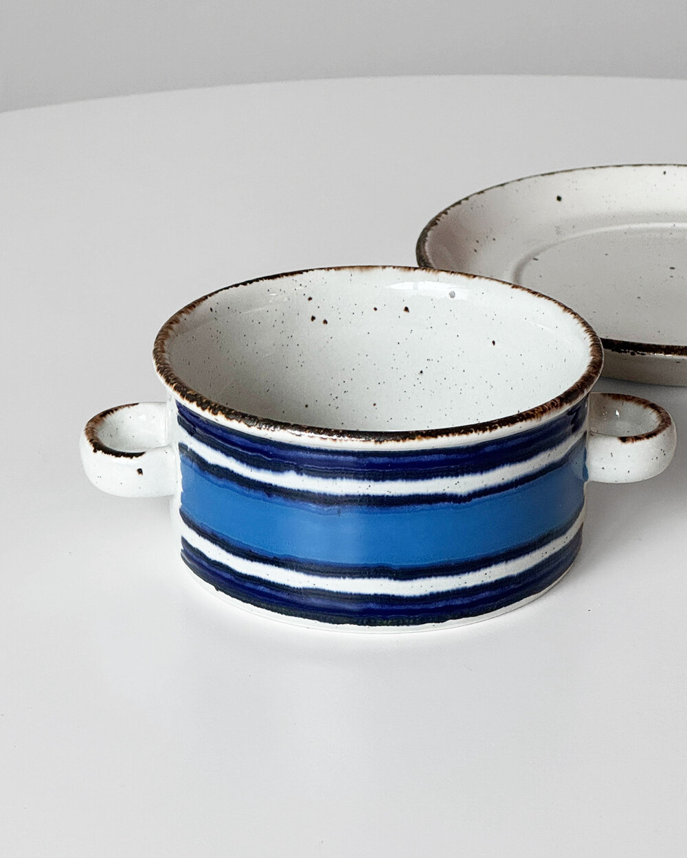 스톤웨어에 장식된 산화철 장식과 스펙클, 핸드페인팅은 피스마다 모양이 조금씩 다릅니다.