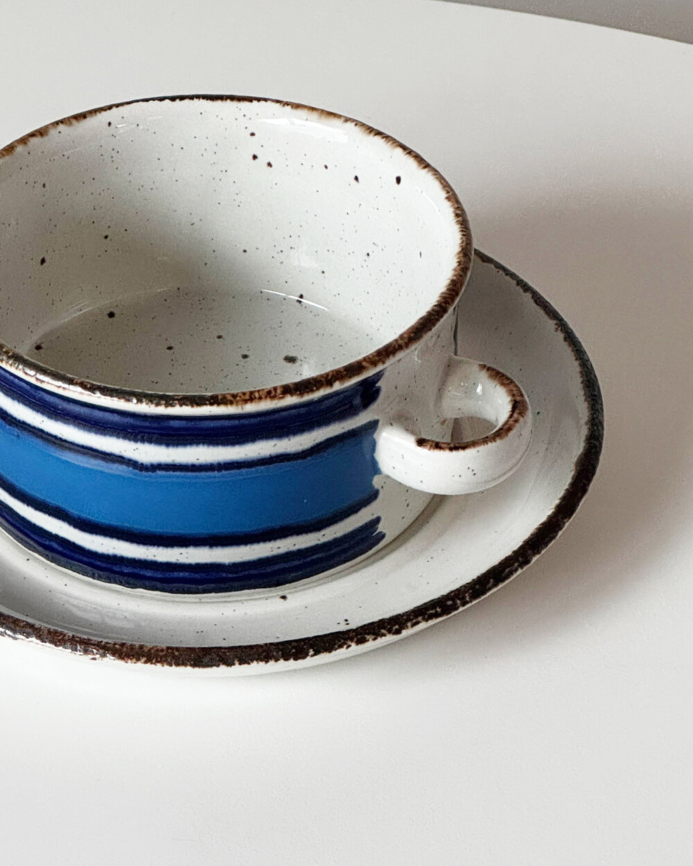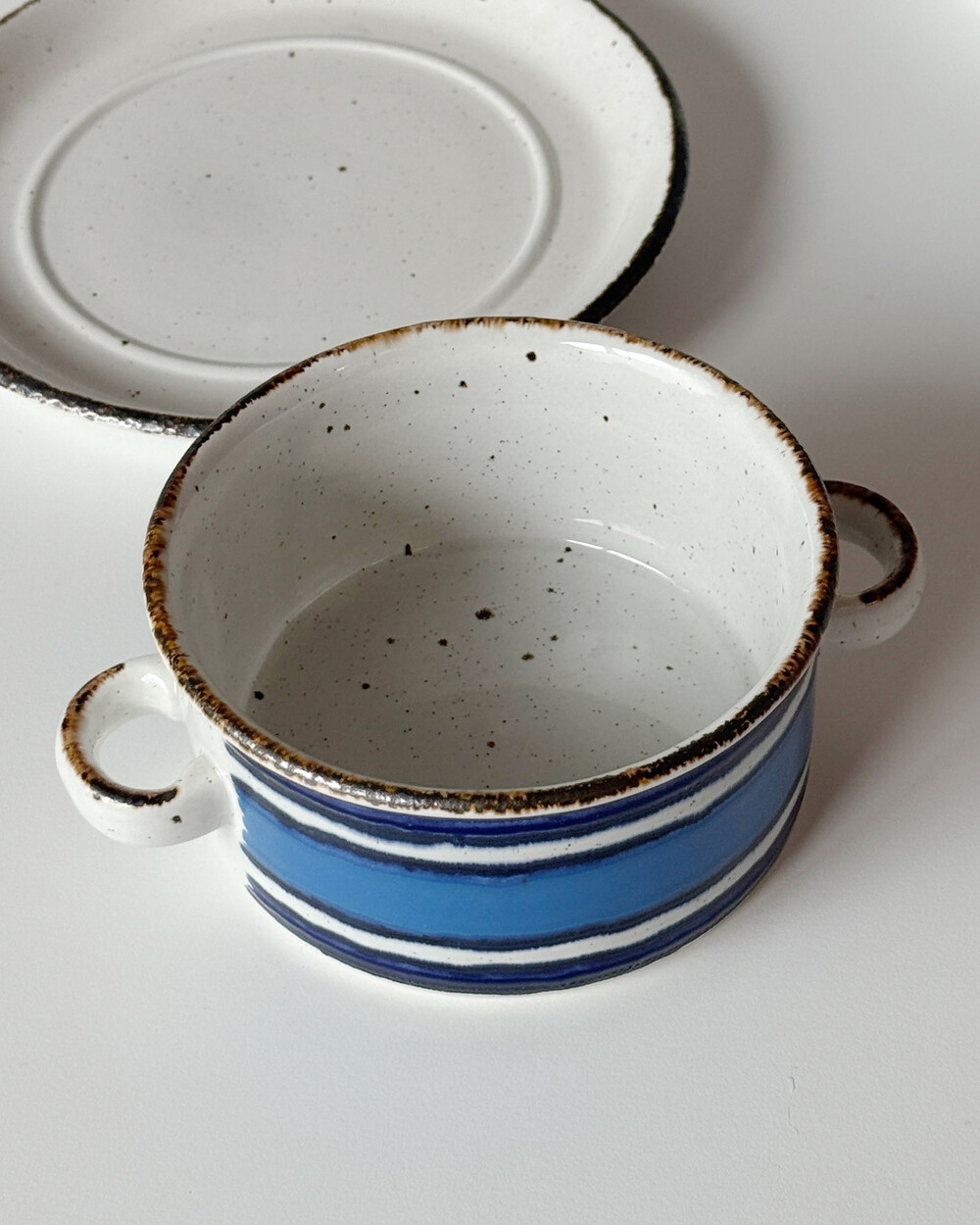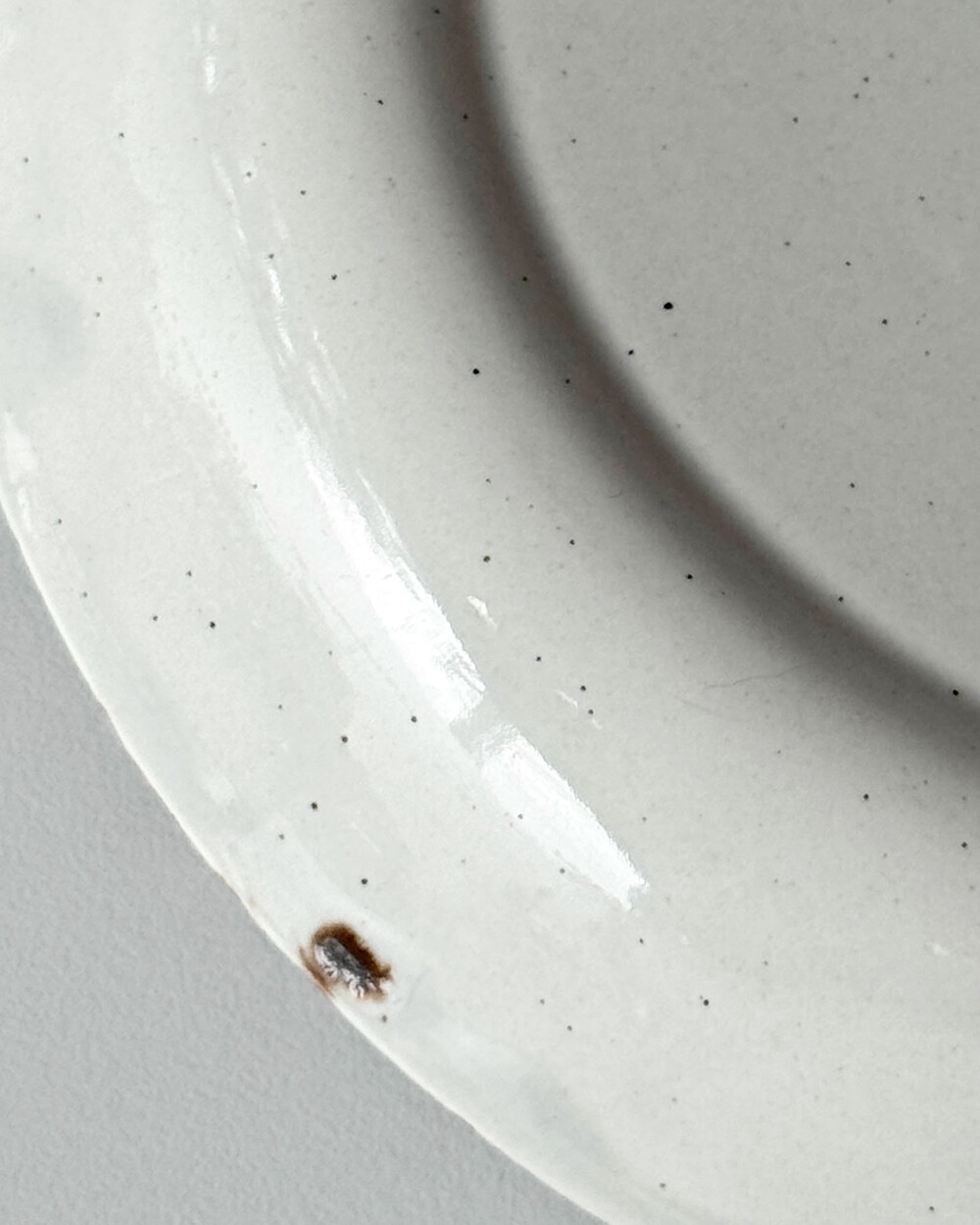 스톤웨어에 장식된 산화철 장식과 스펙클, 핸드페인팅은 피스마다 모양이 조금씩 다릅니다.