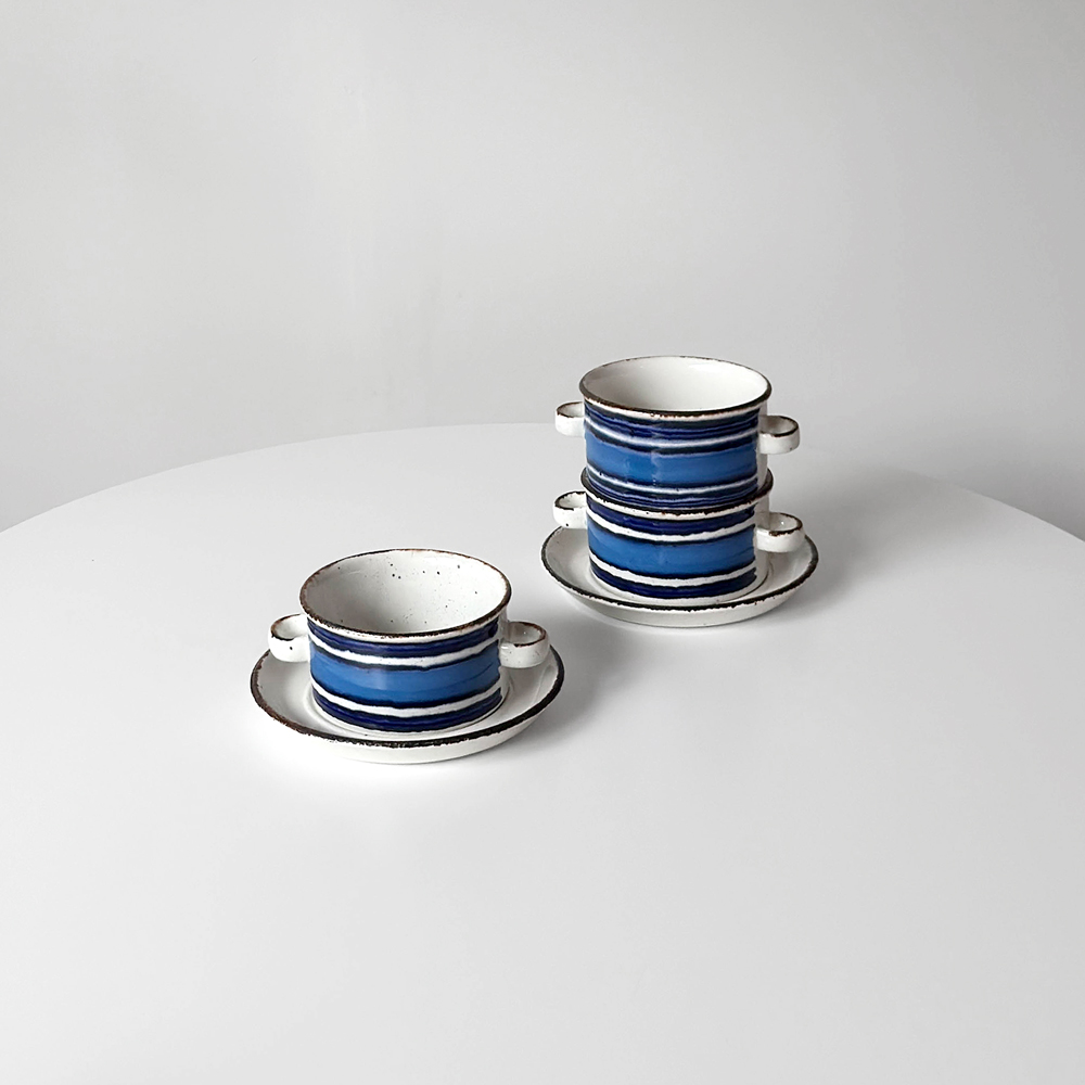 디자이너 Eve Midwinter가 1970년대 천지창조 시리즈로 선보였던 ‘moon’ 스프볼 & 소서 세트입니다.