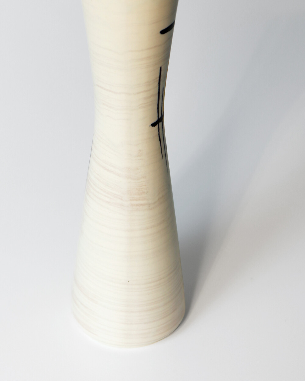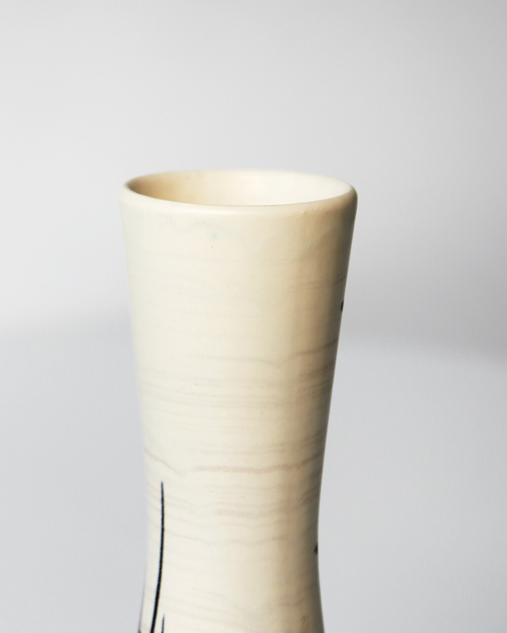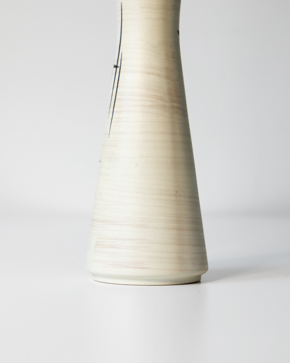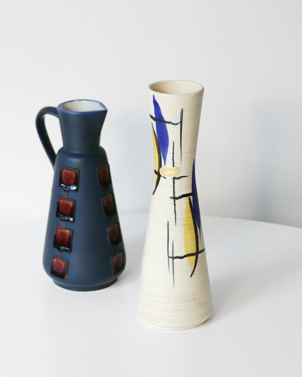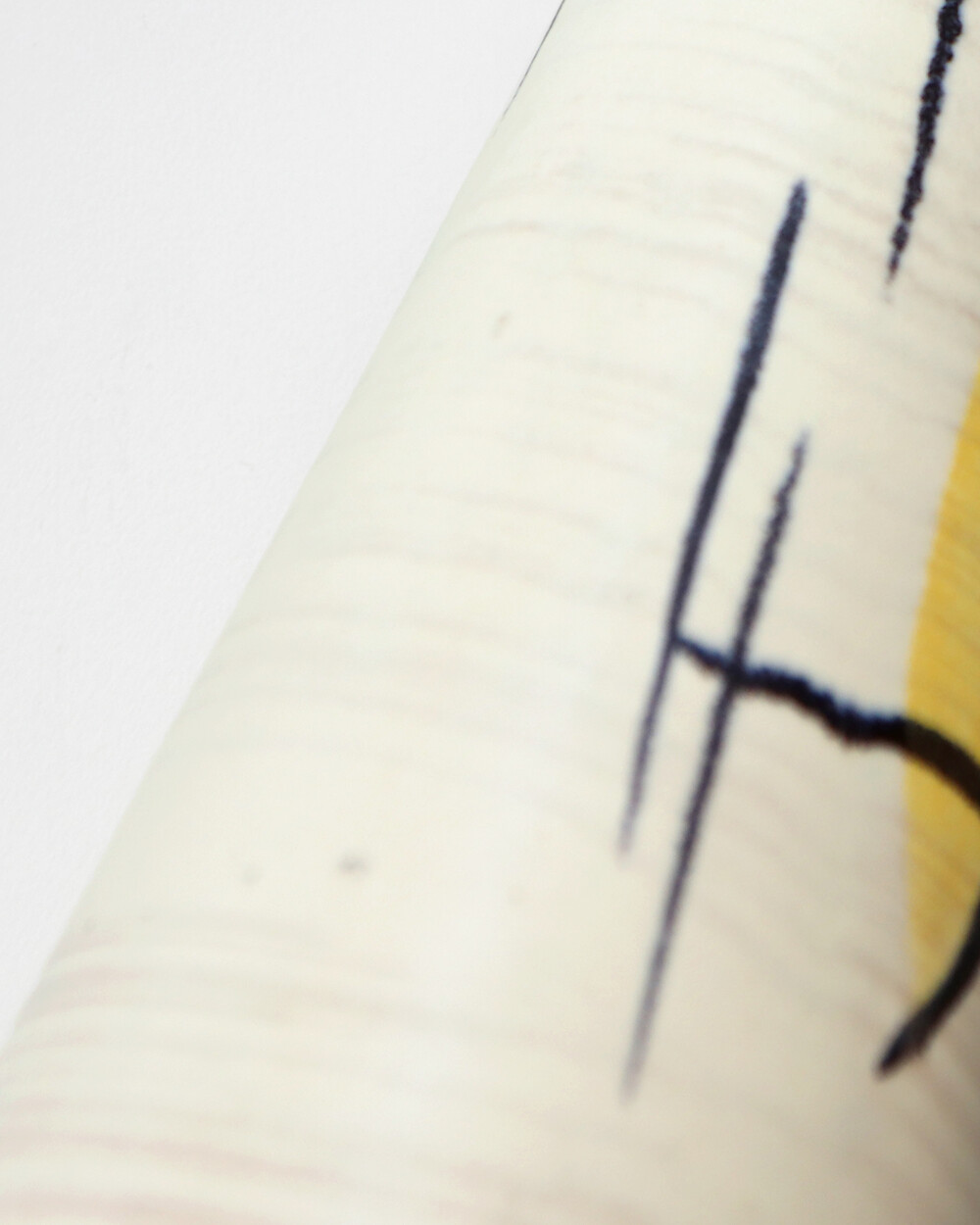 1933년 독일 Westerwald에서 도예가 Eduard Bay가 설립한 BAY Keramik Studio의 세라믹 화병입니다.블루와 옐로우 컬러, 리듬감 있는 라인이 핸드페인팅으로 장식되어 있으며, 줄기 긴 꽃이나 식물을 꽂기 좋은 실루엣을 갖추고 있습니다.