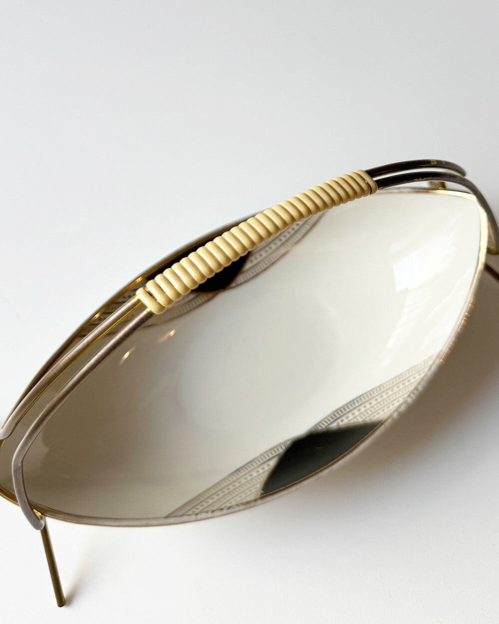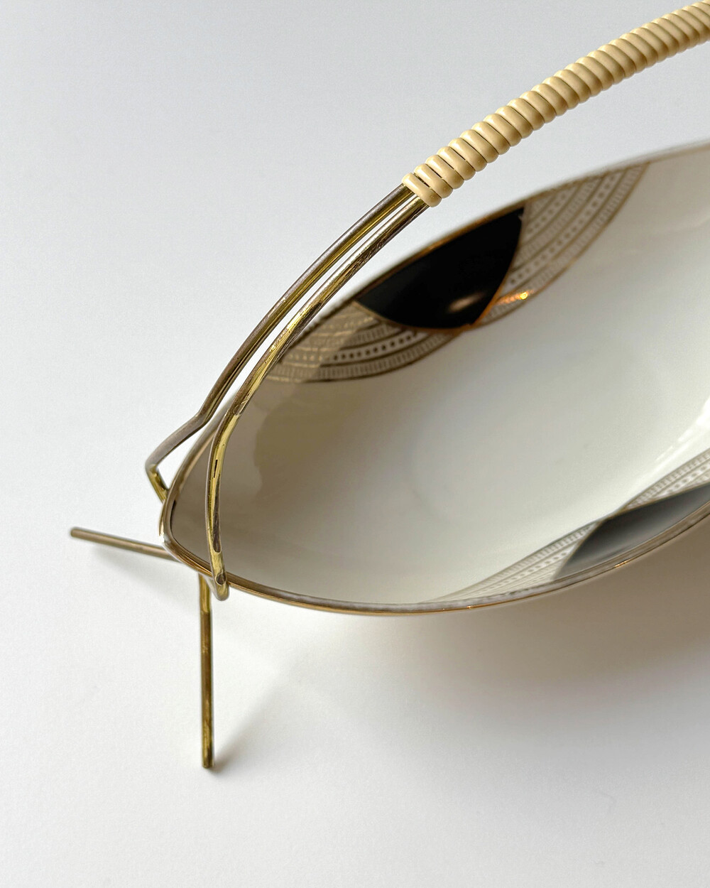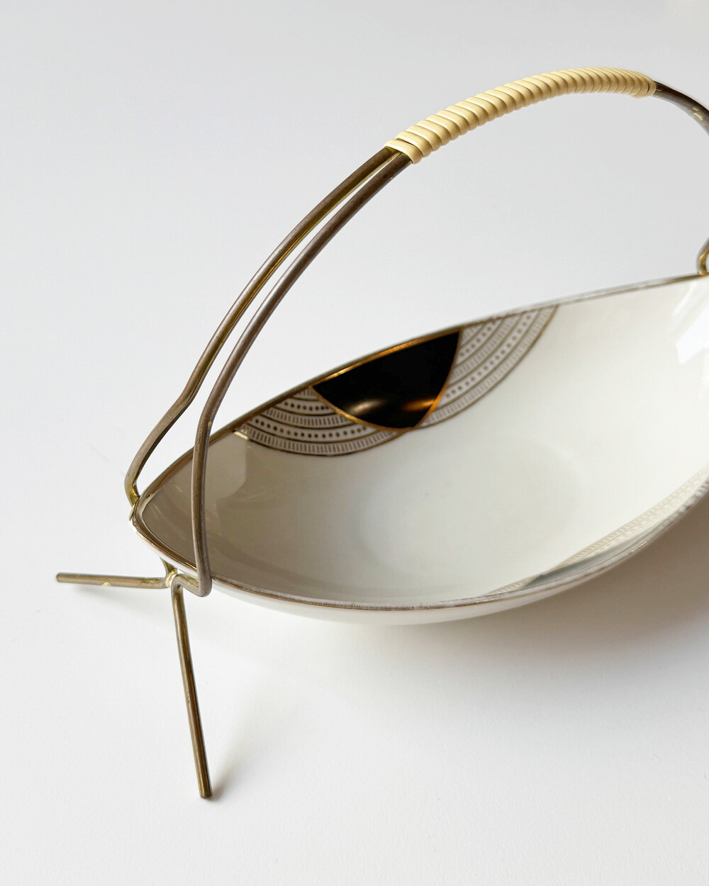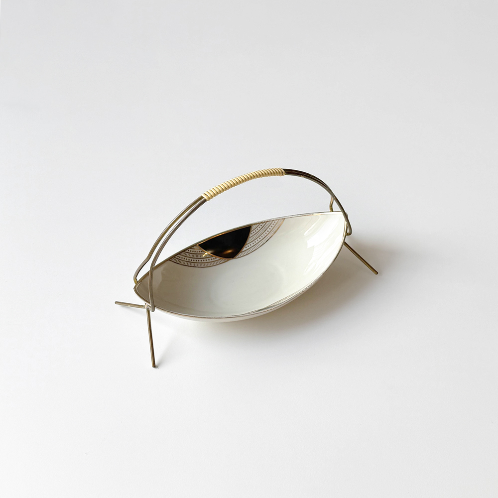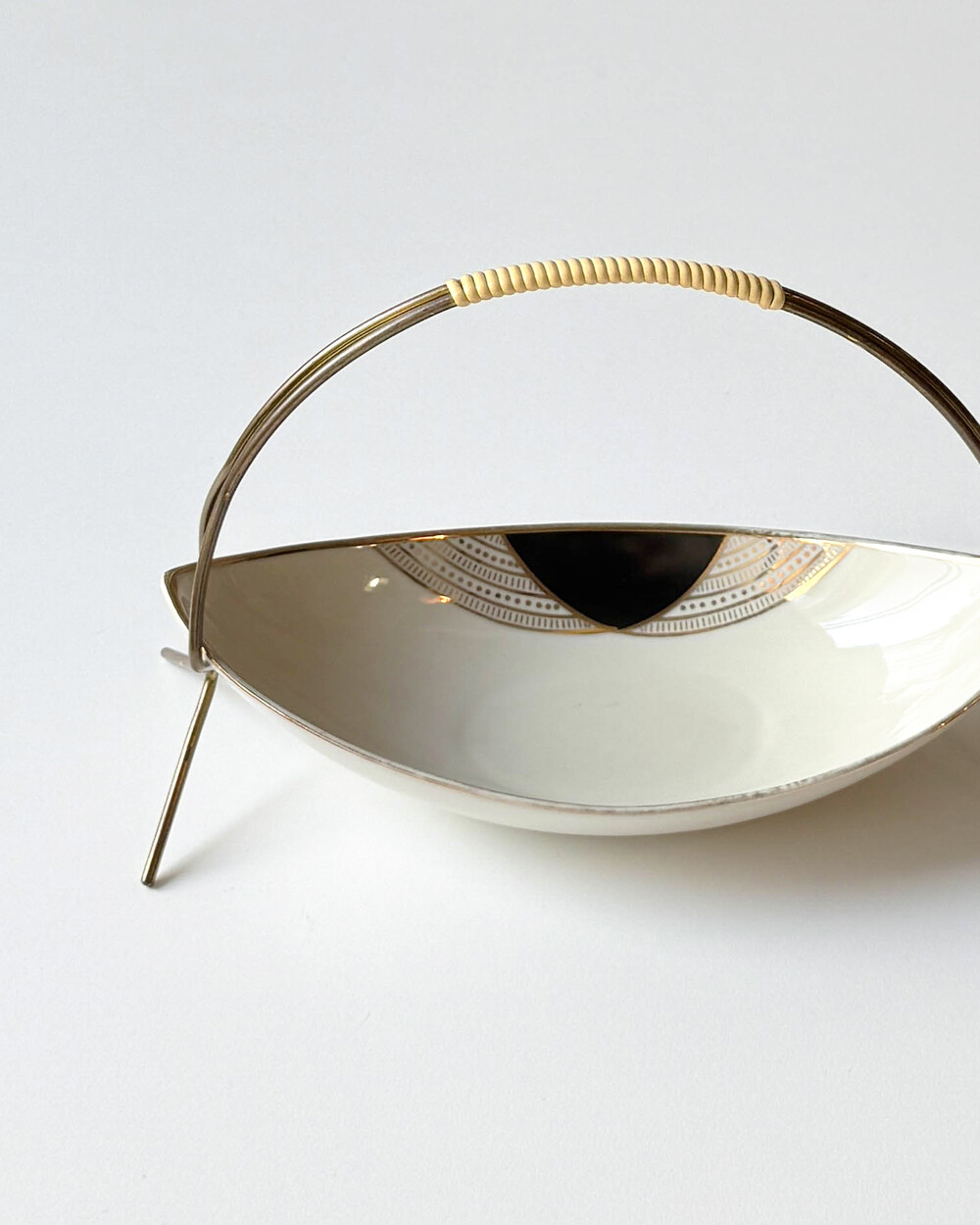 골드 라인 패턴과 블랙 컬러가 어우러진 플래이트와 위빙장식의 메탈 핸들이 조화를 이룬 포셀린 장식용 바스켓입니다. 1903년 Marktleuthen에서 시작된 WINTERLING MARKTLEUTHEN는 전통과 세련미를 겸비한 디자인으로 20세기 내내 사랑받았으며, 바이에른 생산을 뜻하는 ‘Bavaria’ 마크가 새겨져 있습니다.