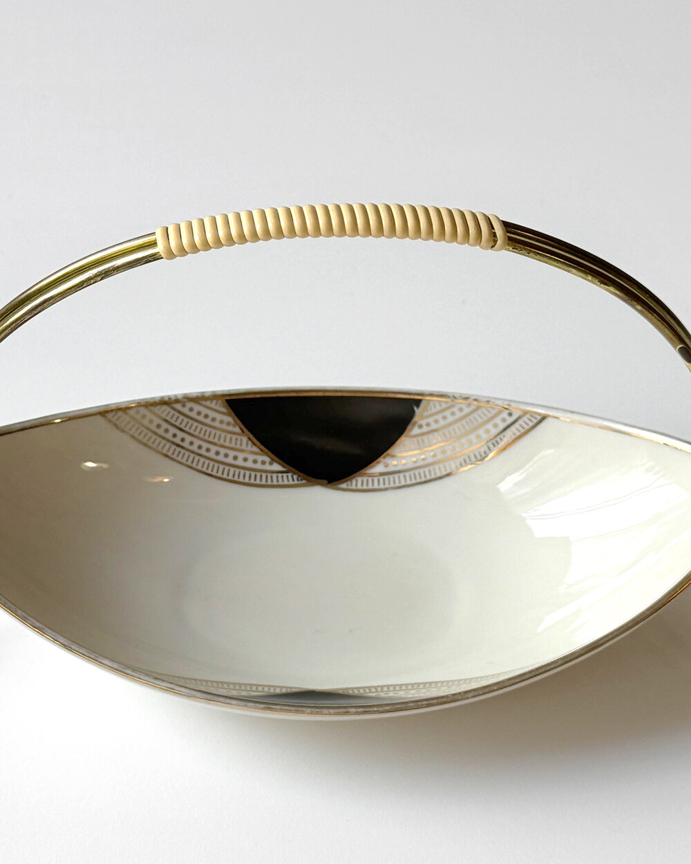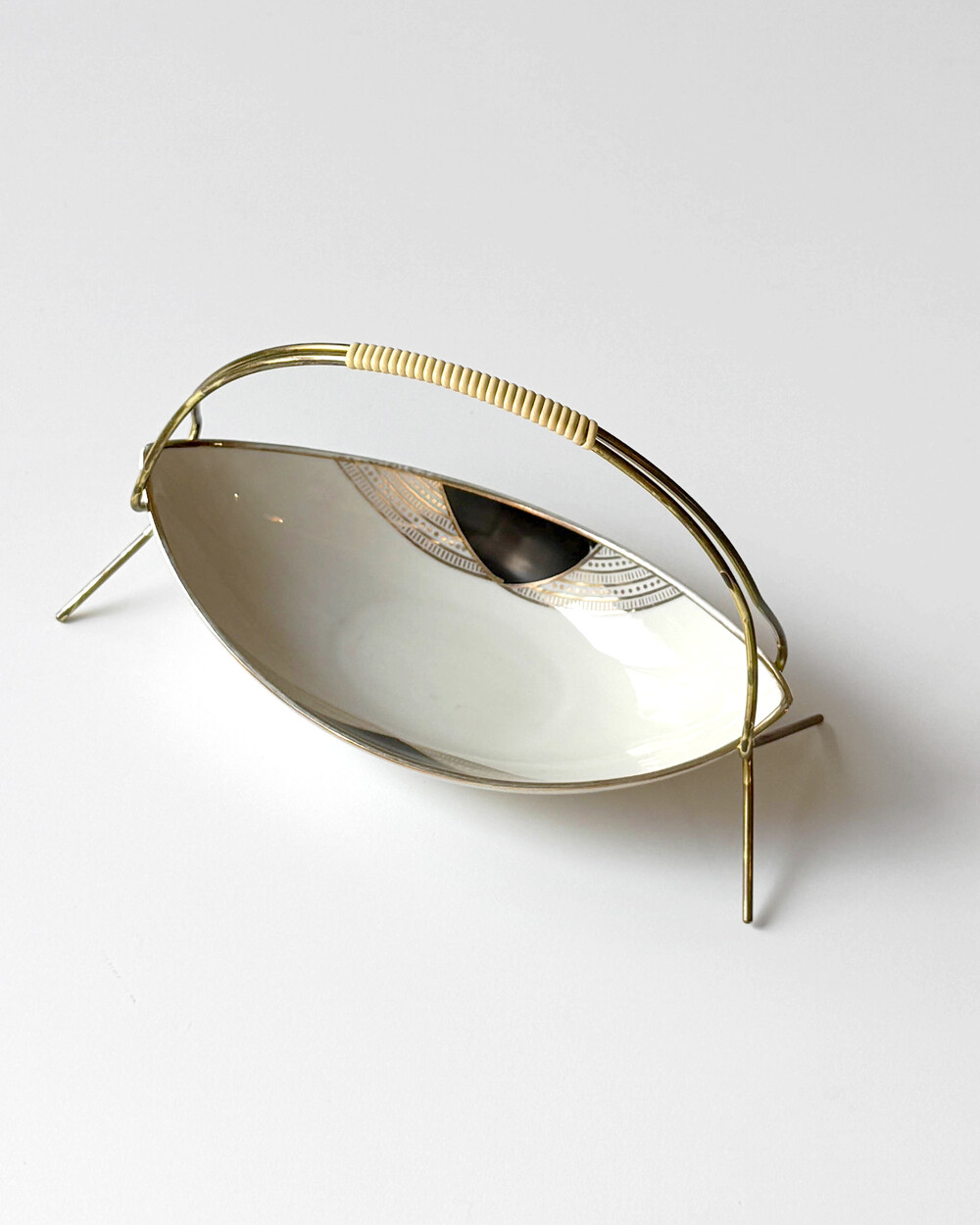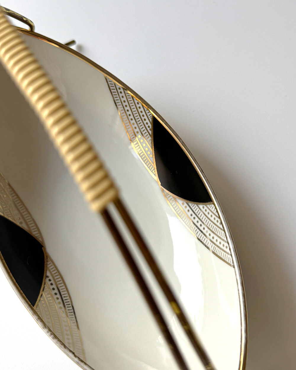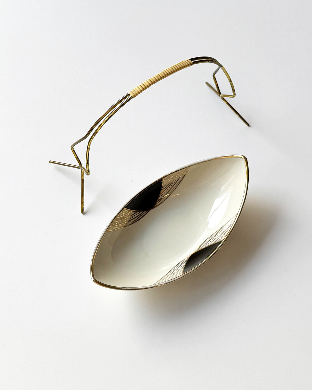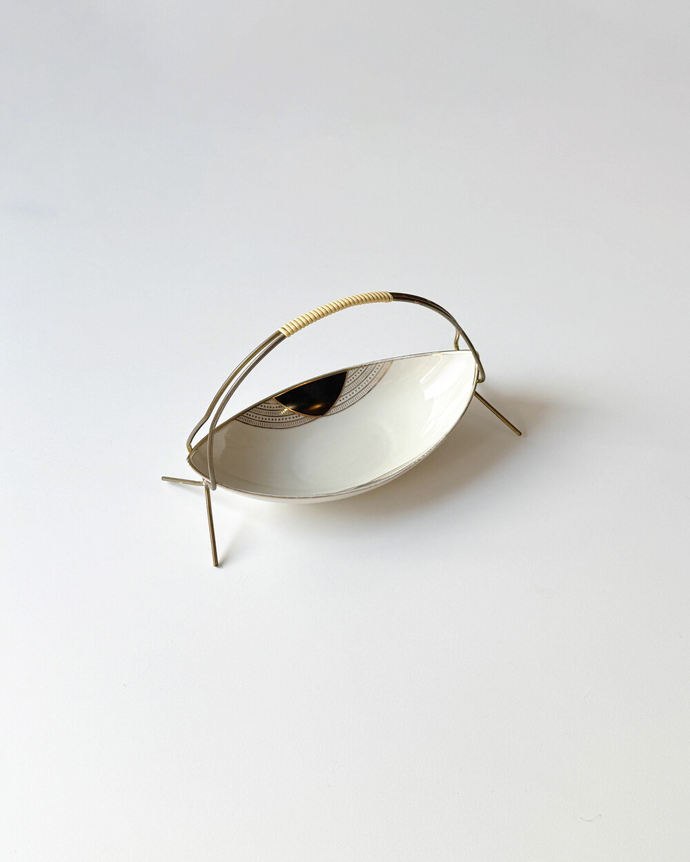 골드 라인 패턴과 블랙 컬러가 어우러진 플래이트와 위빙장식의 메탈 핸들이 조화를 이룬 포셀린 장식용 바스켓입니다. 1903년 Marktleuthen에서 시작된 WINTERLING MARKTLEUTHEN는 전통과 세련미를 겸비한 디자인으로 20세기 내내 사랑받았으며, 바이에른 생산을 뜻하는 ‘Bavaria’ 마크가 새겨져 있습니다.