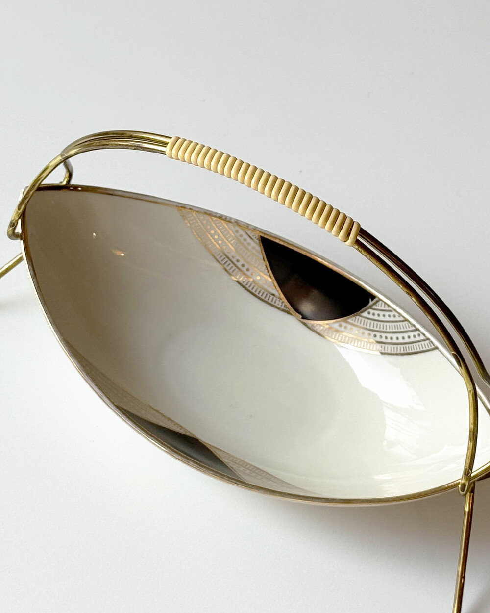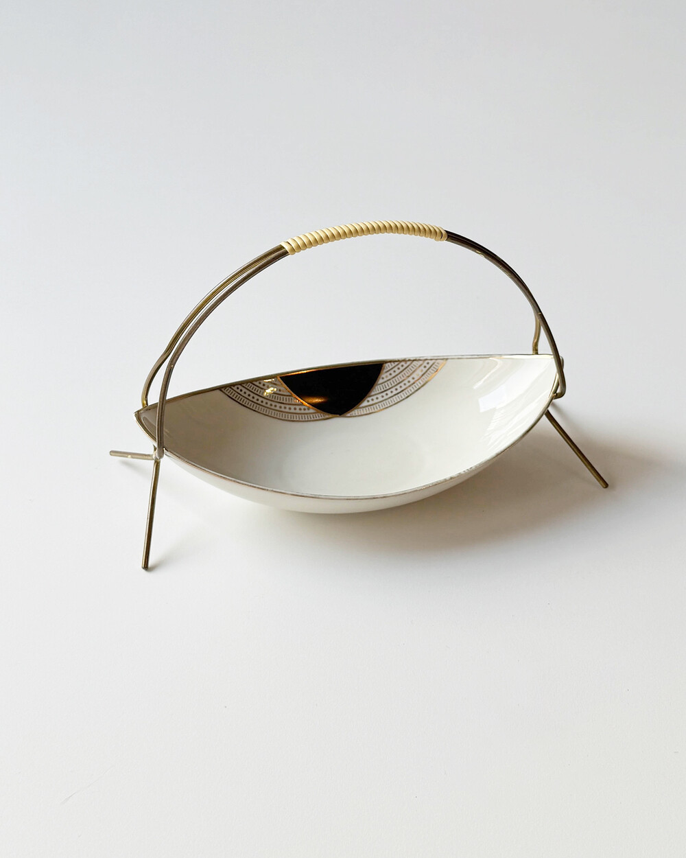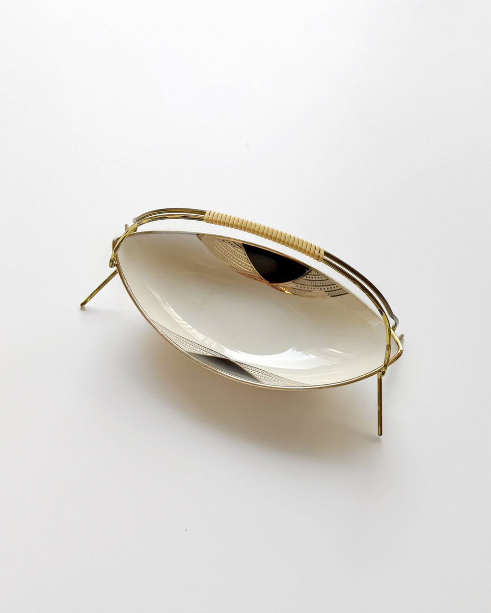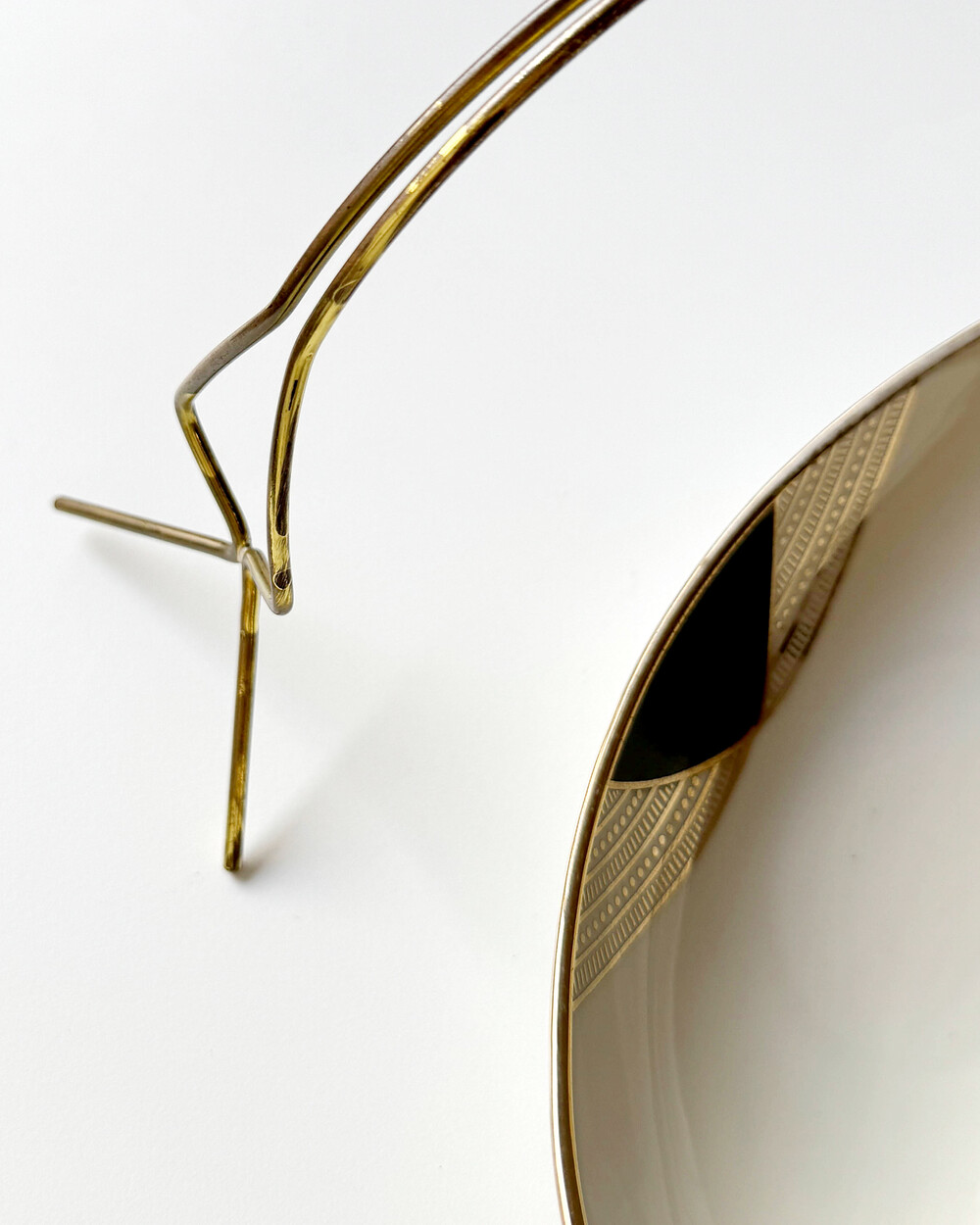 골드 라인 패턴과 블랙 컬러가 어우러진 플래이트와 위빙장식의 메탈 핸들이 조화를 이룬 포셀린 장식용 바스켓입니다. 1903년 Marktleuthen에서 시작된 WINTERLING MARKTLEUTHEN는 전통과 세련미를 겸비한 디자인으로 20세기 내내 사랑받았으며, 바이에른 생산을 뜻하는 ‘Bavaria’ 마크가 새겨져 있습니다.