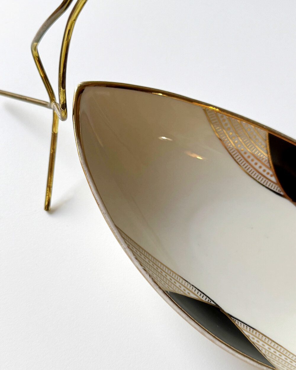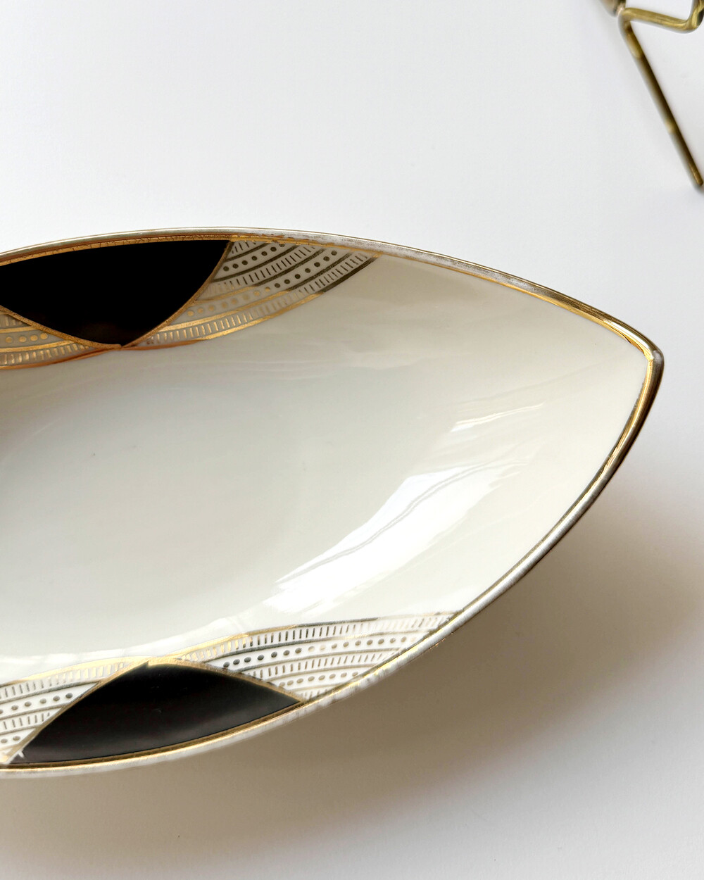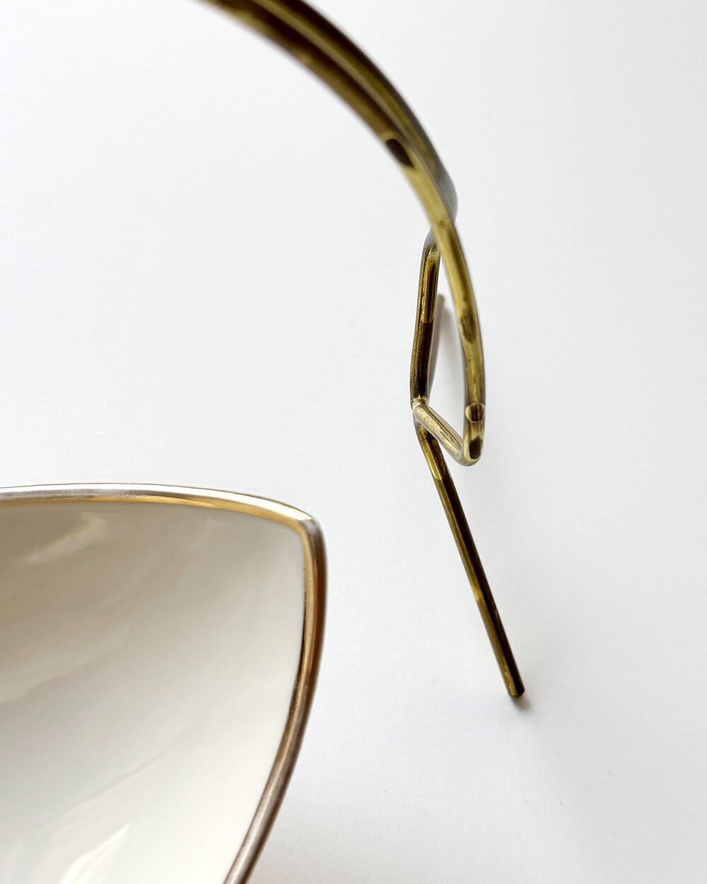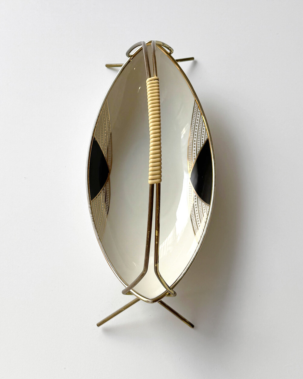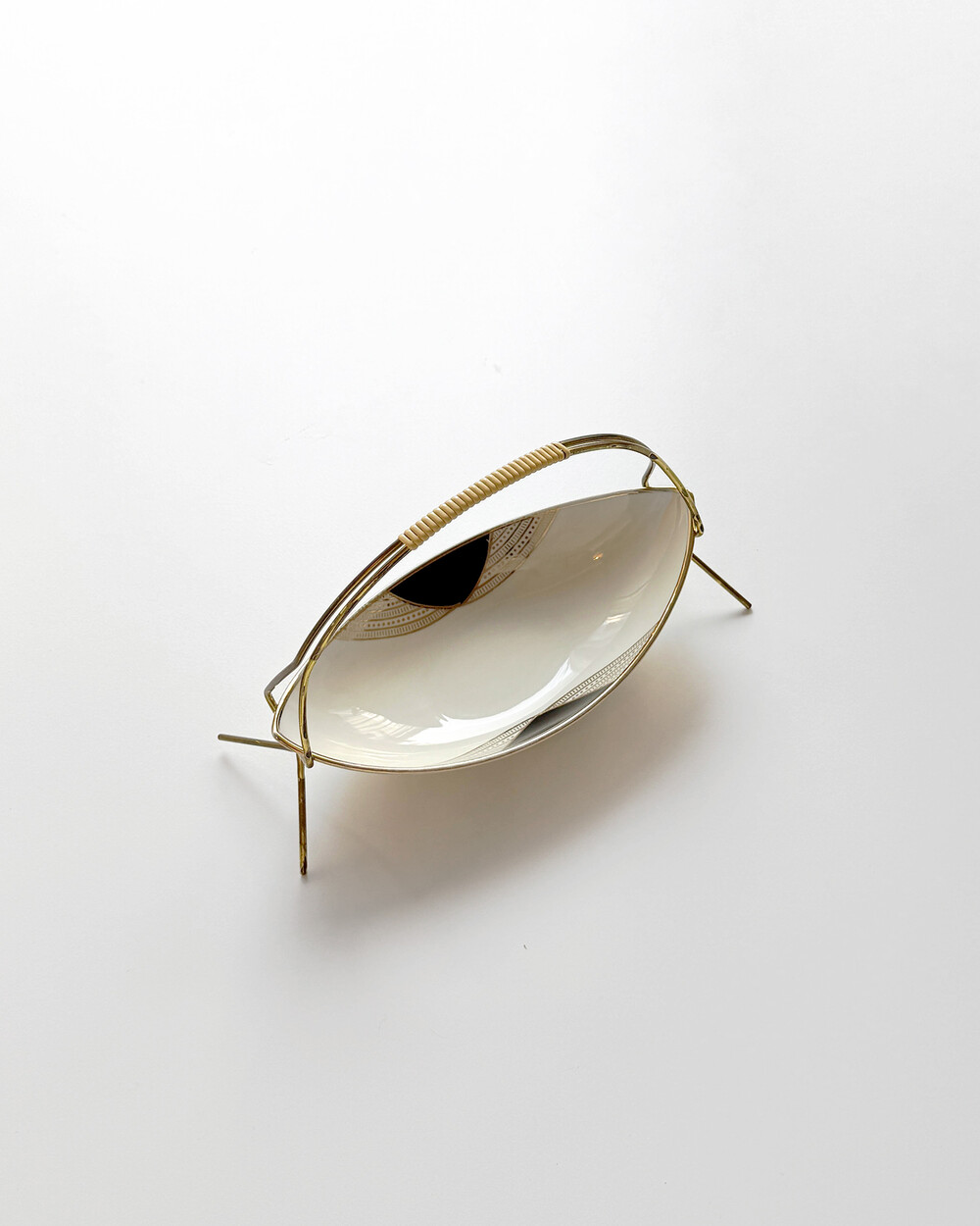 골드 라인 패턴과 블랙 컬러가 어우러진 플래이트와 위빙장식의 메탈 핸들이 조화를 이룬 포셀린 장식용 바스켓입니다. 1903년 Marktleuthen에서 시작된 WINTERLING MARKTLEUTHEN는 전통과 세련미를 겸비한 디자인으로 20세기 내내 사랑받았으며, 바이에른 생산을 뜻하는 ‘Bavaria’ 마크가 새겨져 있습니다.