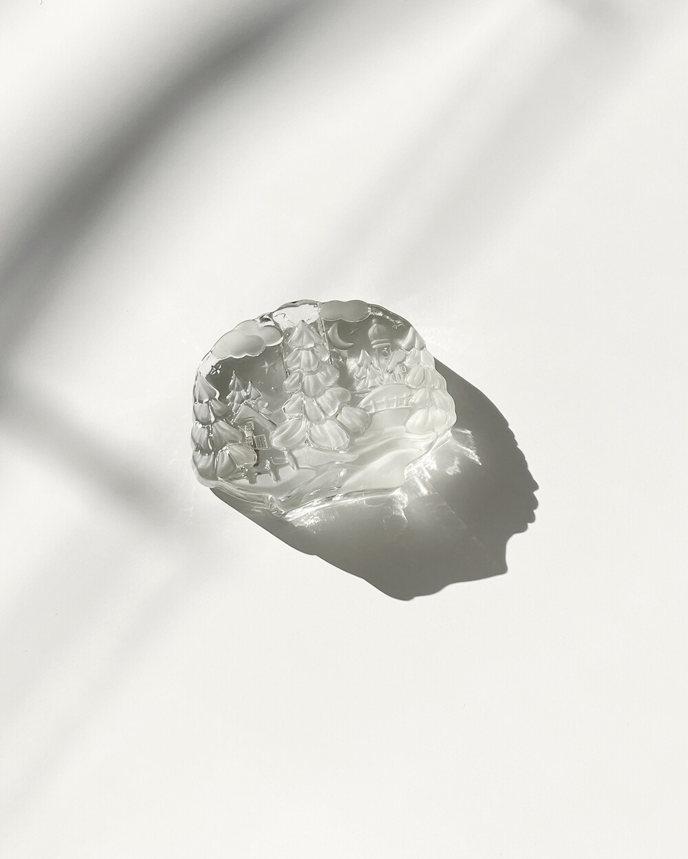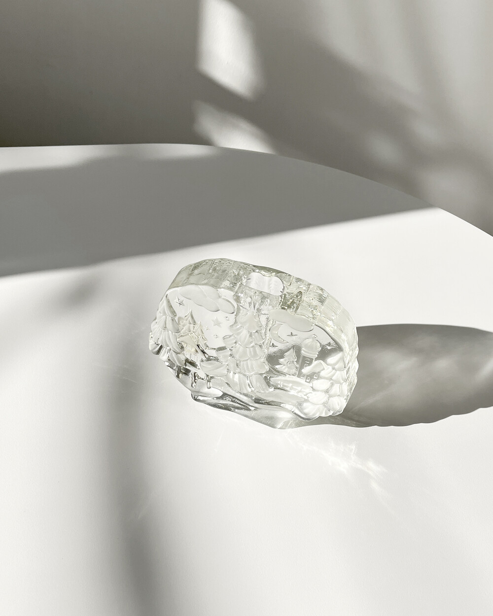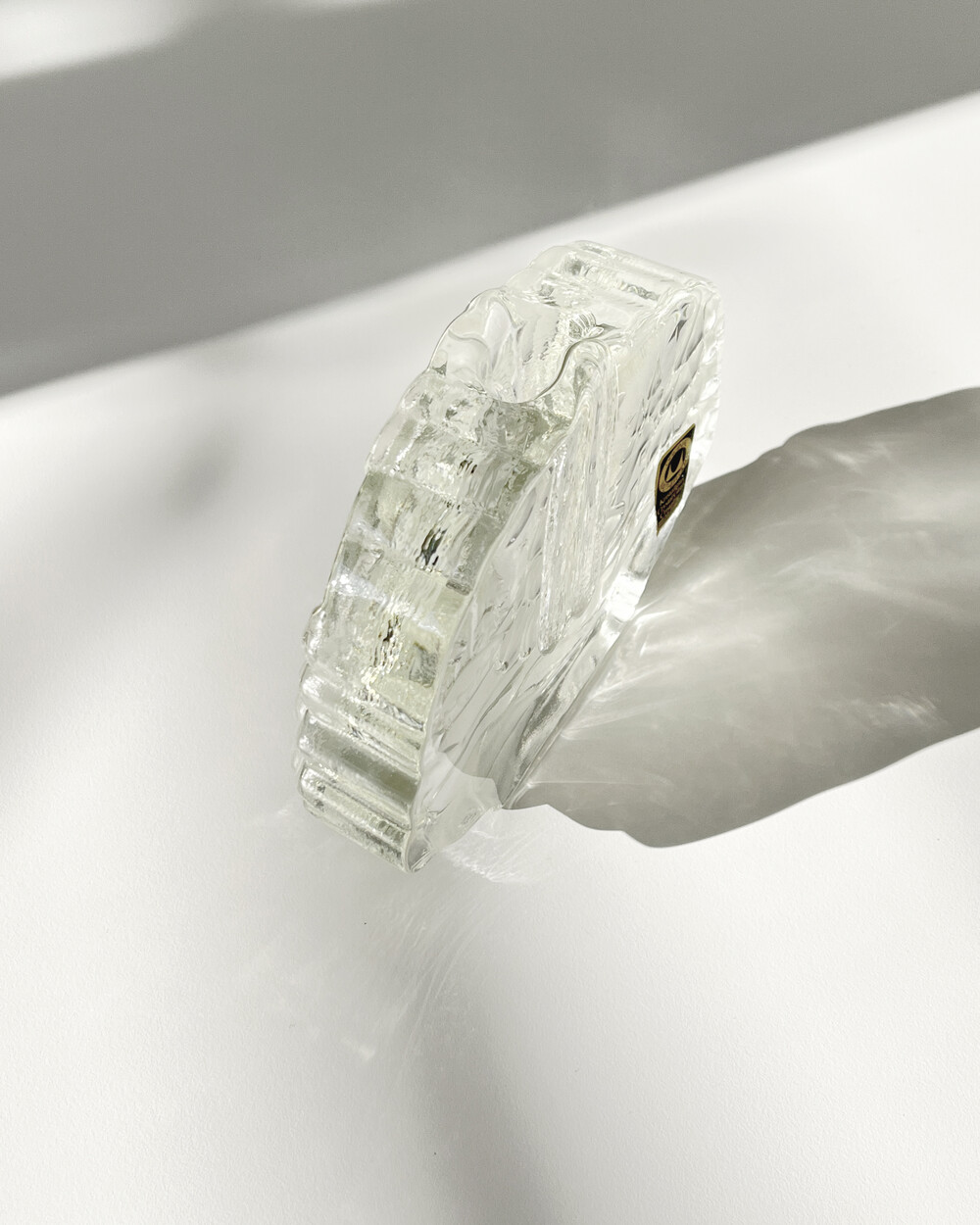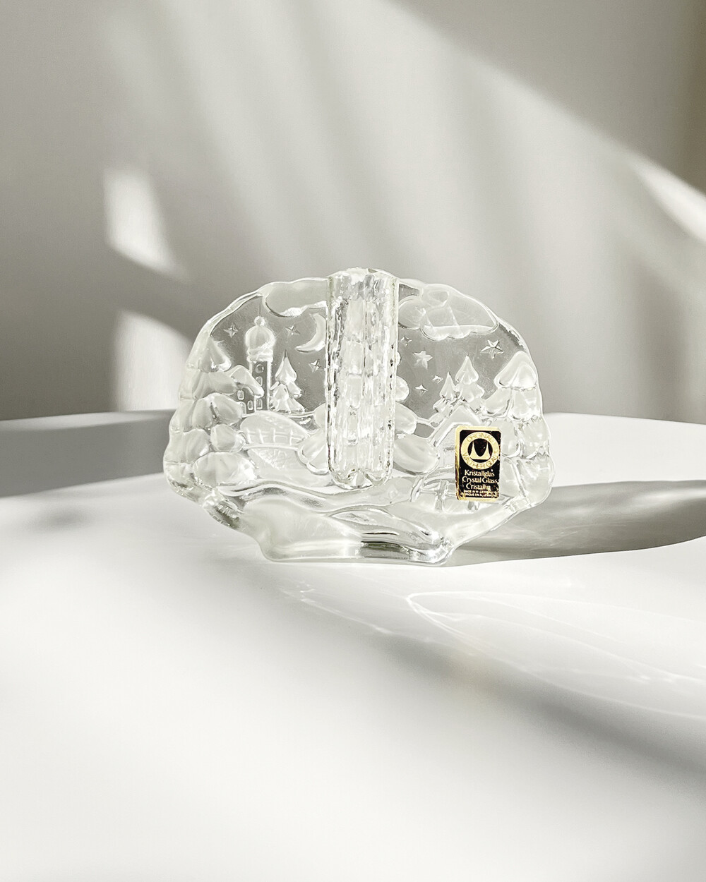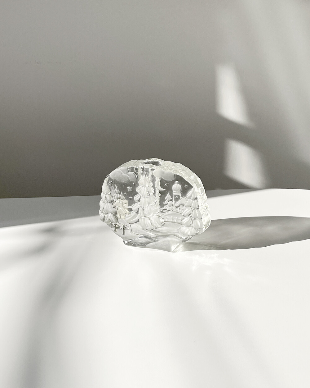 1865년 독일에서 설립된 Walther Glass의 크리스탈 블록 글라스 화병입니다. 맑은 투명도를 가진 크리스탈 글라스에 눈이 내린 크리스마스 풍경이 담겨 있습니다.