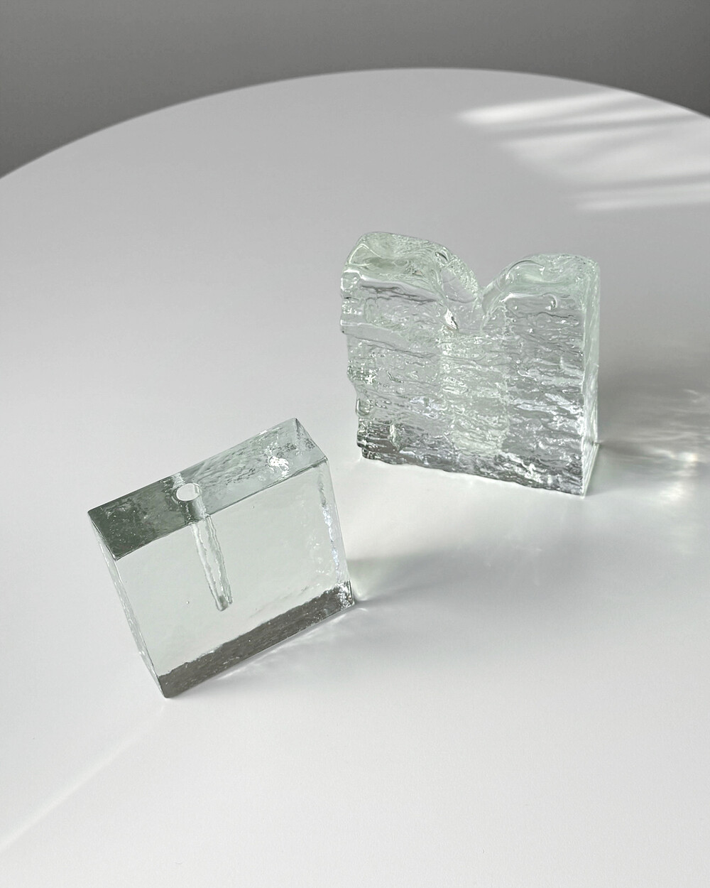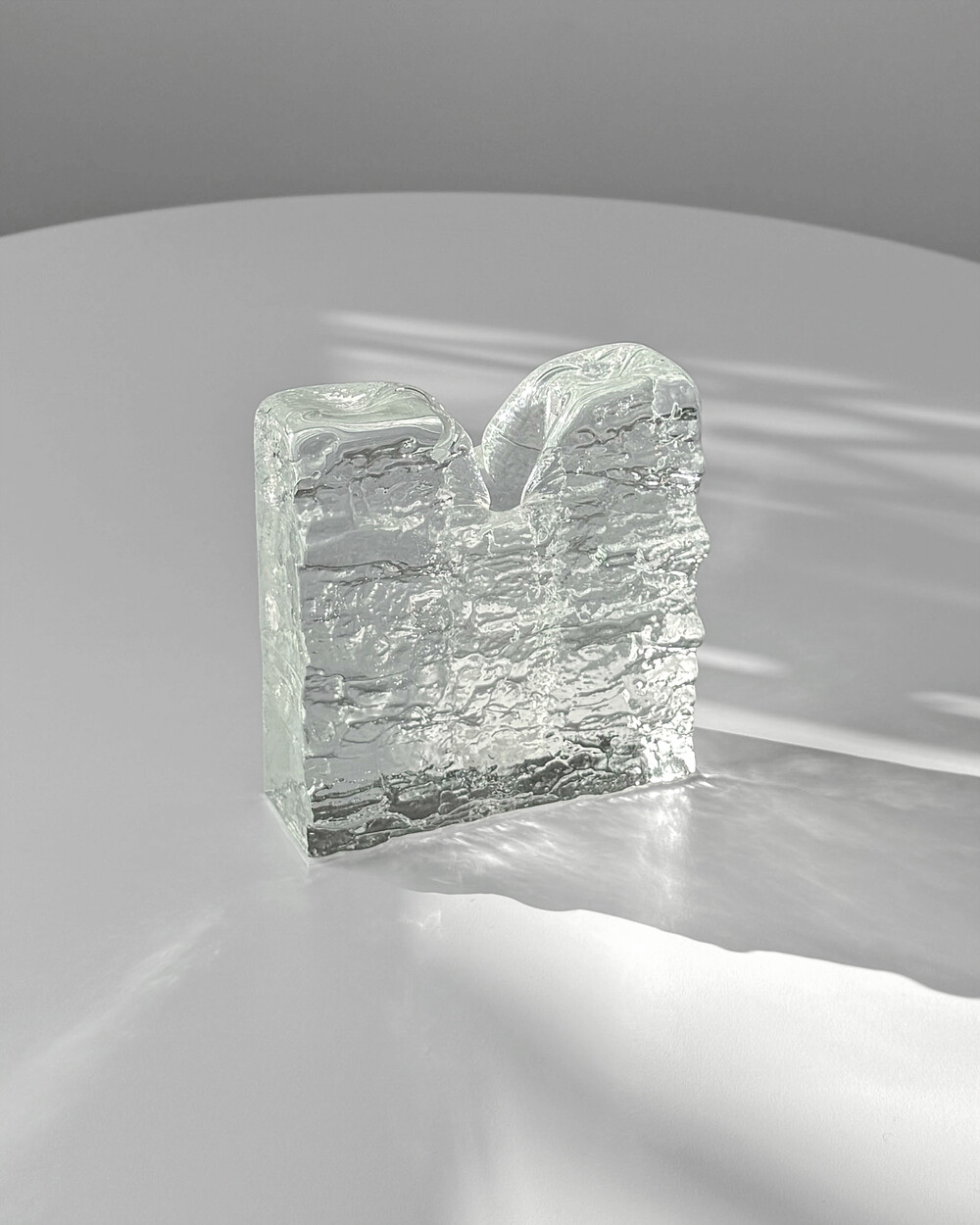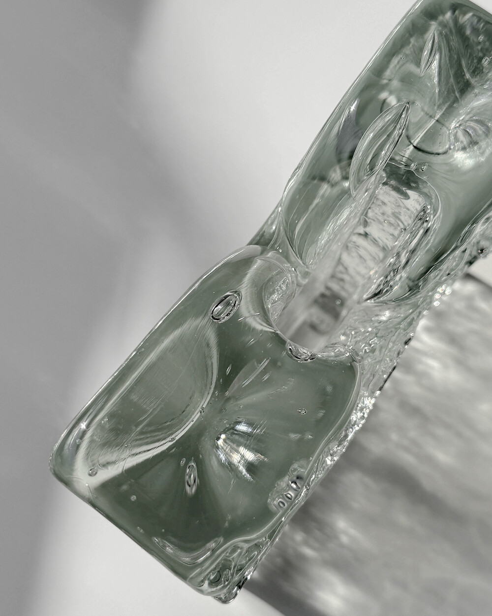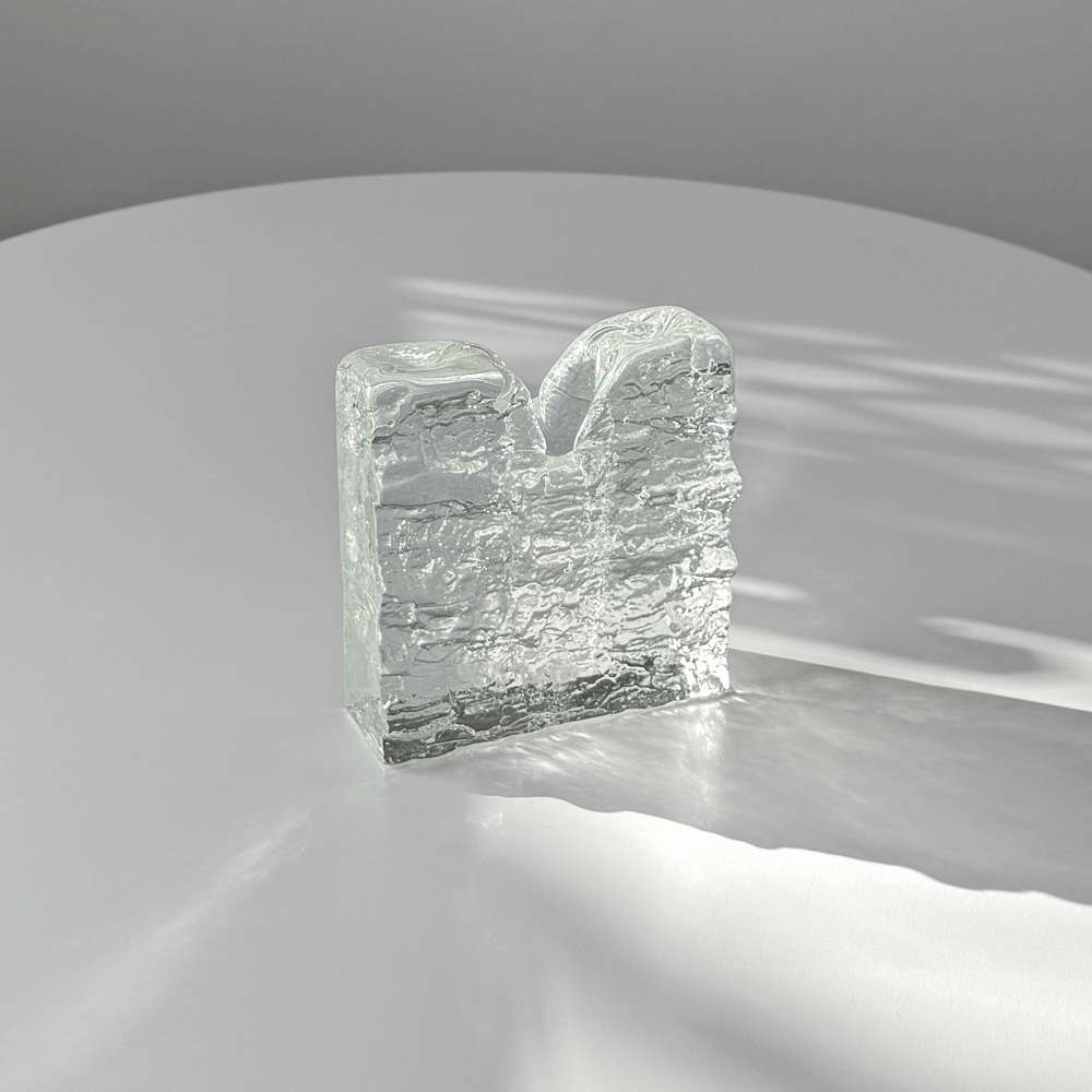 수작업으로 만들어진 글라스 오브제입니다. 기포, 유리 주름 등 제작과정에서 생기는 흔적이 일부 있으며, 가까이에서 보이는 옅은 세월감이 있습니다.