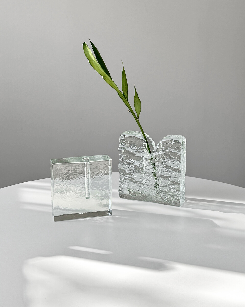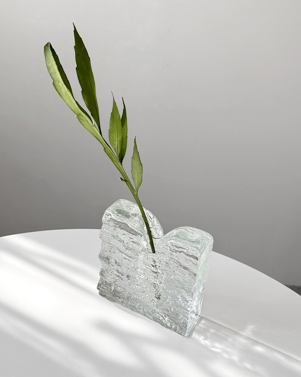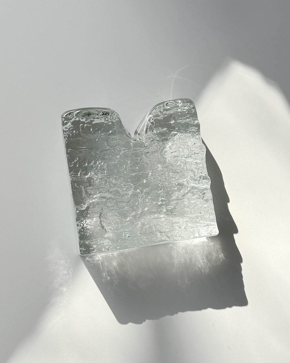 수작업으로 만들어진 글라스 오브제입니다. 기포, 유리 주름 등 제작과정에서 생기는 흔적이 일부 있으며, 가까이에서 보이는 옅은 세월감이 있습니다.