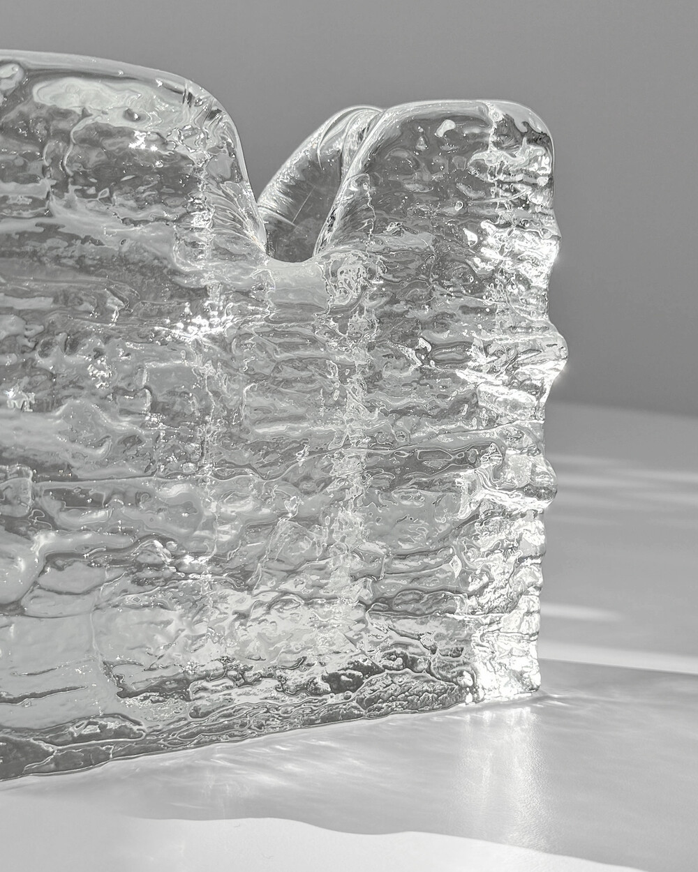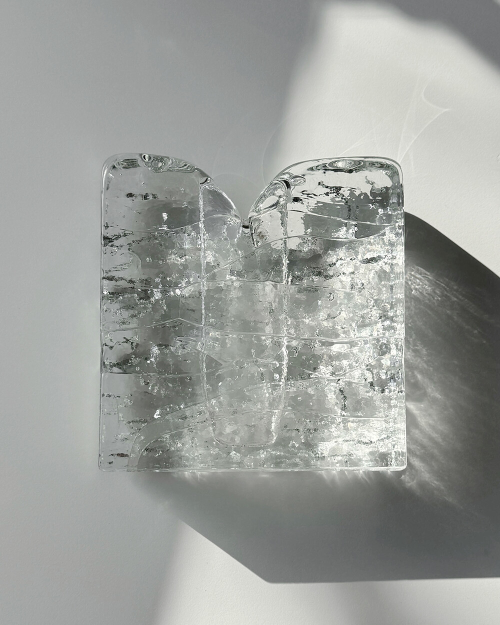 물결과 나무껍질 등 자연에서 영감을 얻은 텍스쳐를 사용한 유리공예품을 선보였던 독일 잉그리드 글라스휴테 Ingrid glashütte의 아트 글라스 오브제입니다.