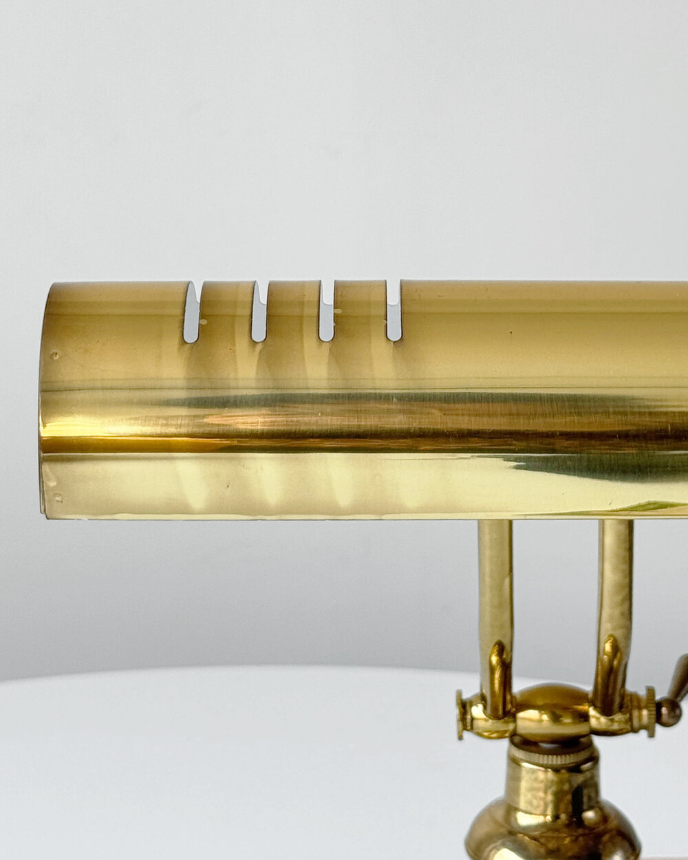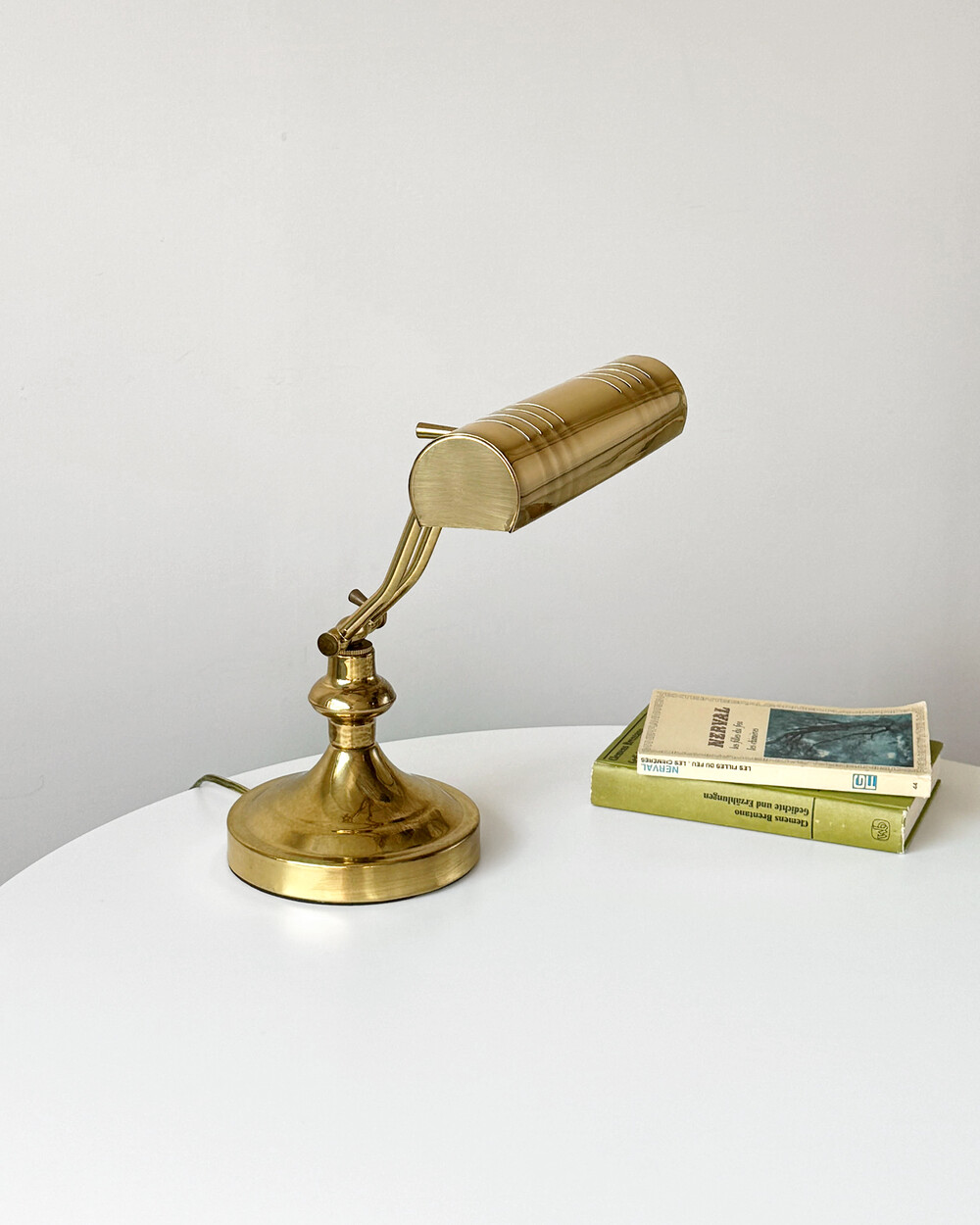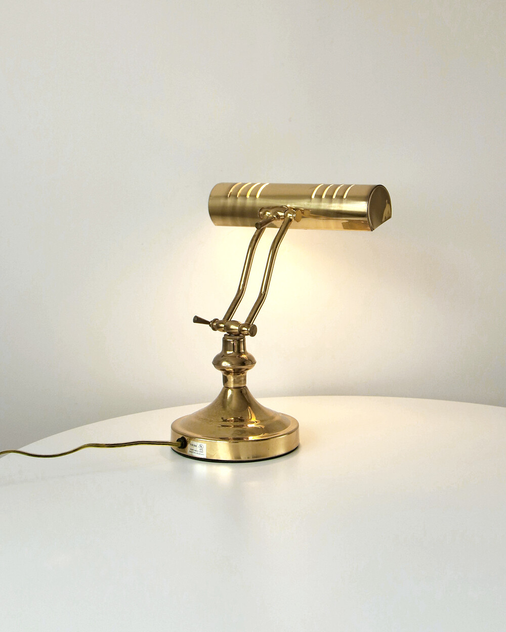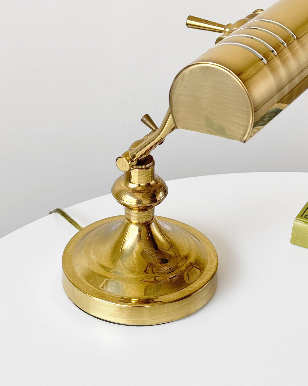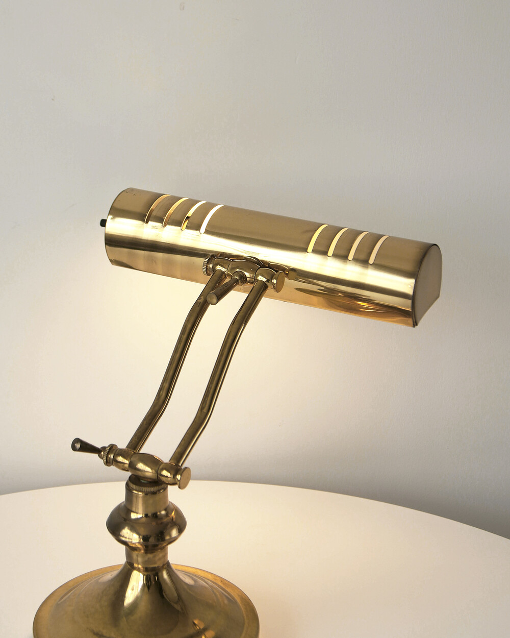 공간에 클래식한 아름다움을 더해줄 1980년대 피아노 램프입니다. 명칭 그대로 피아노 위에 두고 악보를 보기 위해 사용되던 램프로 골드 메탈 소재로 만들어졌습니다.