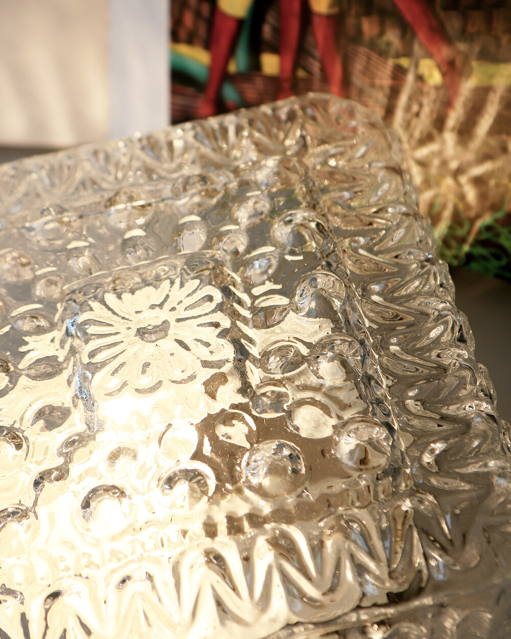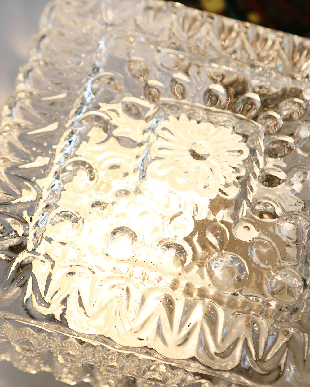꽃을 모티브로한 입체적인 패턴이 장식된 글라스 천장 & 벽 램프입니다.
