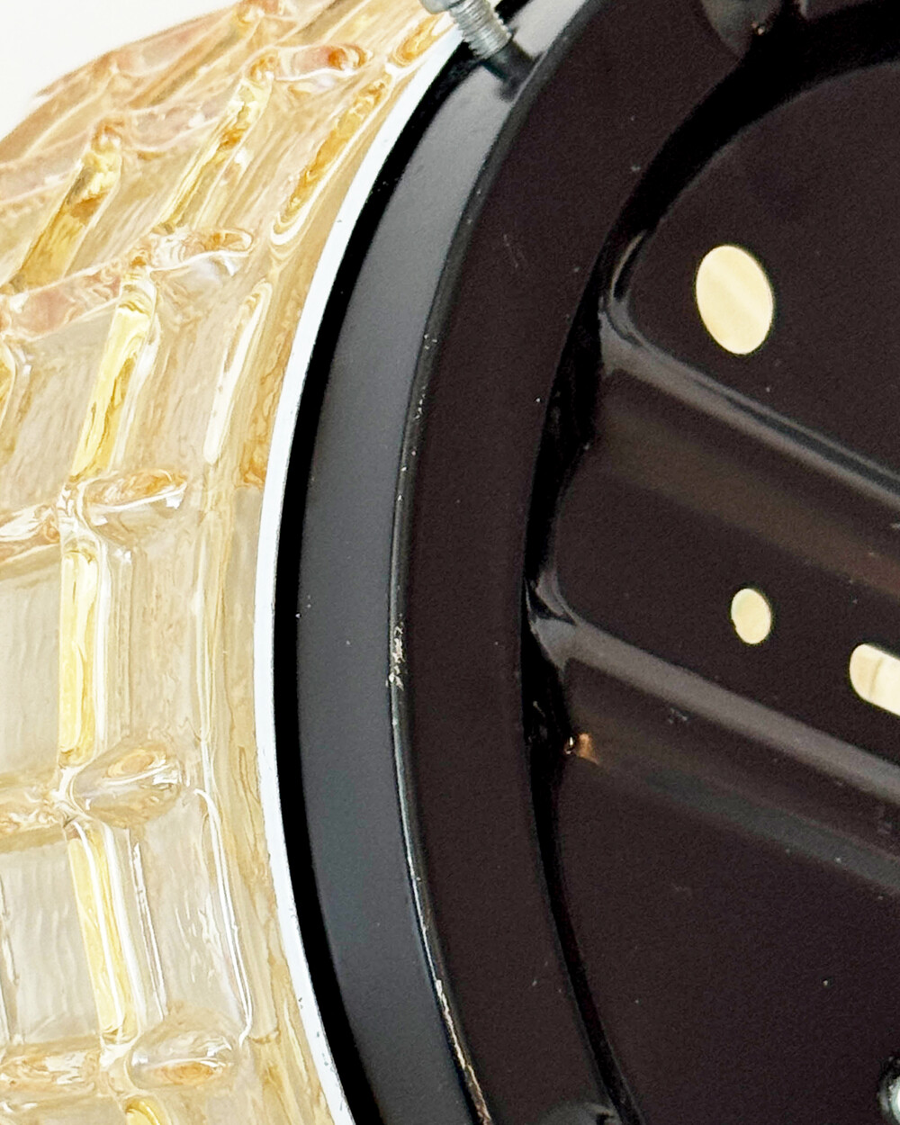 크리스탈 글라스에 장식된 엠버 컬러가 러프하게 입혀져 있습니다.