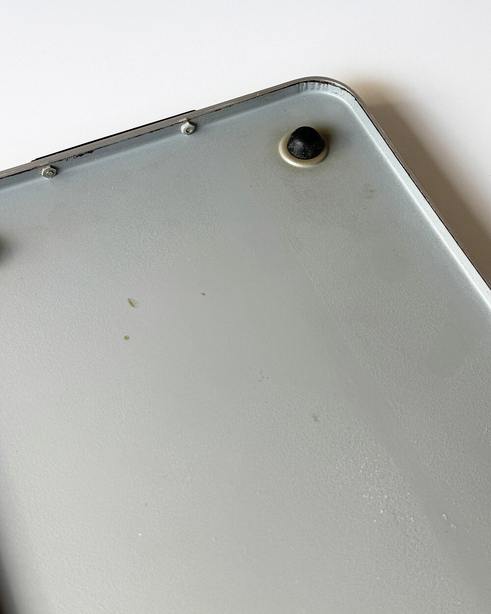 뒷면에는 고무 소재의 굽이 부착되어 있으며, 오랜 시간 사용되며 생긴 미세한 높이 차이가 있으나 실사용에는 영향을 주지 않는 수준입니다.
