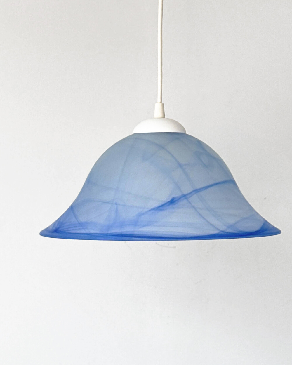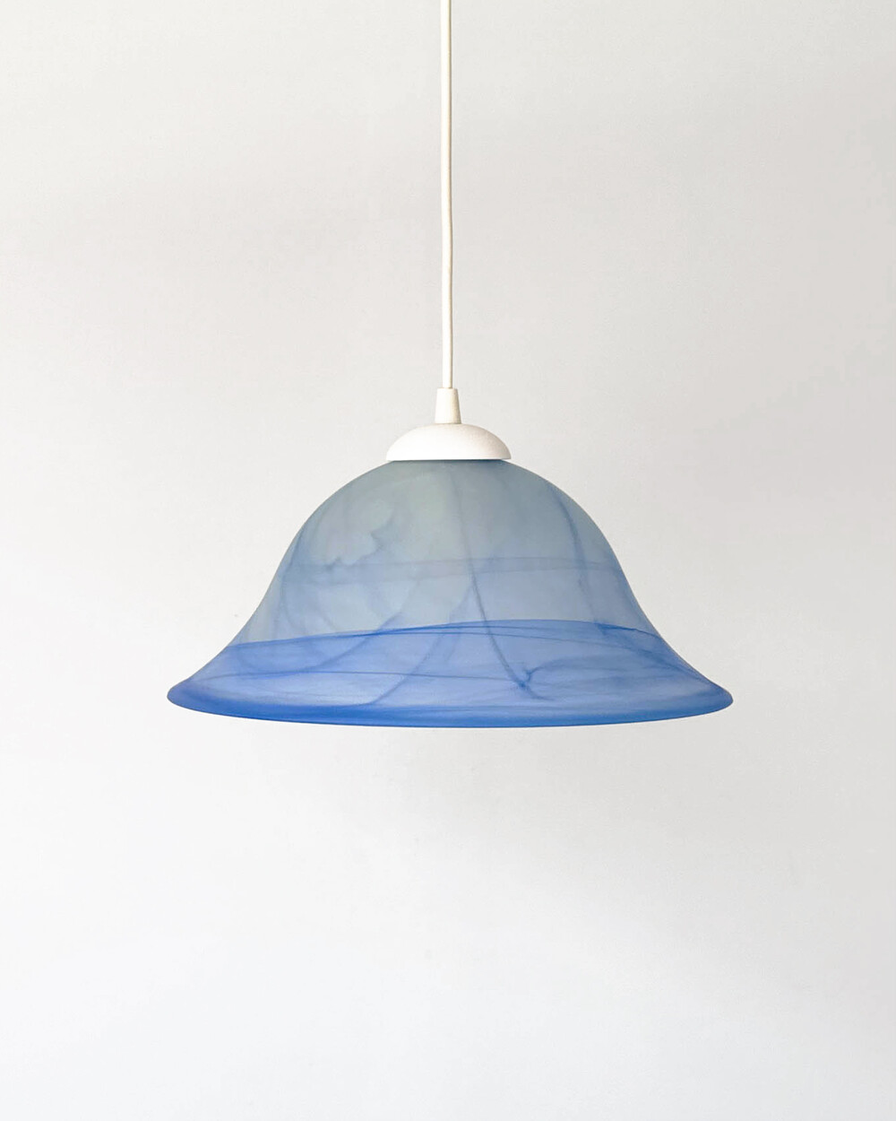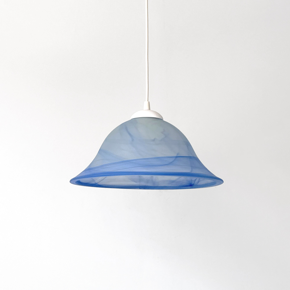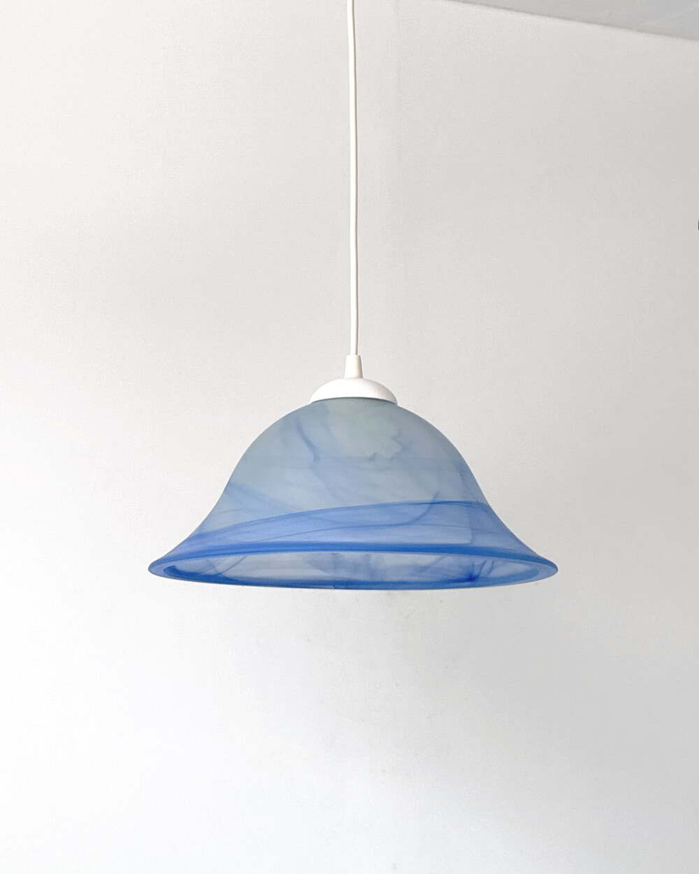 물결무늬가 은은하게 겹쳐진 반투명한 블루 알라바스터 펜던트 조명으로, 1980년대 조명 브랜드 EGLO에서 제작 되었습니다. 다이닝 테이블, 침실 등 어느 장소에나 잘 어우러질 부드러운 머쉬룸 실루엣으로, 공간에 은은한 빛을 더해주는 조명입니다.