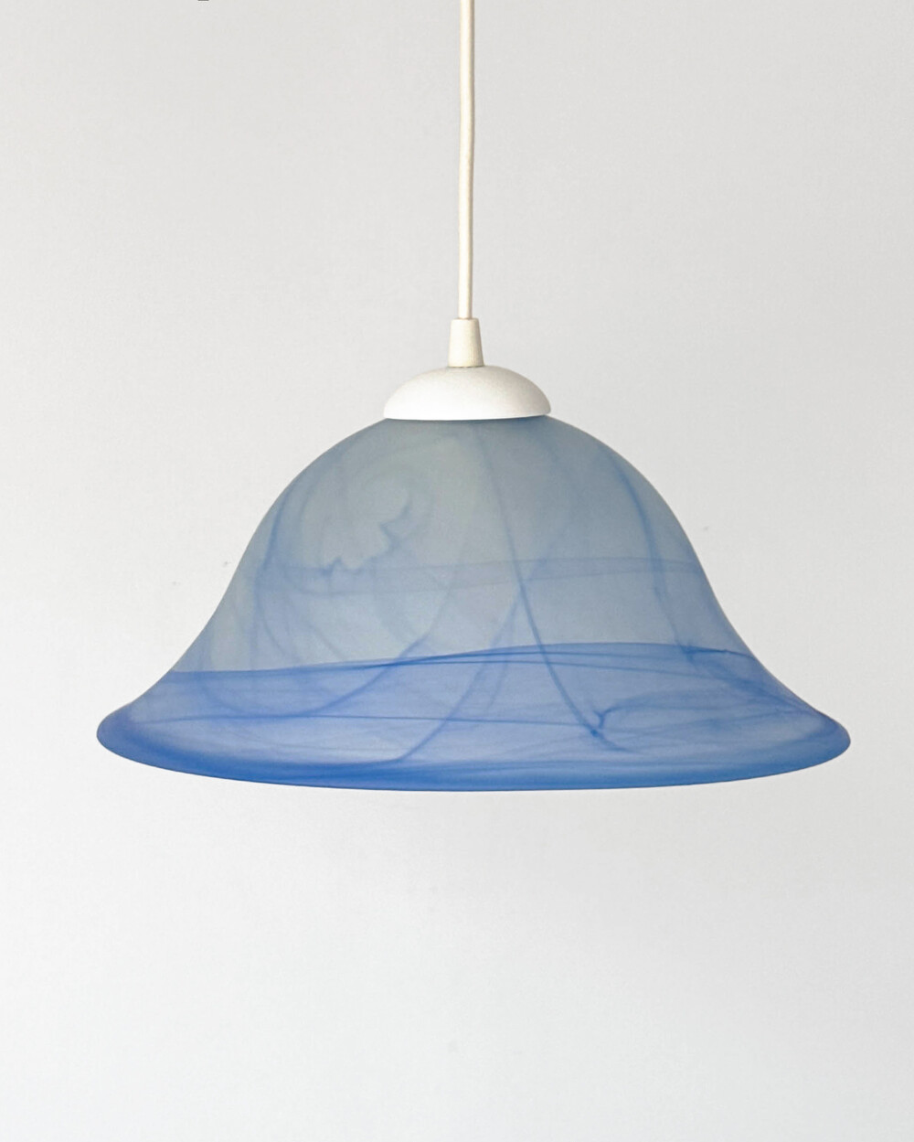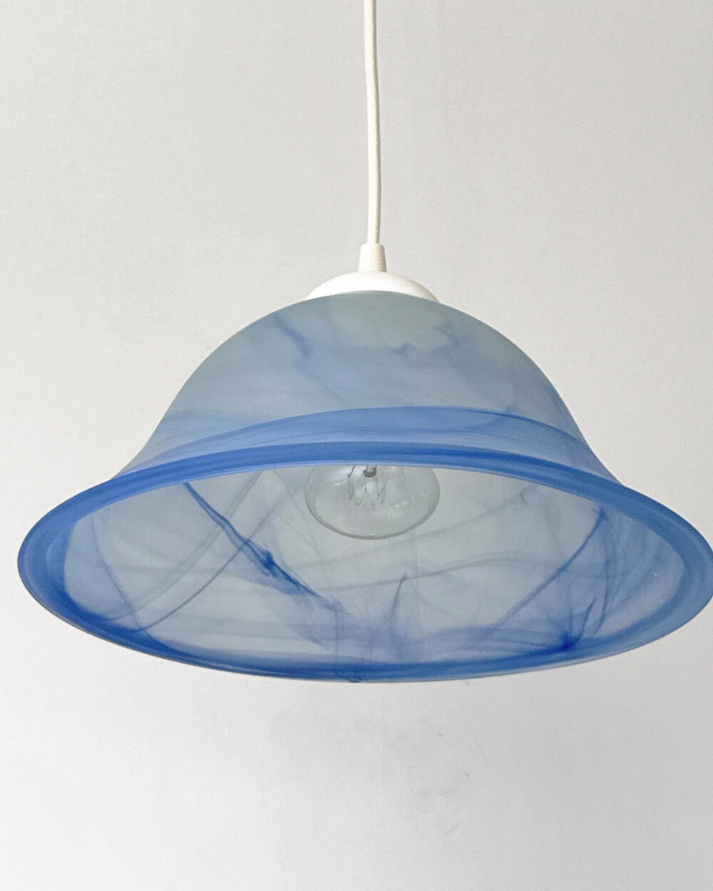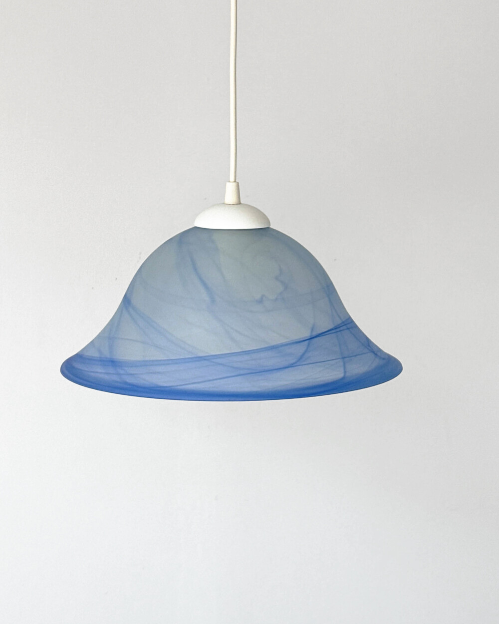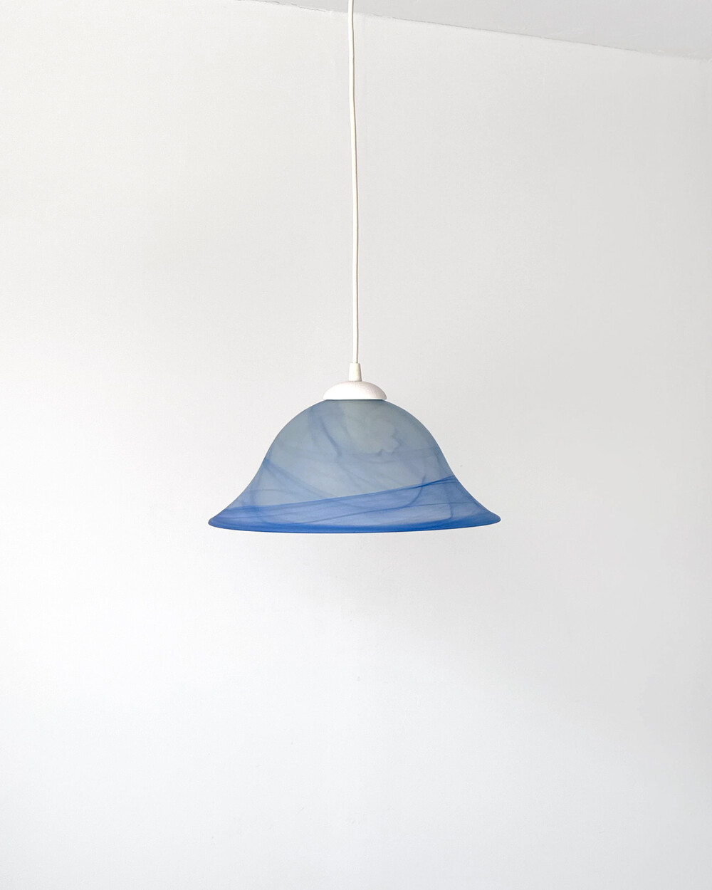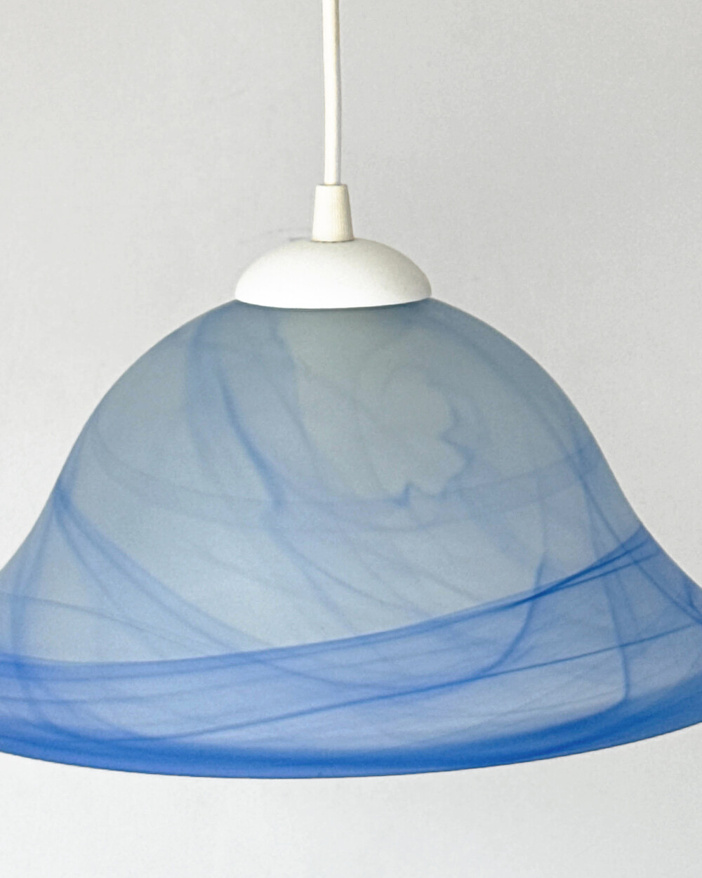 물결무늬가 은은하게 겹쳐진 반투명한 블루 알라바스터 펜던트 조명으로, 1980년대 조명 브랜드 EGLO에서 제작 되었습니다. 다이닝 테이블, 침실 등 어느 장소에나 잘 어우러질 부드러운 머쉬룸 실루엣으로, 공간에 은은한 빛을 더해주는 조명입니다.