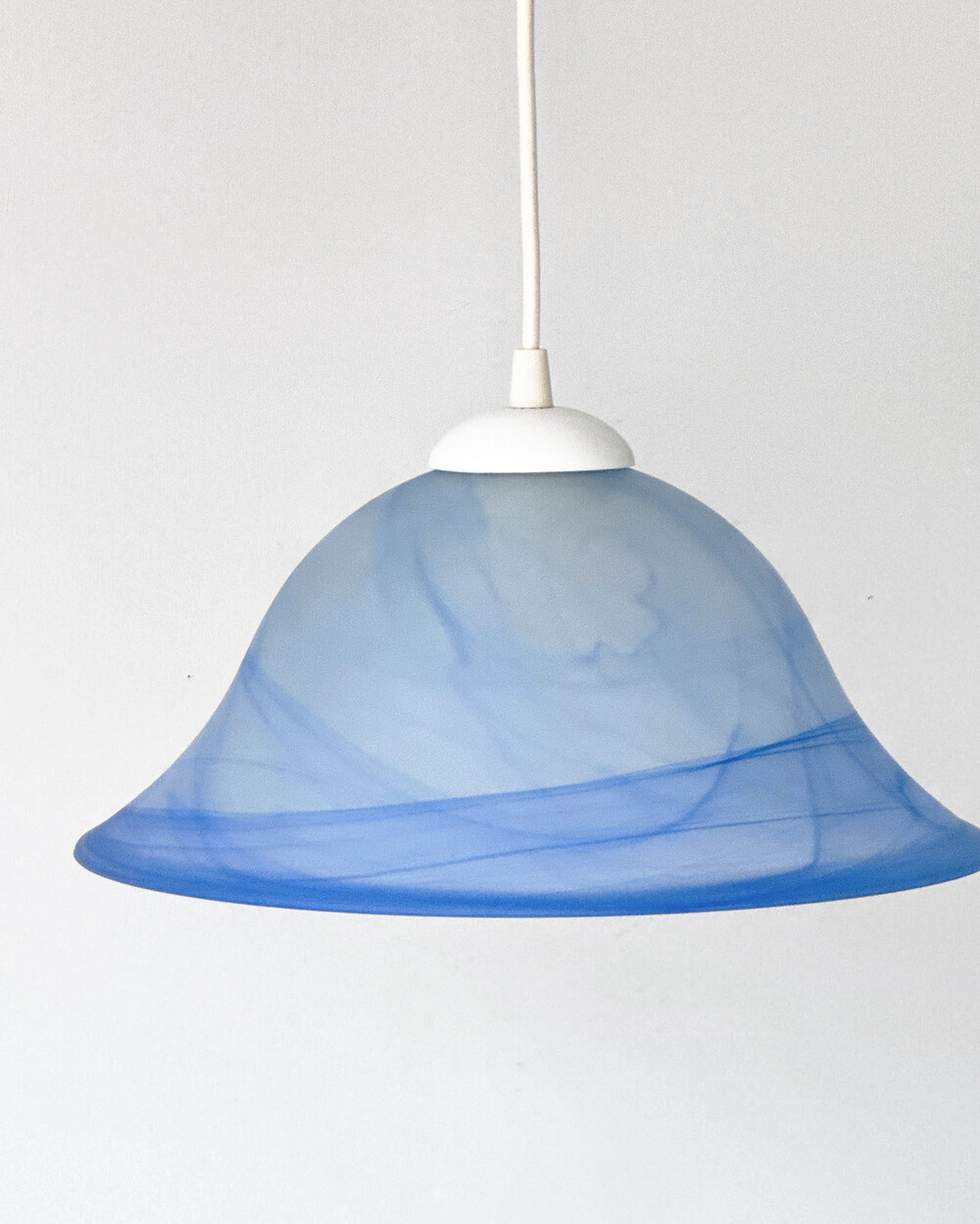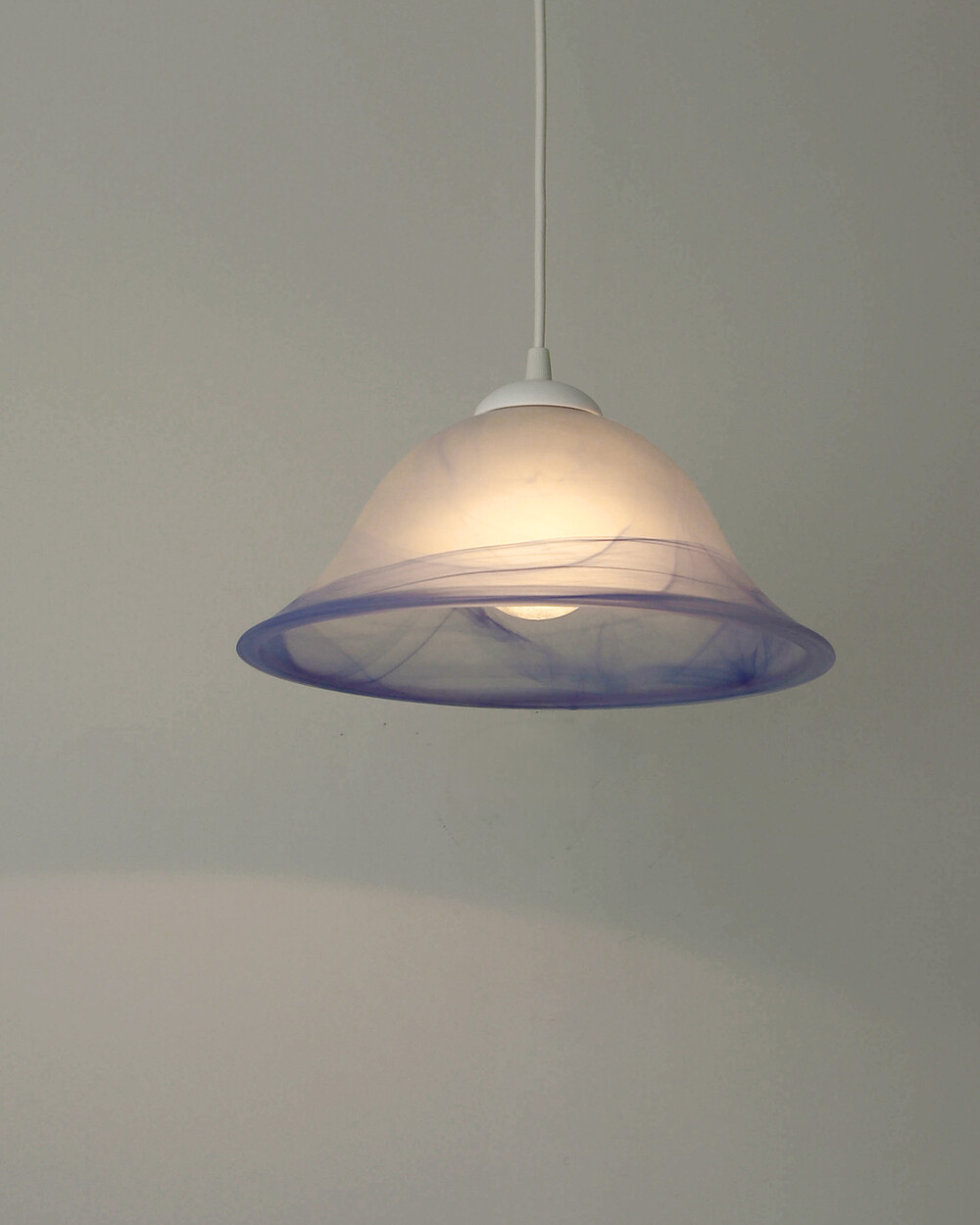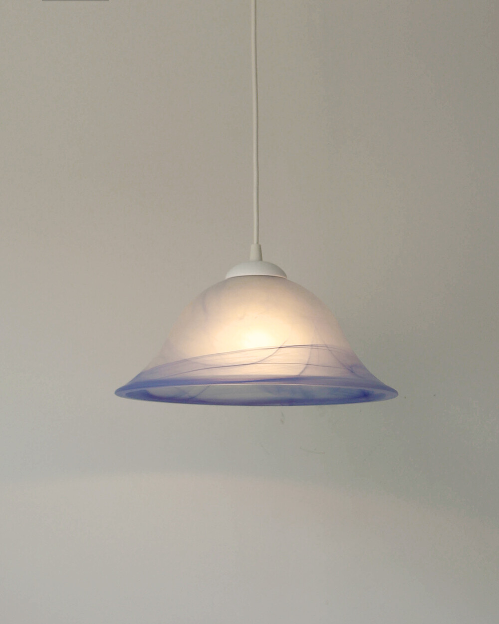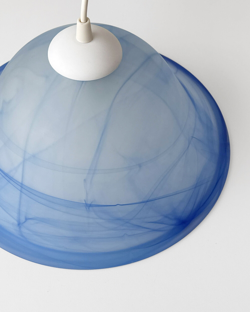 물결무늬가 은은하게 겹쳐진 반투명한 블루 알라바스터 펜던트 조명으로, 1980년대 조명 브랜드 EGLO에서 제작 되었습니다. 다이닝 테이블, 침실 등 어느 장소에나 잘 어우러질 부드러운 머쉬룸 실루엣으로, 공간에 은은한 빛을 더해주는 조명입니다.