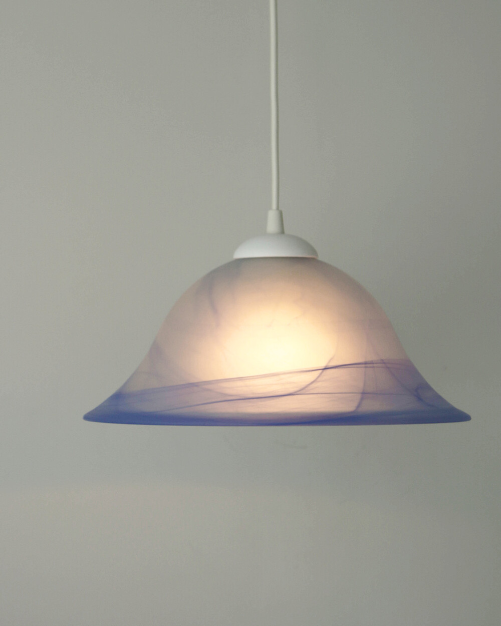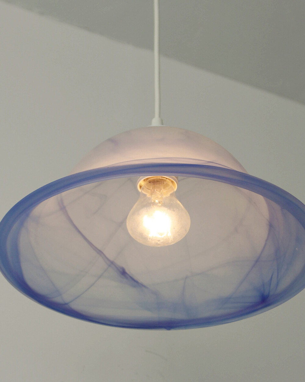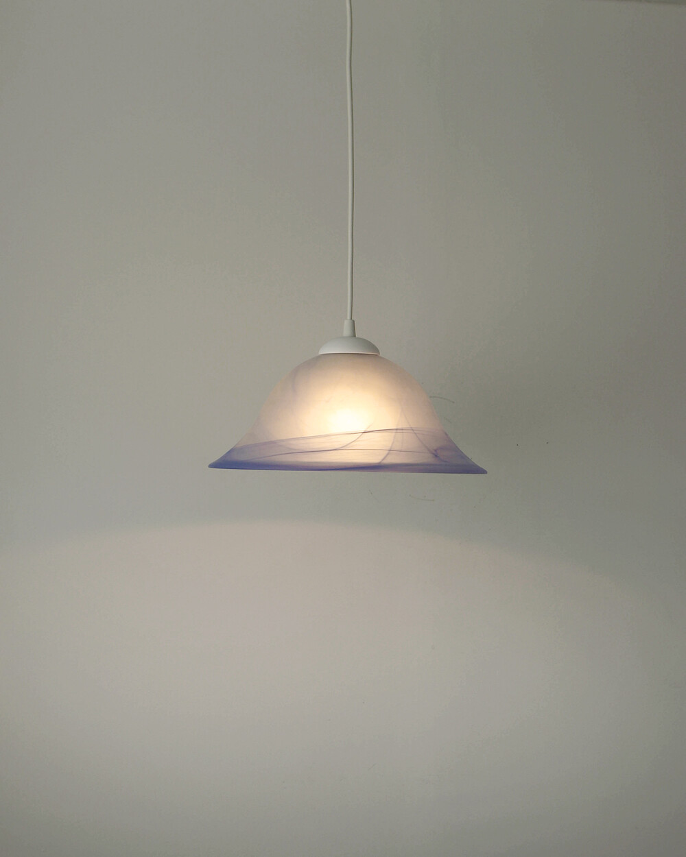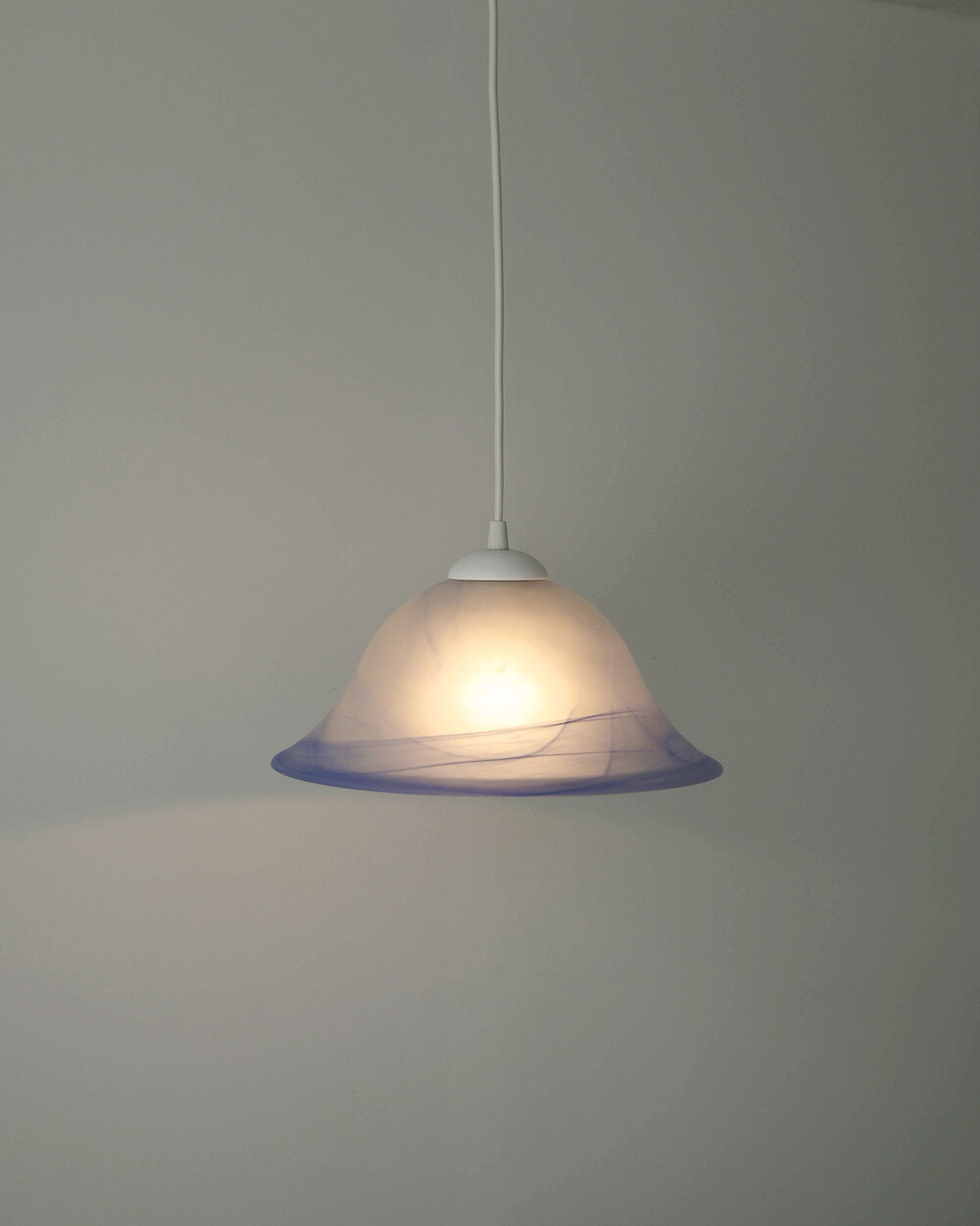 물결무늬가 은은하게 겹쳐진 반투명한 블루 알라바스터 펜던트 조명으로, 1980년대 조명 브랜드 EGLO에서 제작 되었습니다. 다이닝 테이블, 침실 등 어느 장소에나 잘 어우러질 부드러운 머쉬룸 실루엣으로, 공간에 은은한 빛을 더해주는 조명입니다.