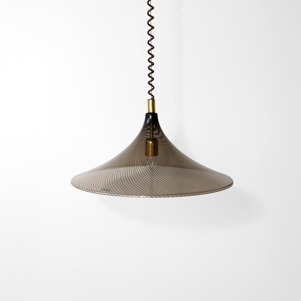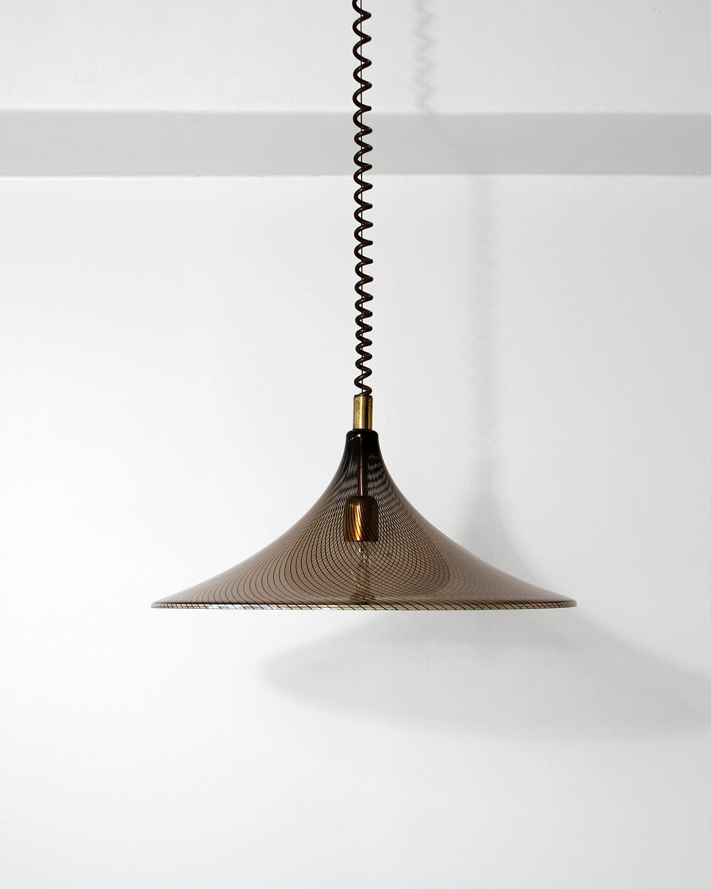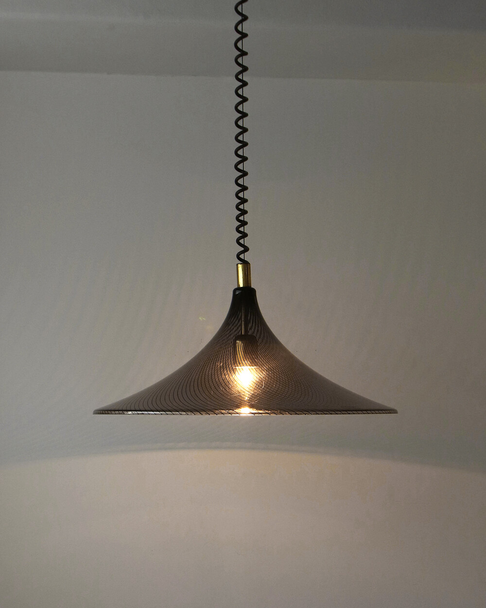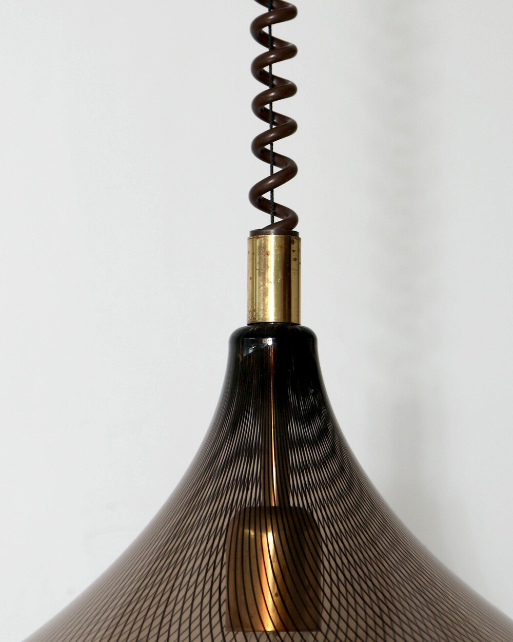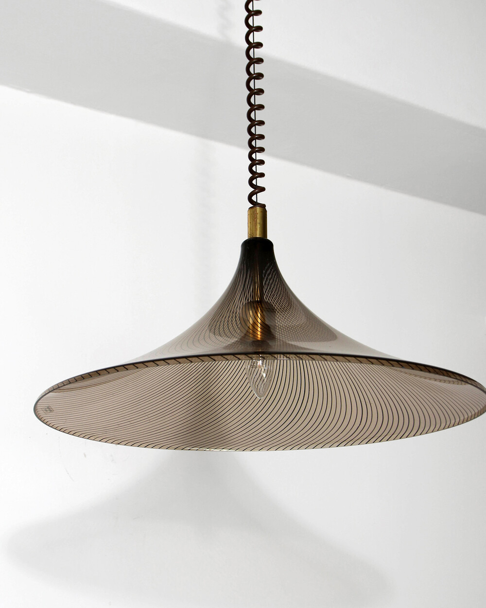 1970s Germany Brown Line Pattern Acrylic Pendant Lamp