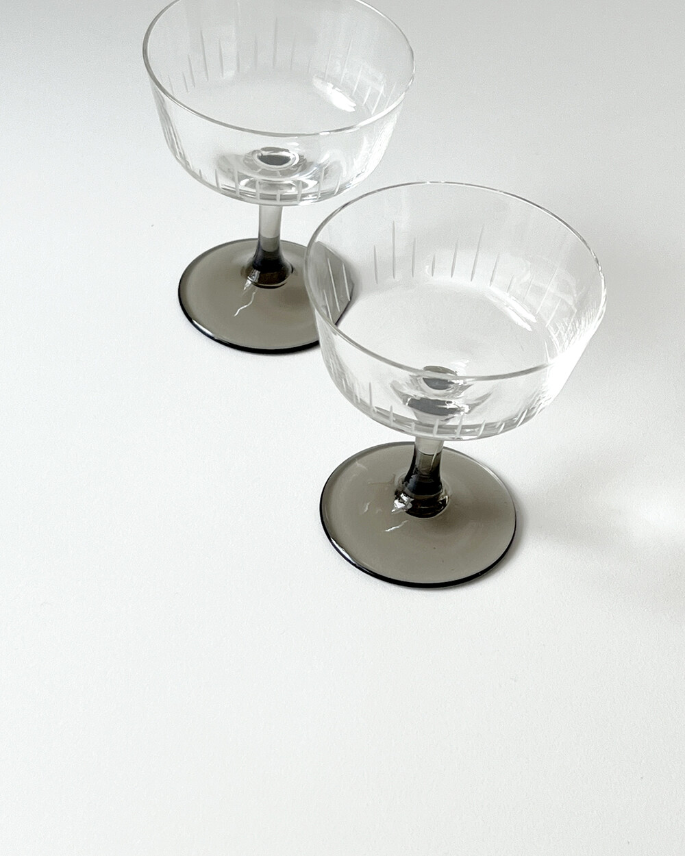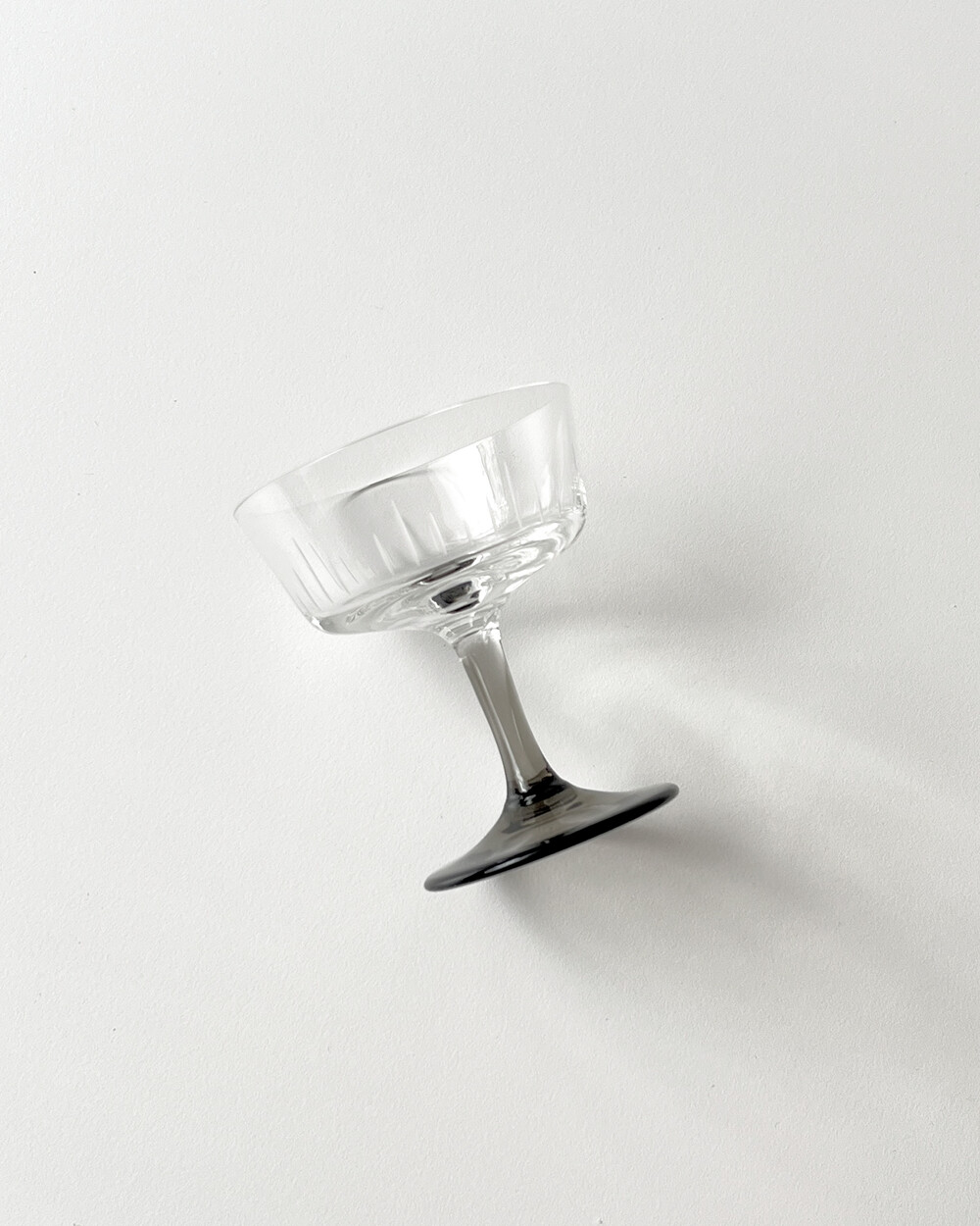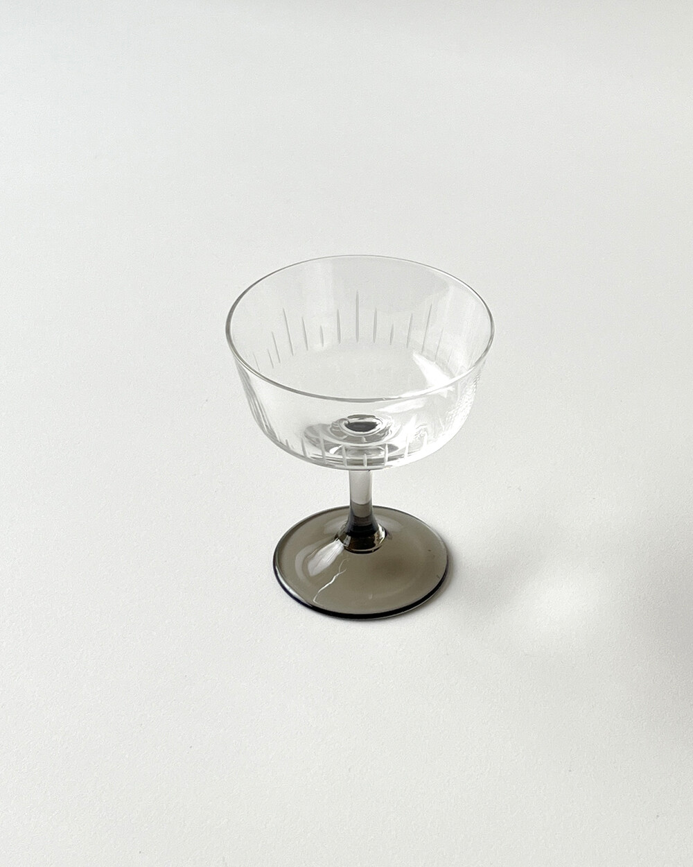 정교한 핸드컷팅 장식과 스모크 유리 스템이 더해져 차분한 멋를 가지고 있는 크리스탈 글라스입니다.