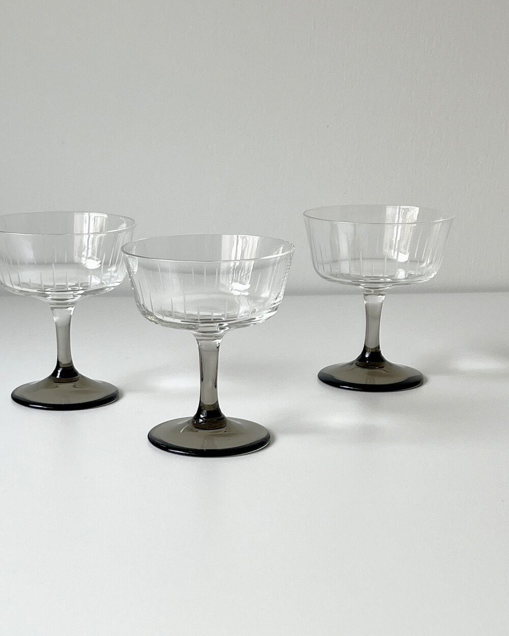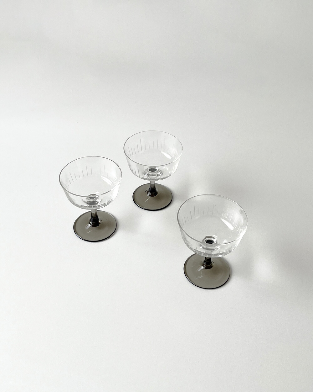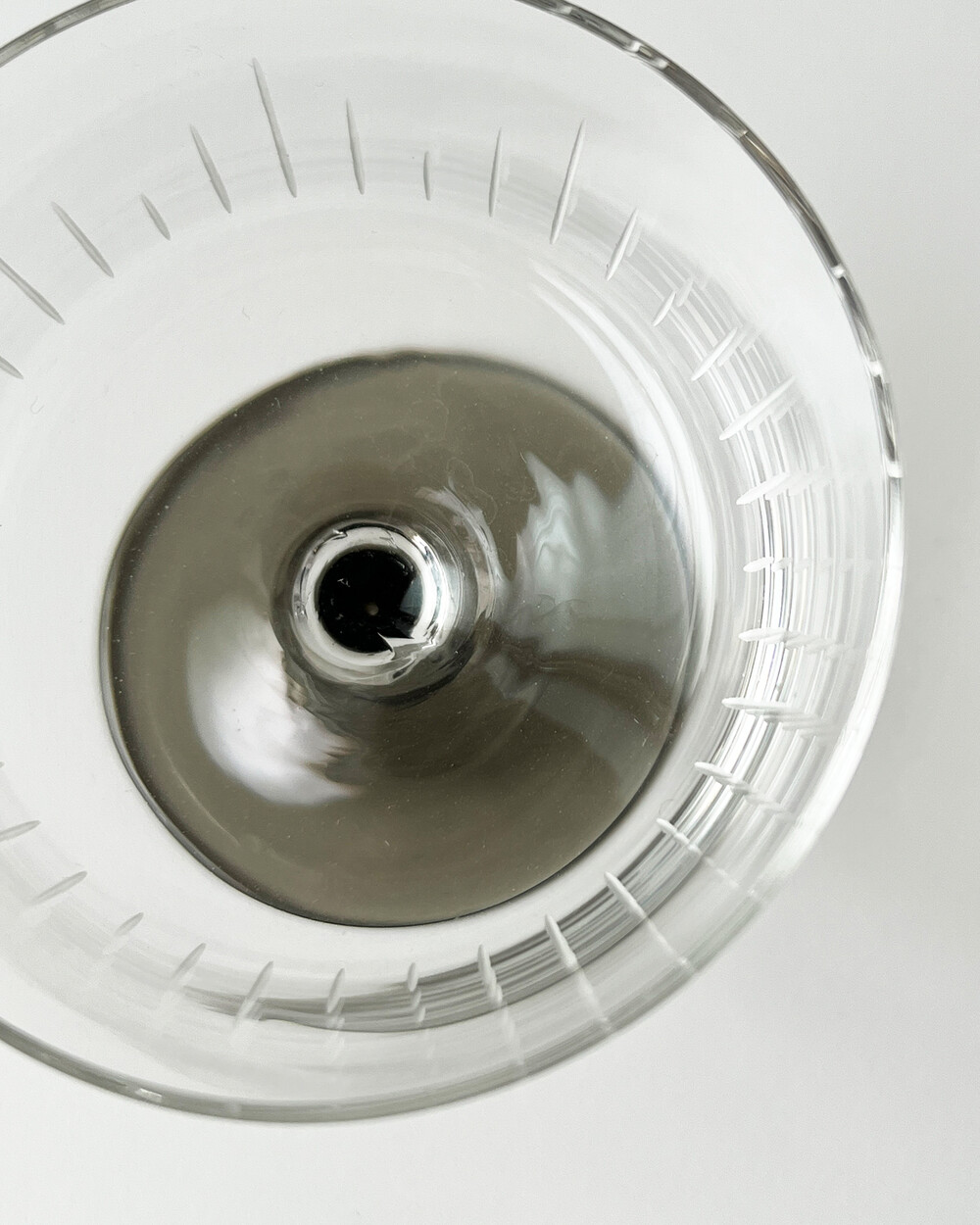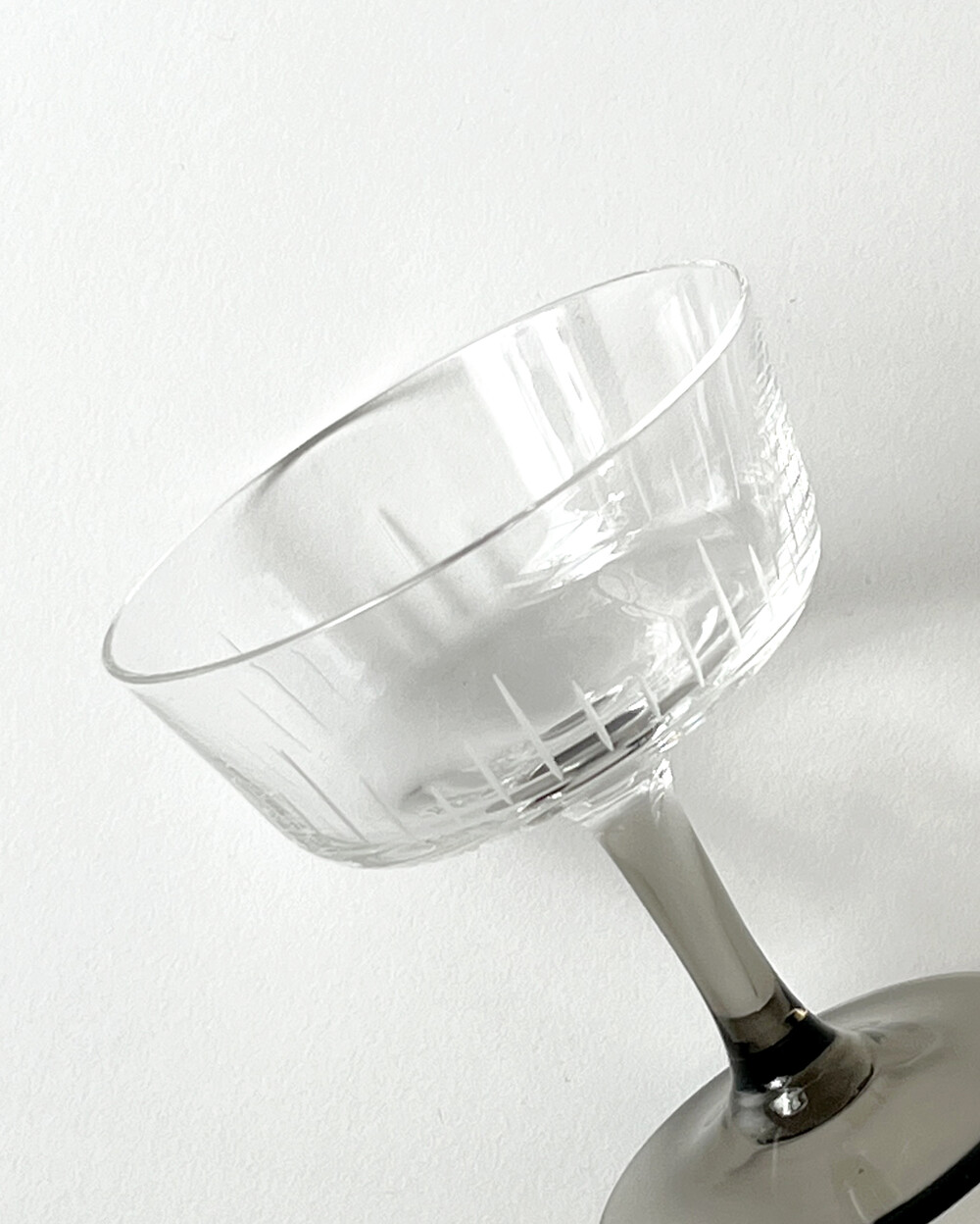정교한 핸드컷팅 장식과 스모크 유리 스템이 더해져 차분한 멋를 가지고 있는 크리스탈 글라스입니다.