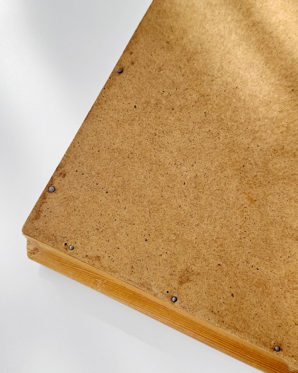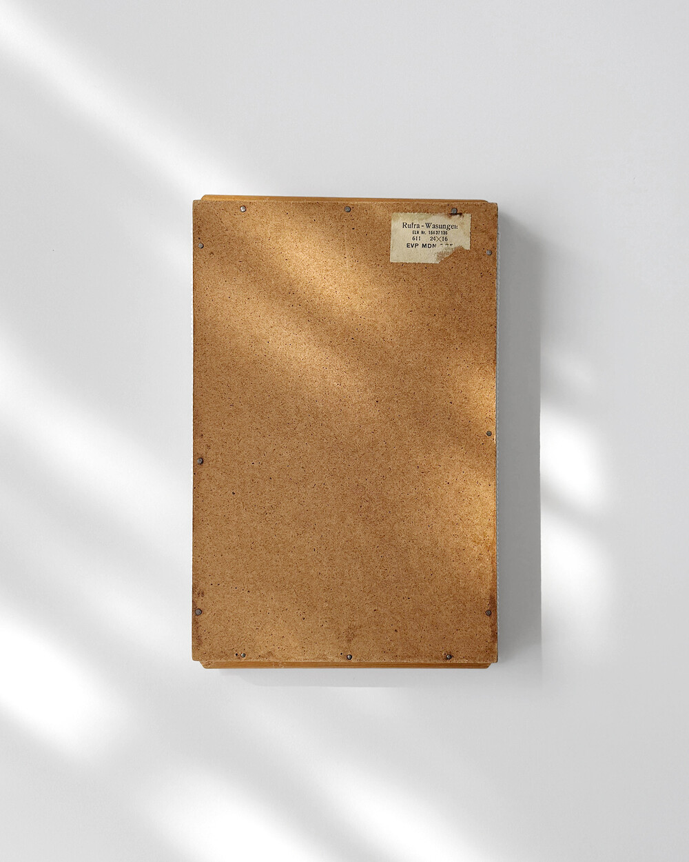 트레이 뒷면은 파티클 보드로 만들어졌습니다. Rufra Wasungen의 종이라벨이 한켠에 남아 있습니다.