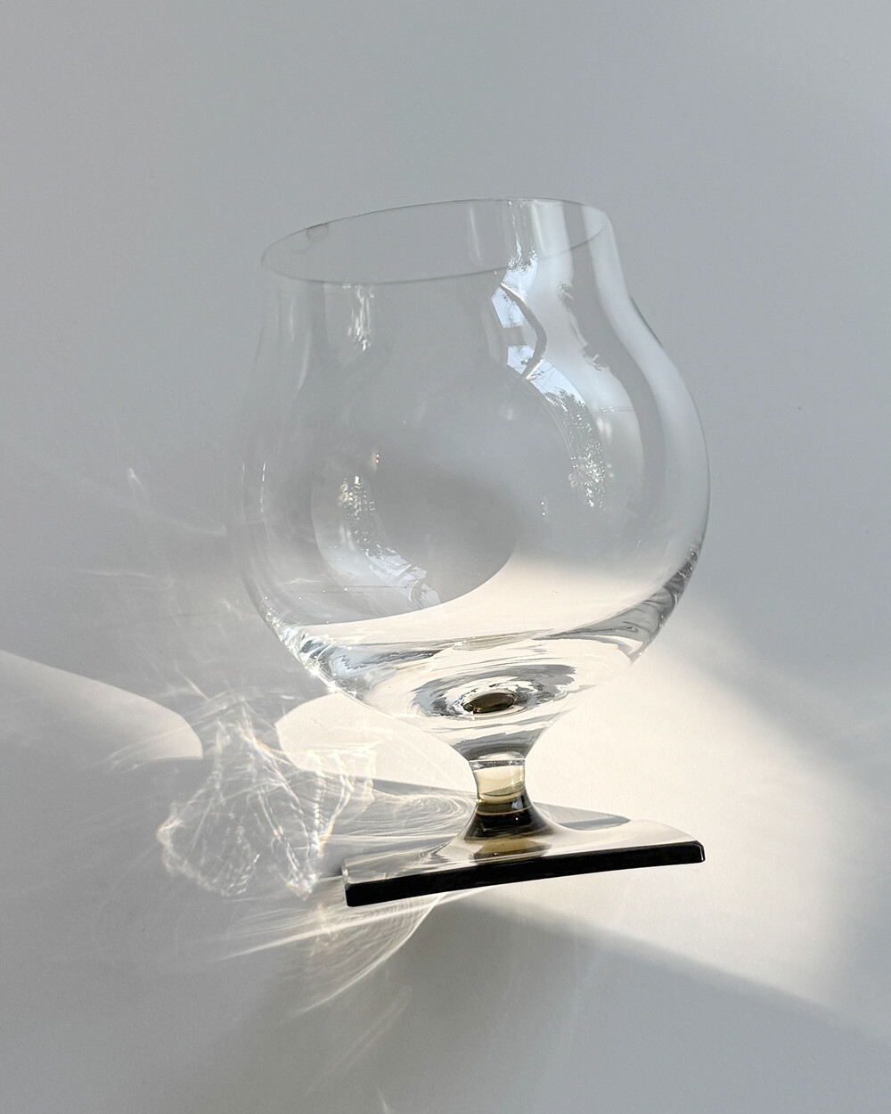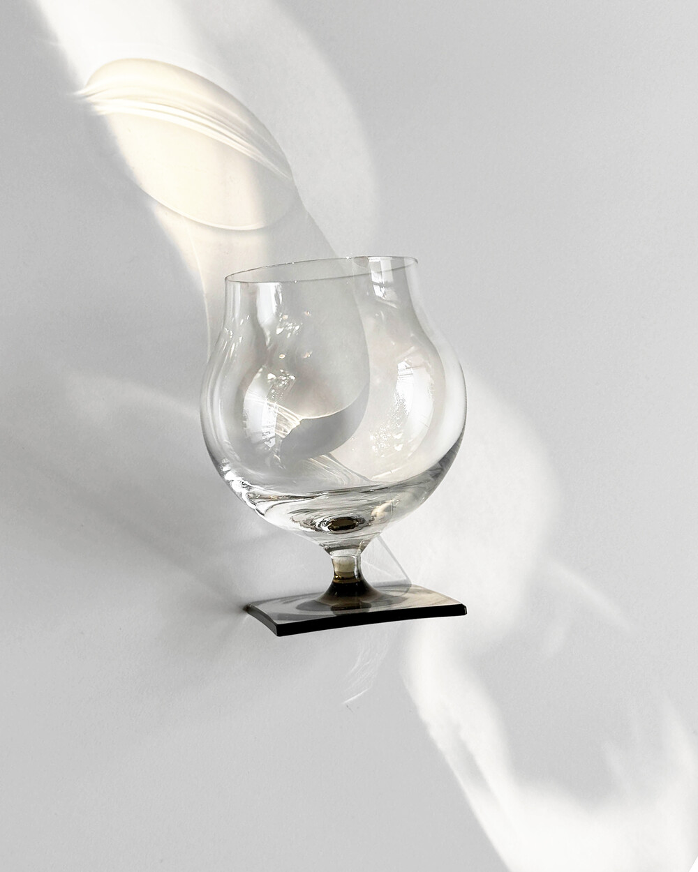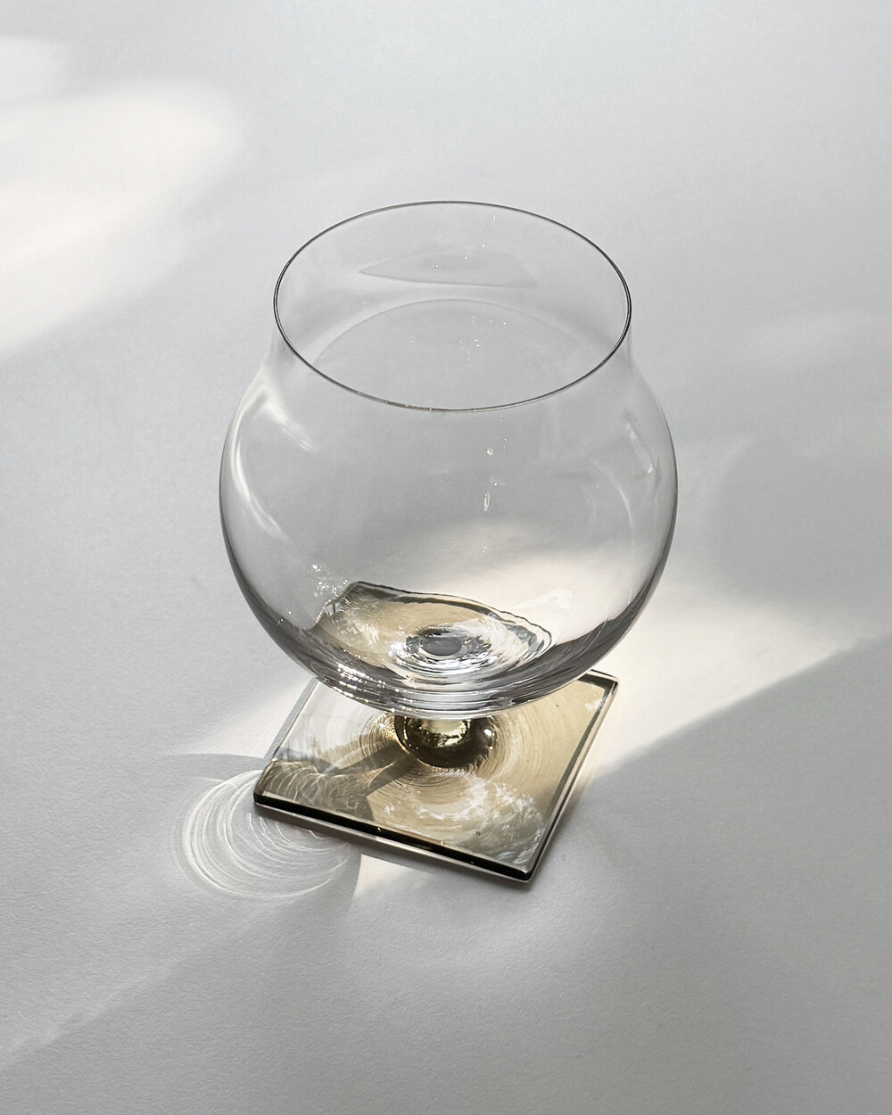 브랜디와 코냑의 향을 즐기기 위한 둥근 볼 글라스와 낮은 스템으로 이루어져 있으며, 정사각형 베이스는 핸드 커팅으로 정교하게 마감되었습니다. 입에 닿는 립 부분은 매우 섬세한 두께로 마감되어 있으며, 와인 글라스로도 사용하기 좋은 크기입니다.
