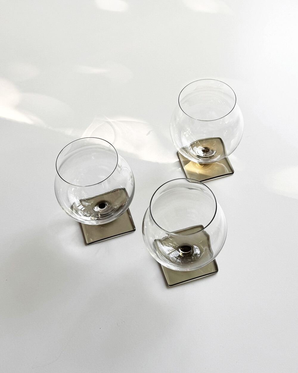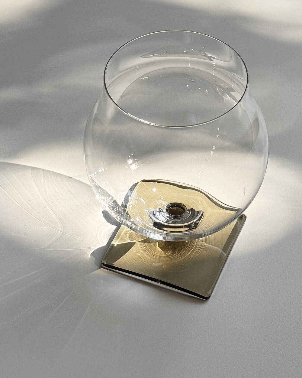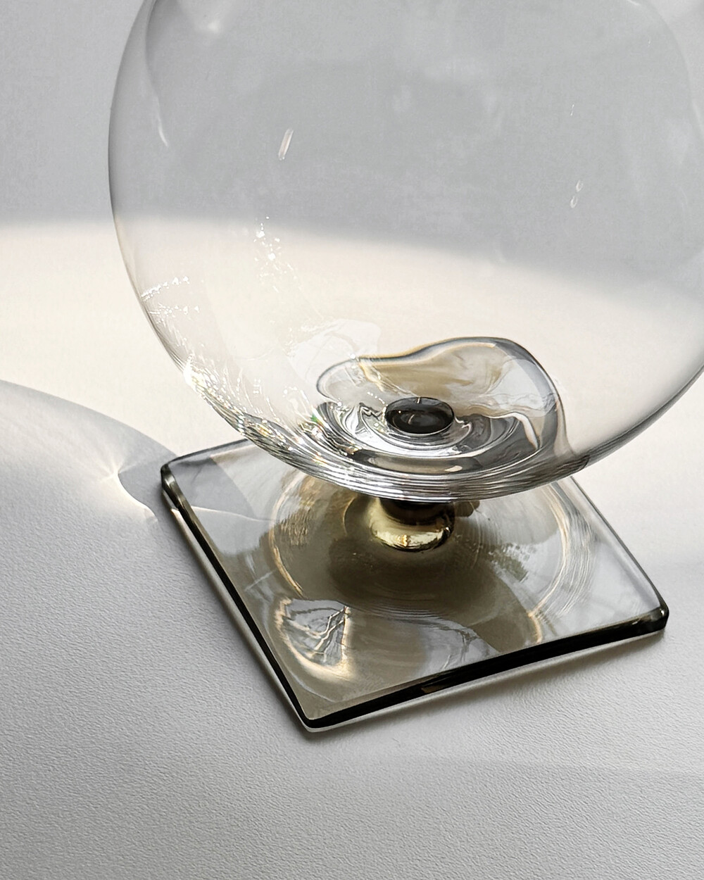 브랜디와 코냑의 향을 즐기기 위한 둥근 볼 글라스와 낮은 스템으로 이루어져 있으며, 정사각형 베이스는 핸드 커팅으로 정교하게 마감되었습니다. 입에 닿는 립 부분은 매우 섬세한 두께로 마감되어 있으며, 와인 글라스로도 사용하기 좋은 크기입니다.