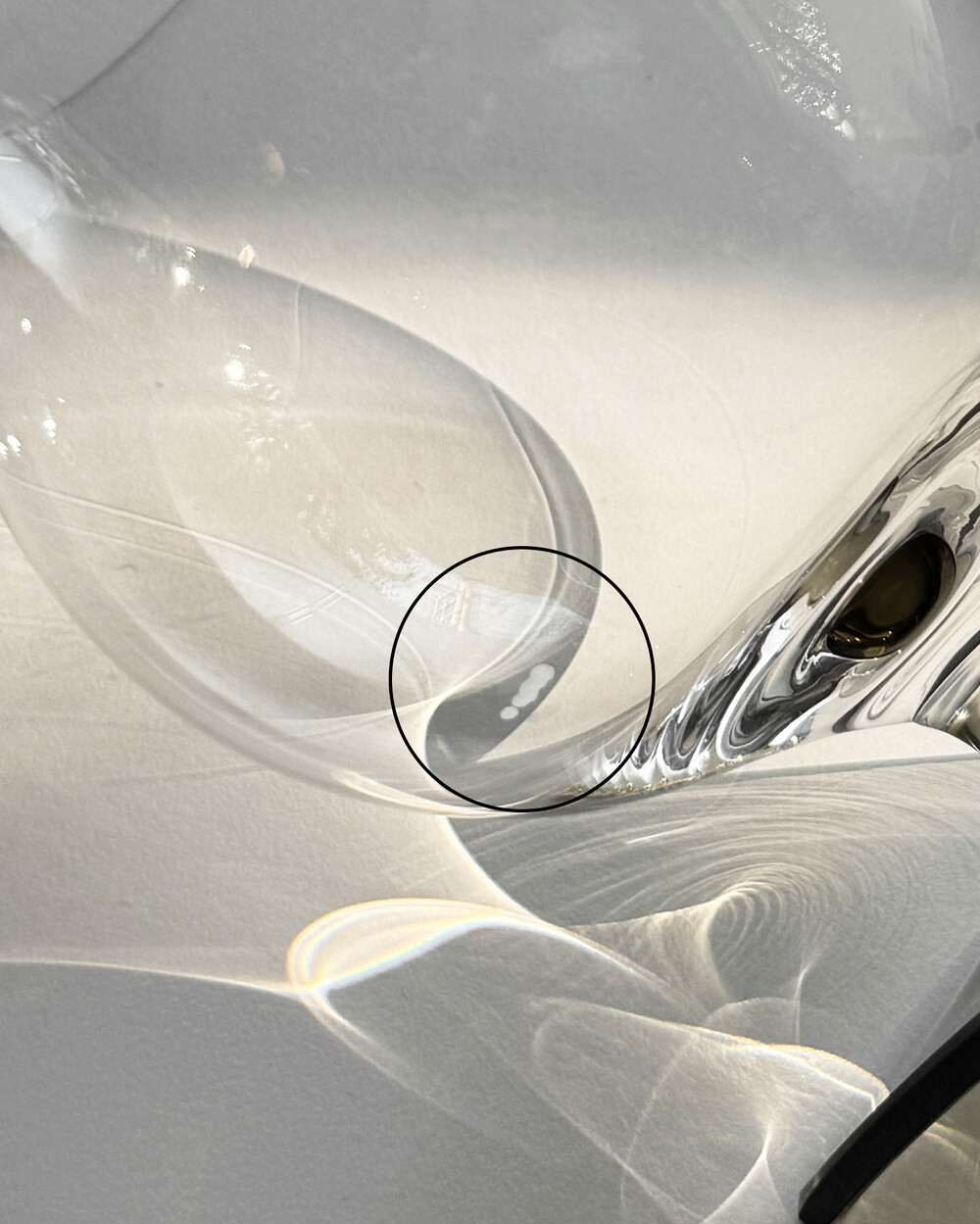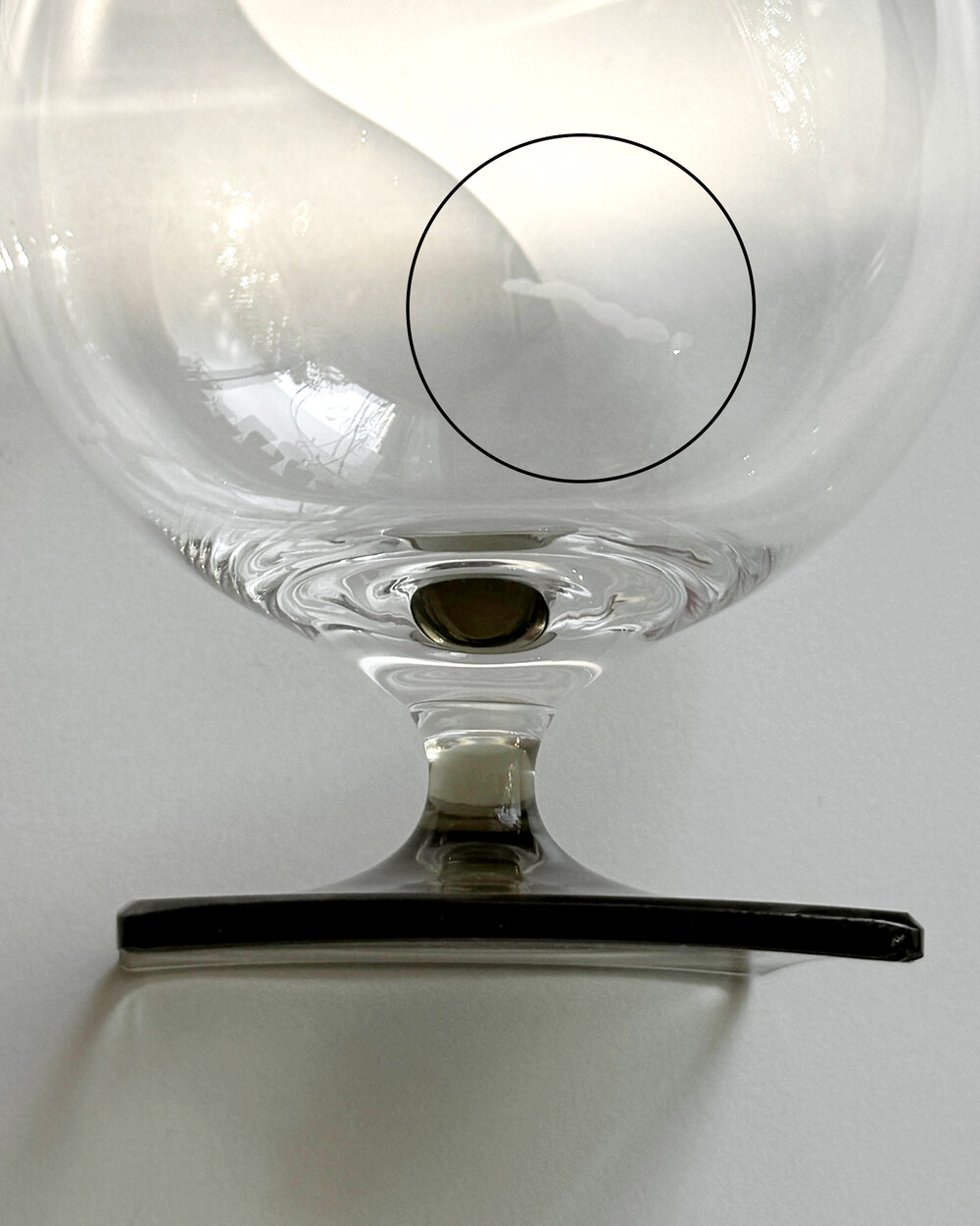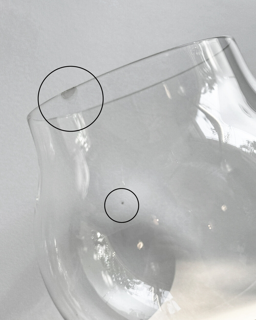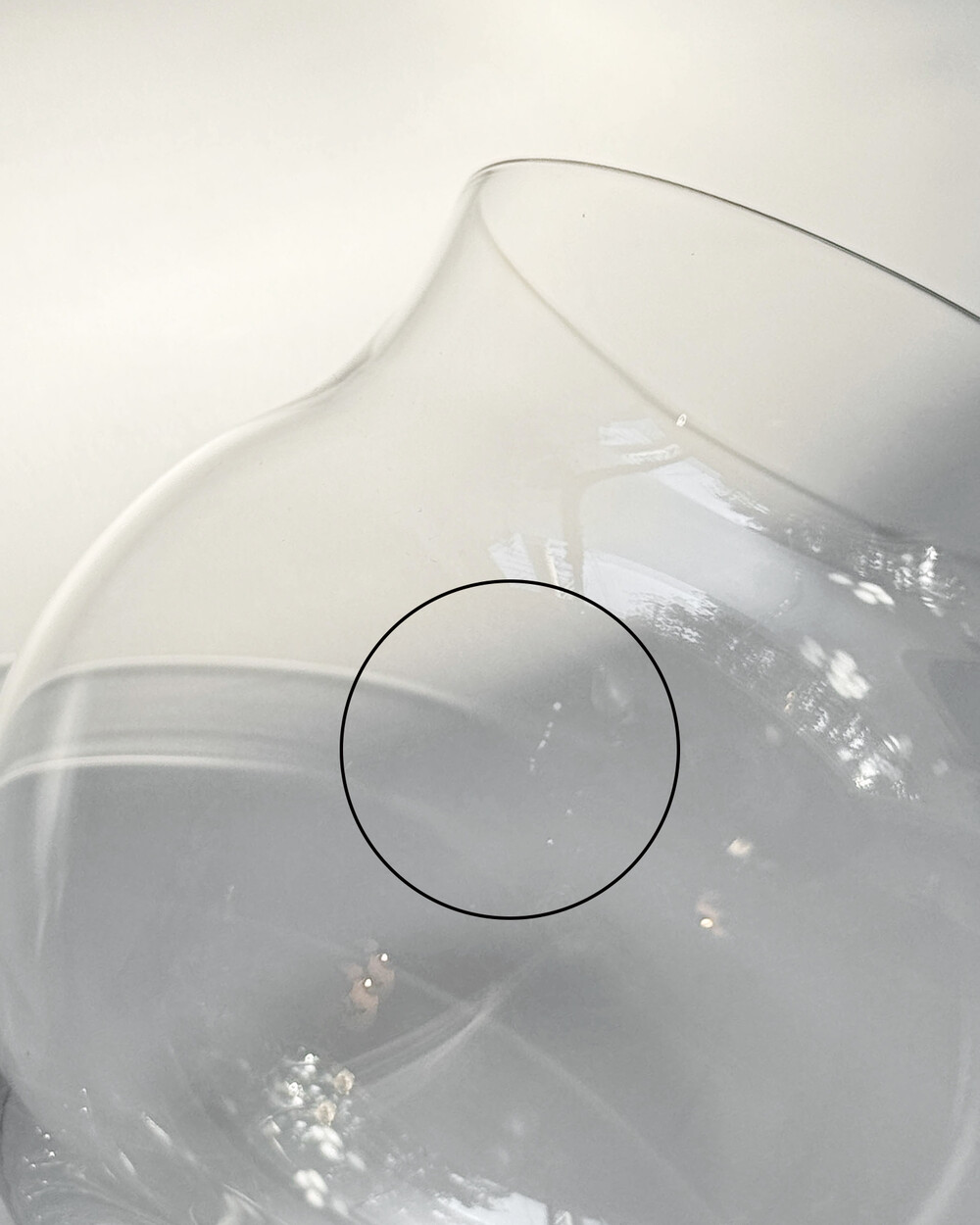 둥근 글라스 볼 하단으로 반투명한 얼룩이 3군데 남아 있습니다. (제작 과정에서 생긴 지워지지 않는 디테일)
