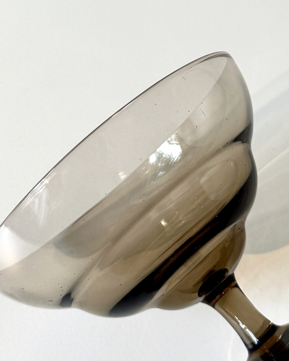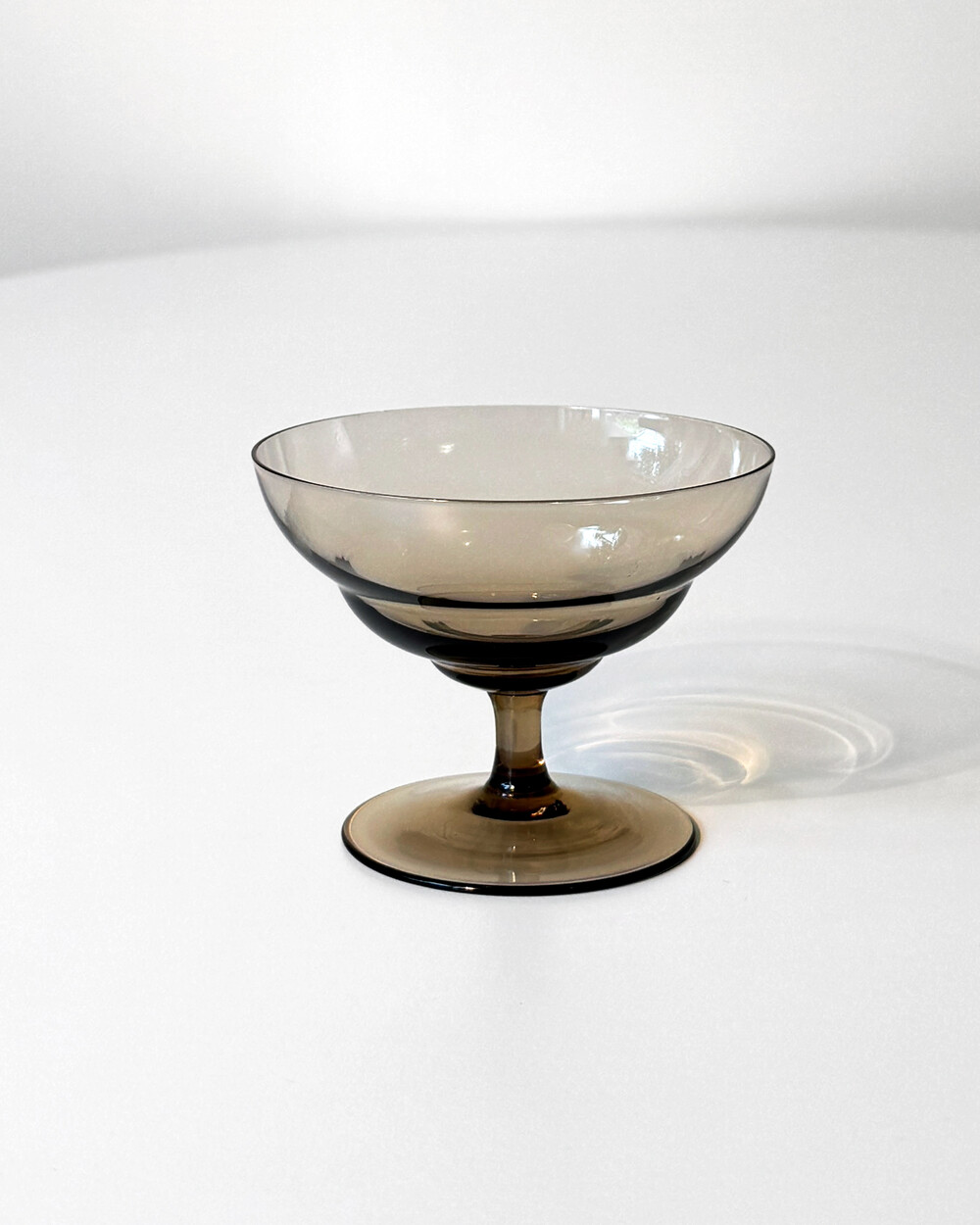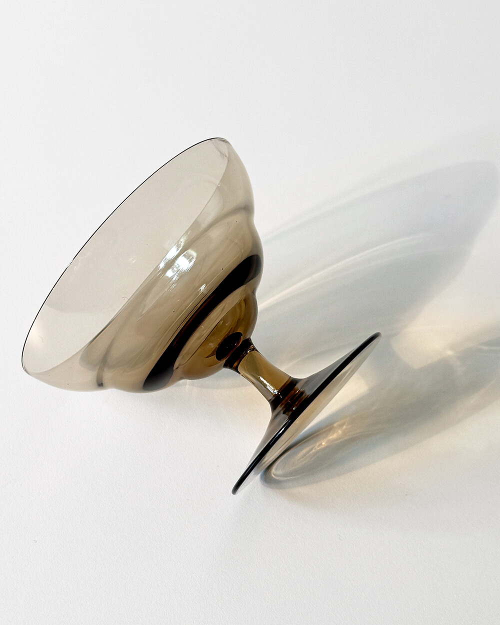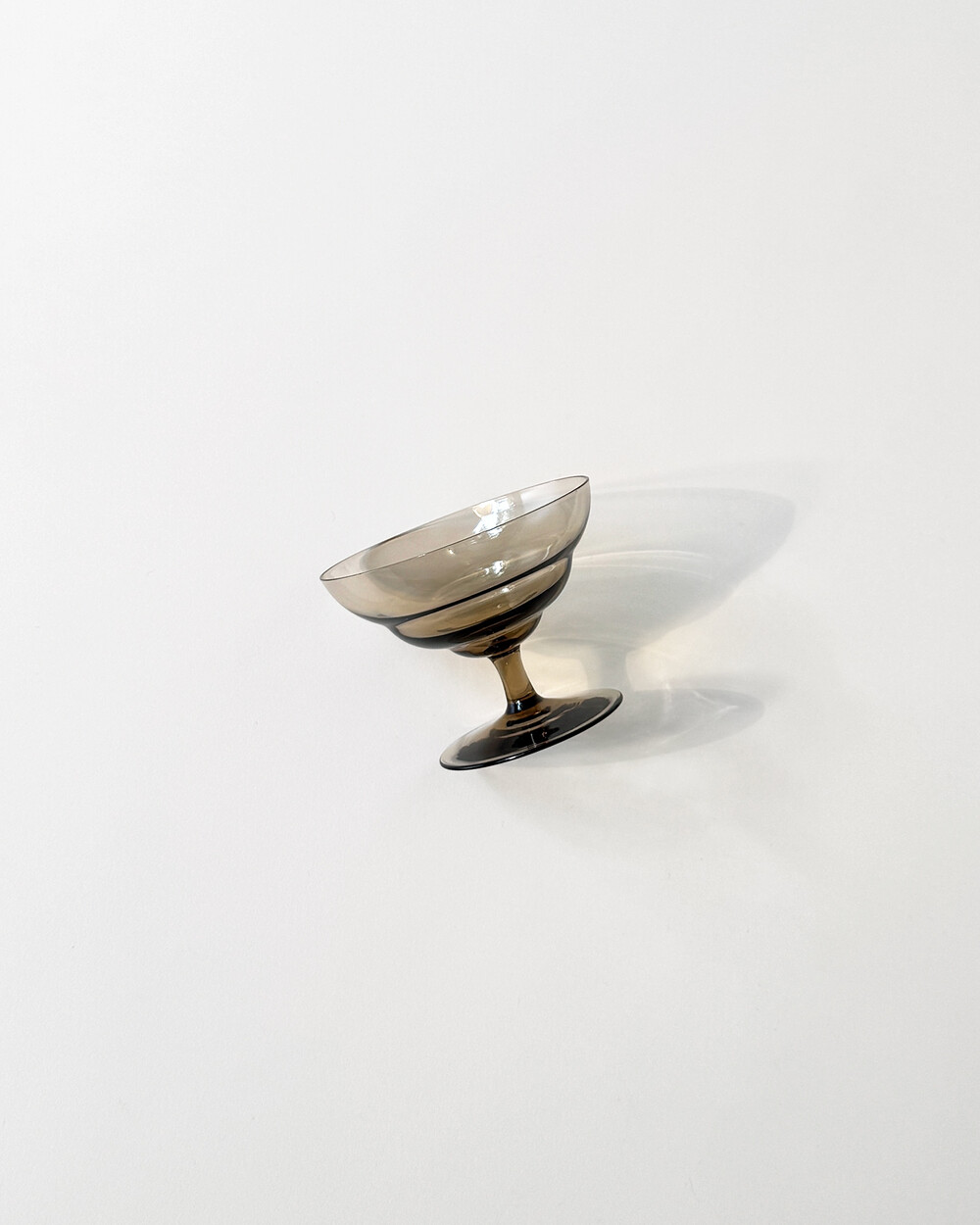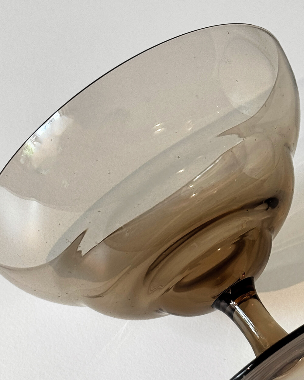 얇고 섬세하게 제작된 스모크드 글라스로, 1970년대 프랑스에서 디저트와 샴페인을 즐기기 위해 만들어진 잔입니다.
