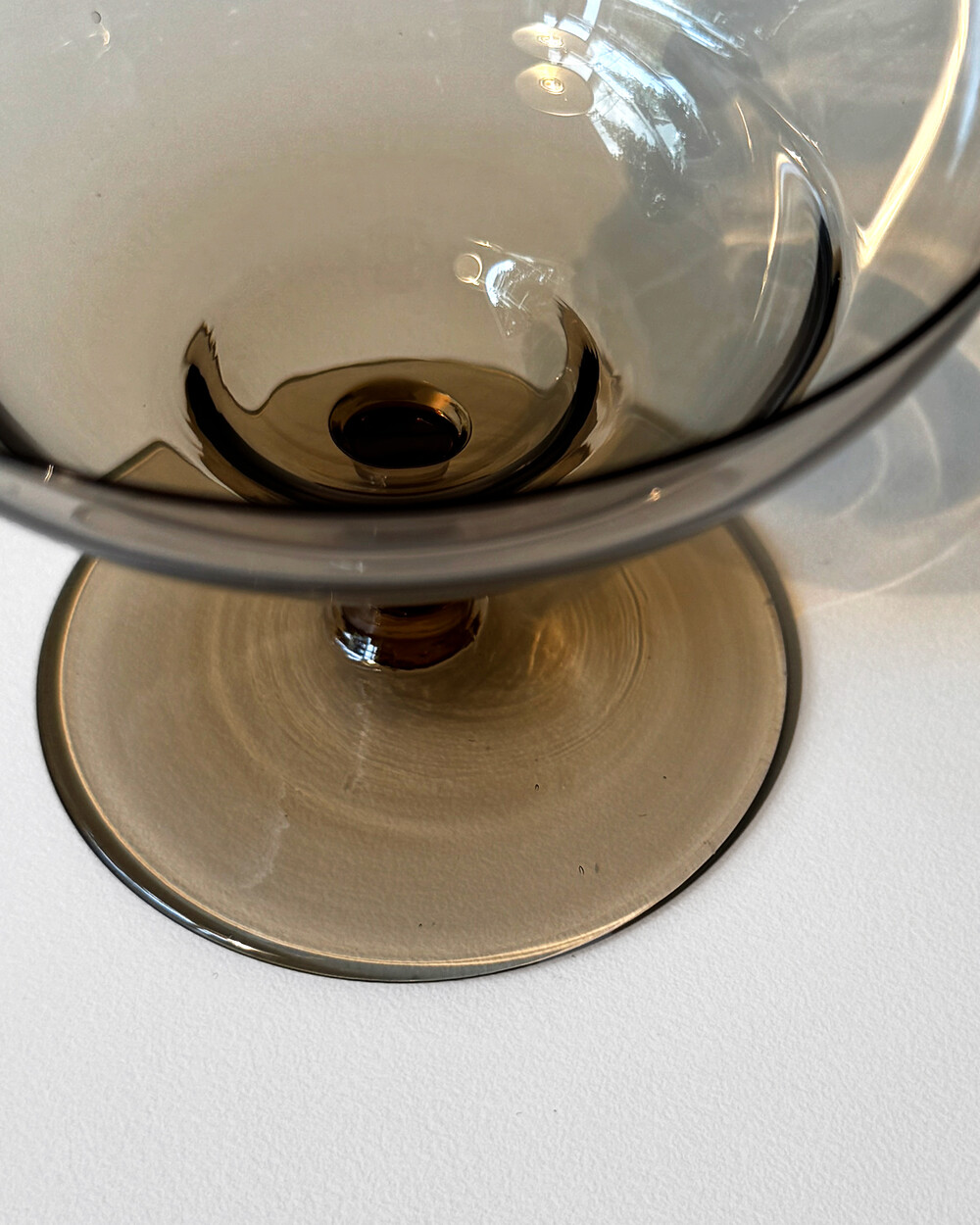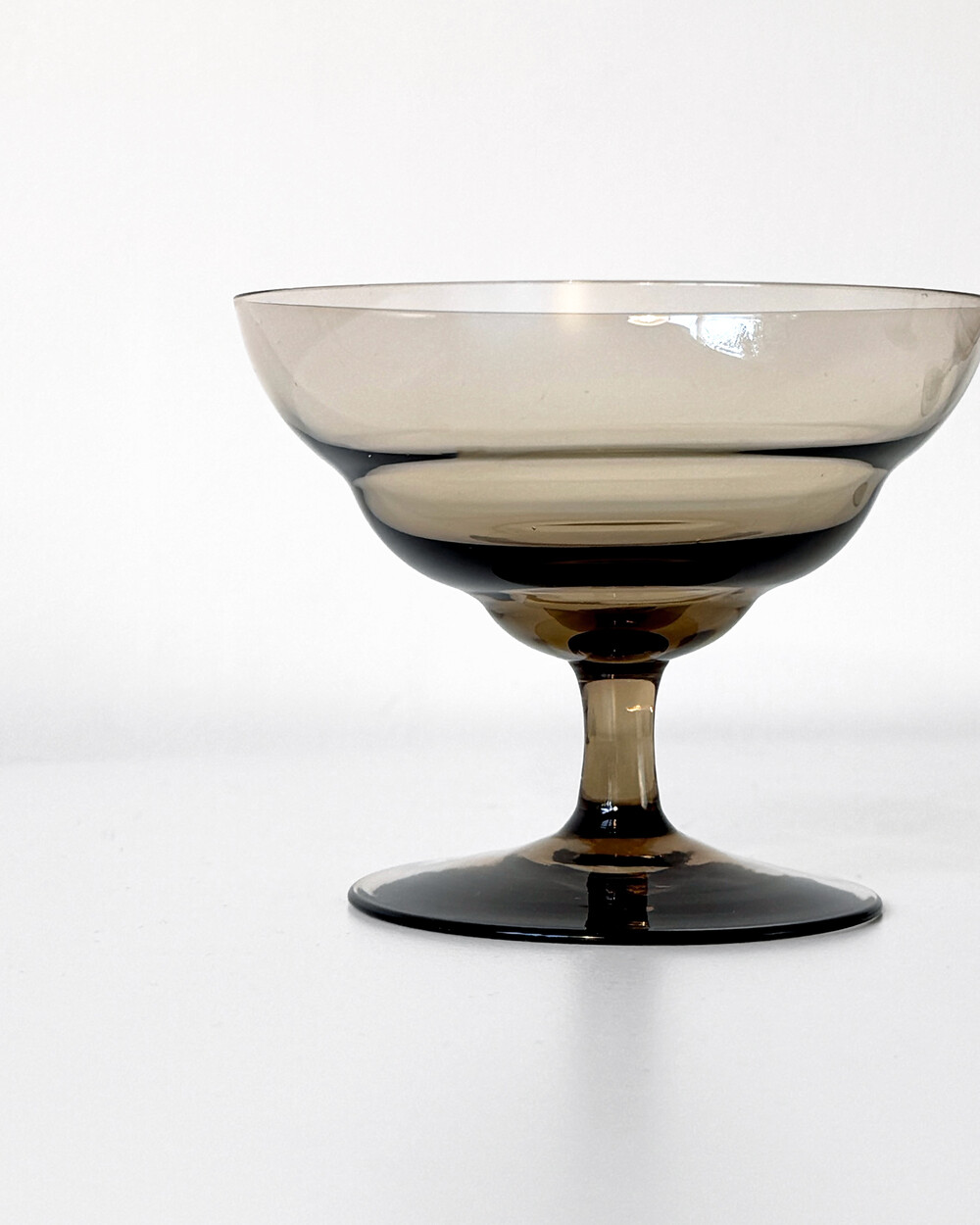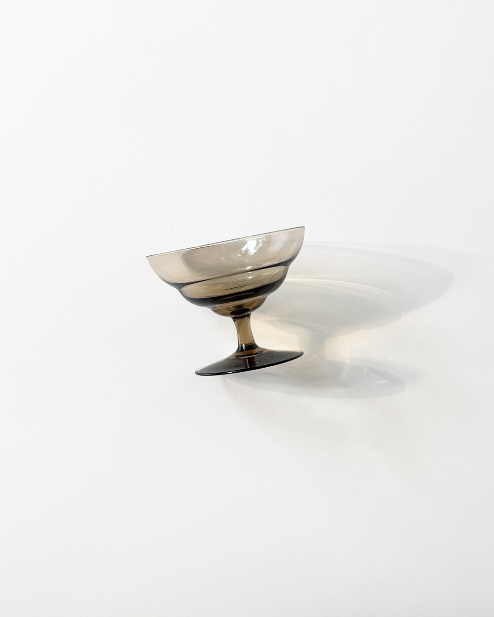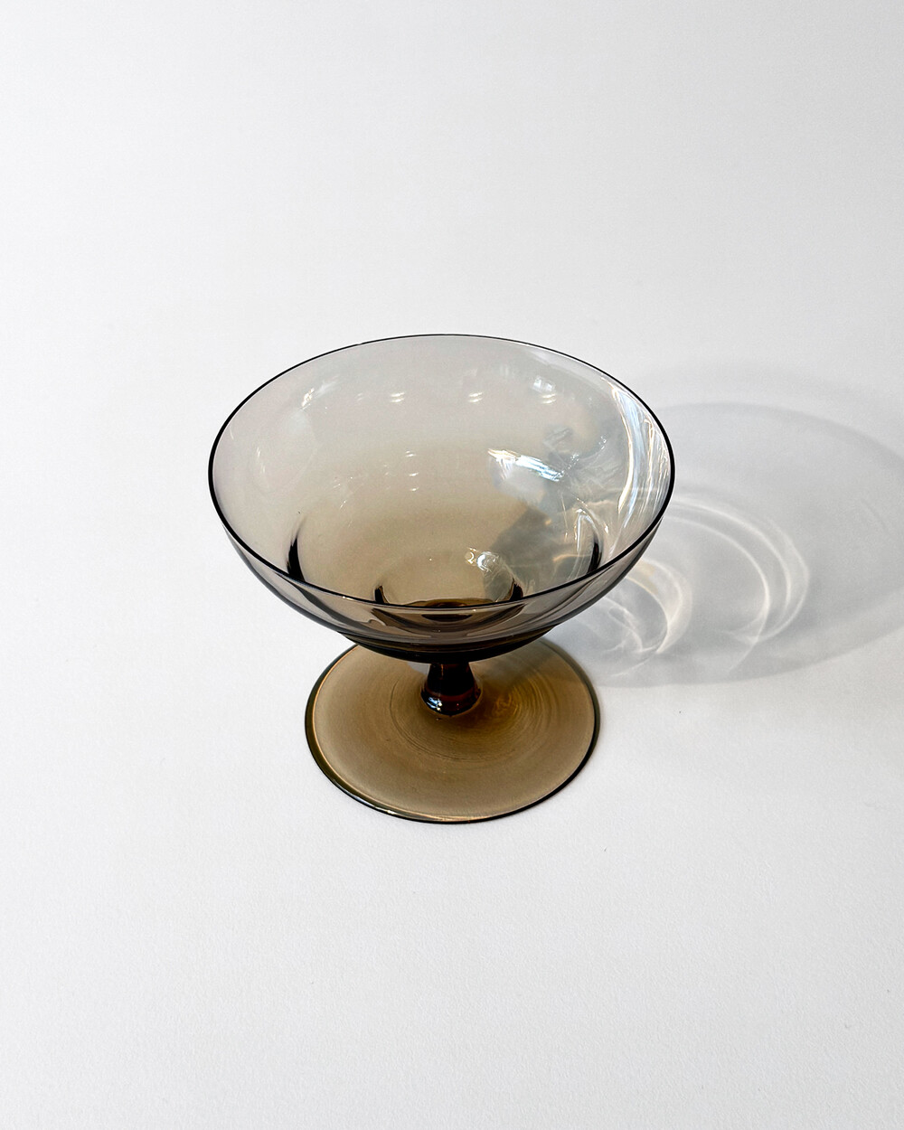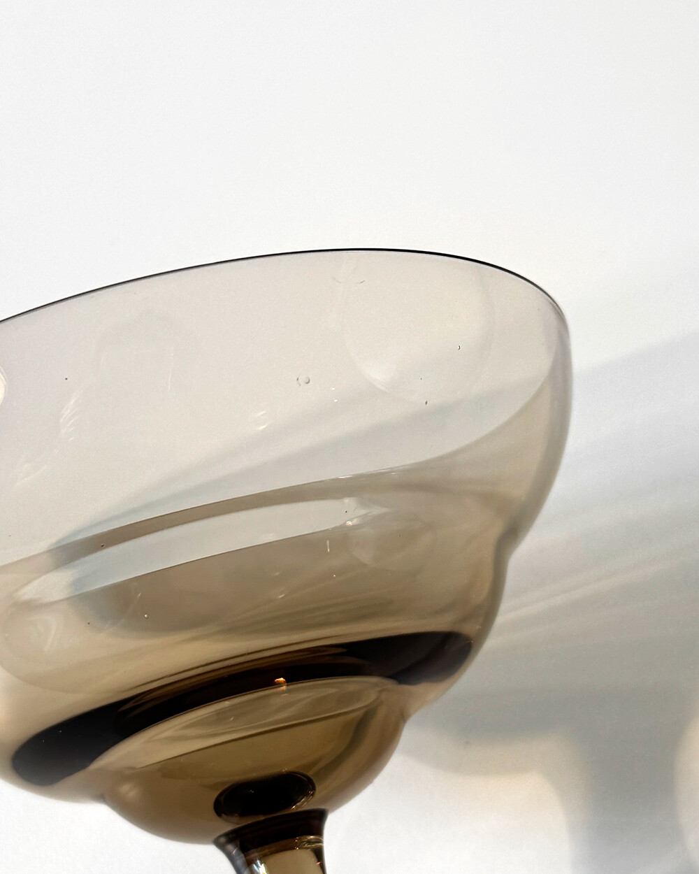 얇고 섬세하게 제작된 스모크드 글라스로, 1970년대 프랑스에서 디저트와 샴페인을 즐기기 위해 만들어진 잔입니다.