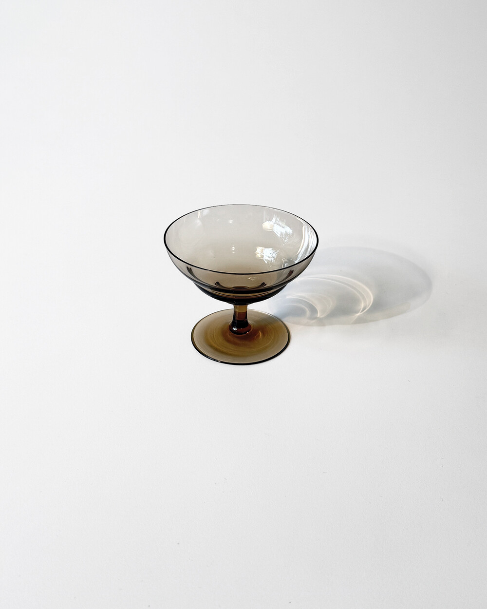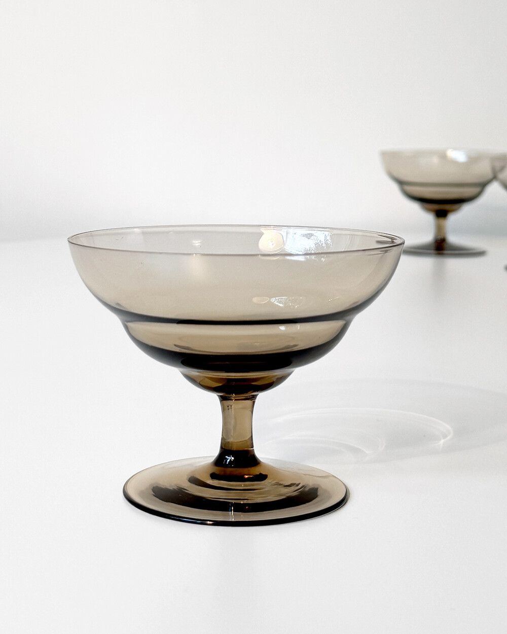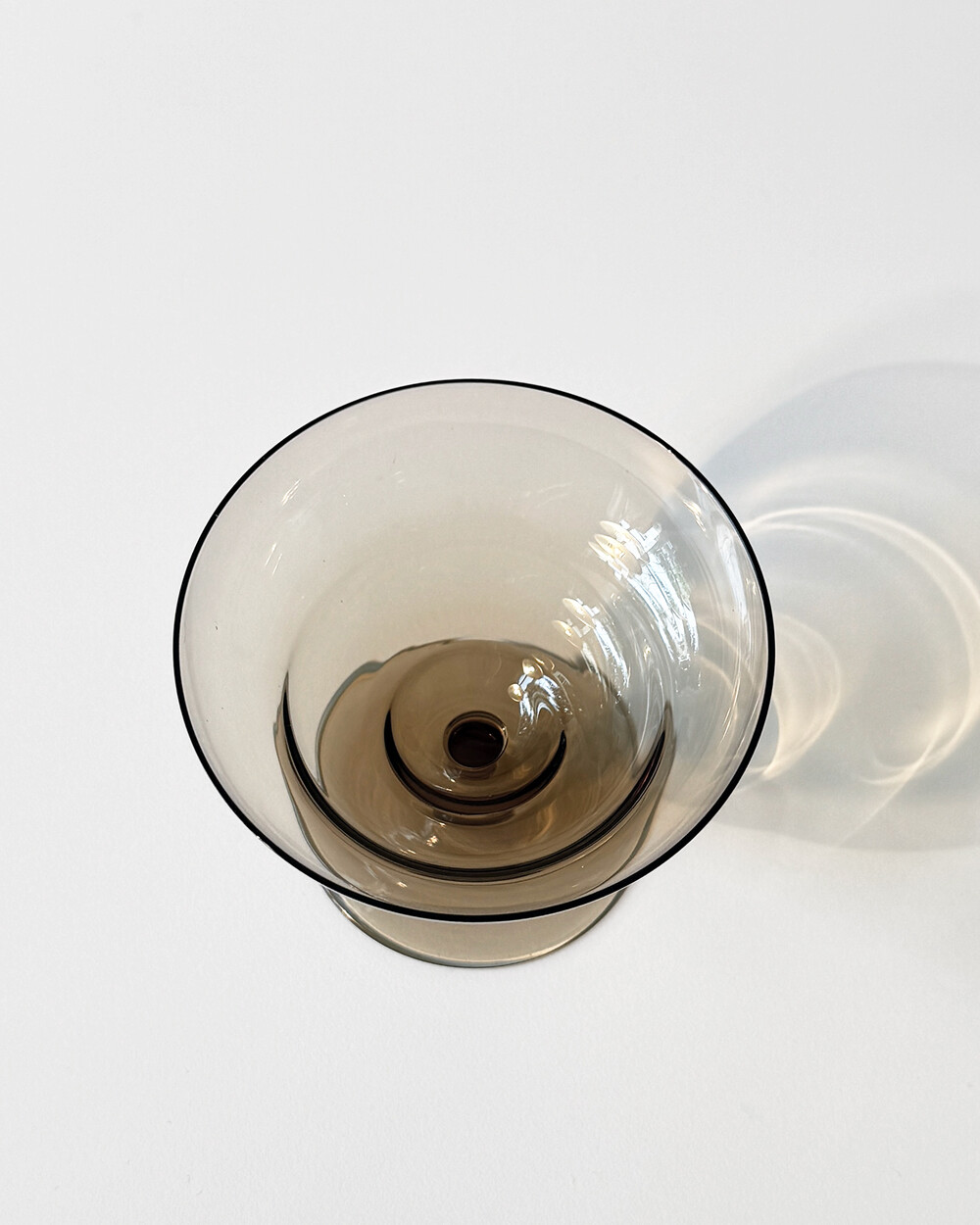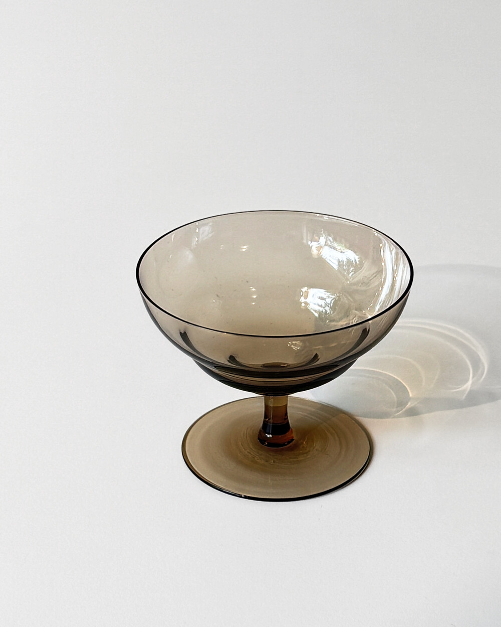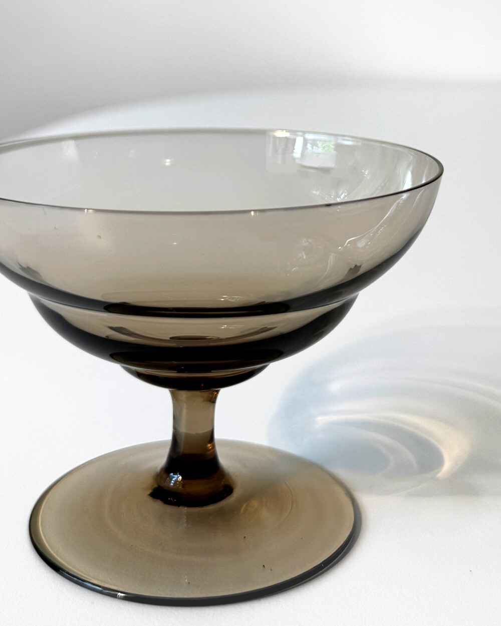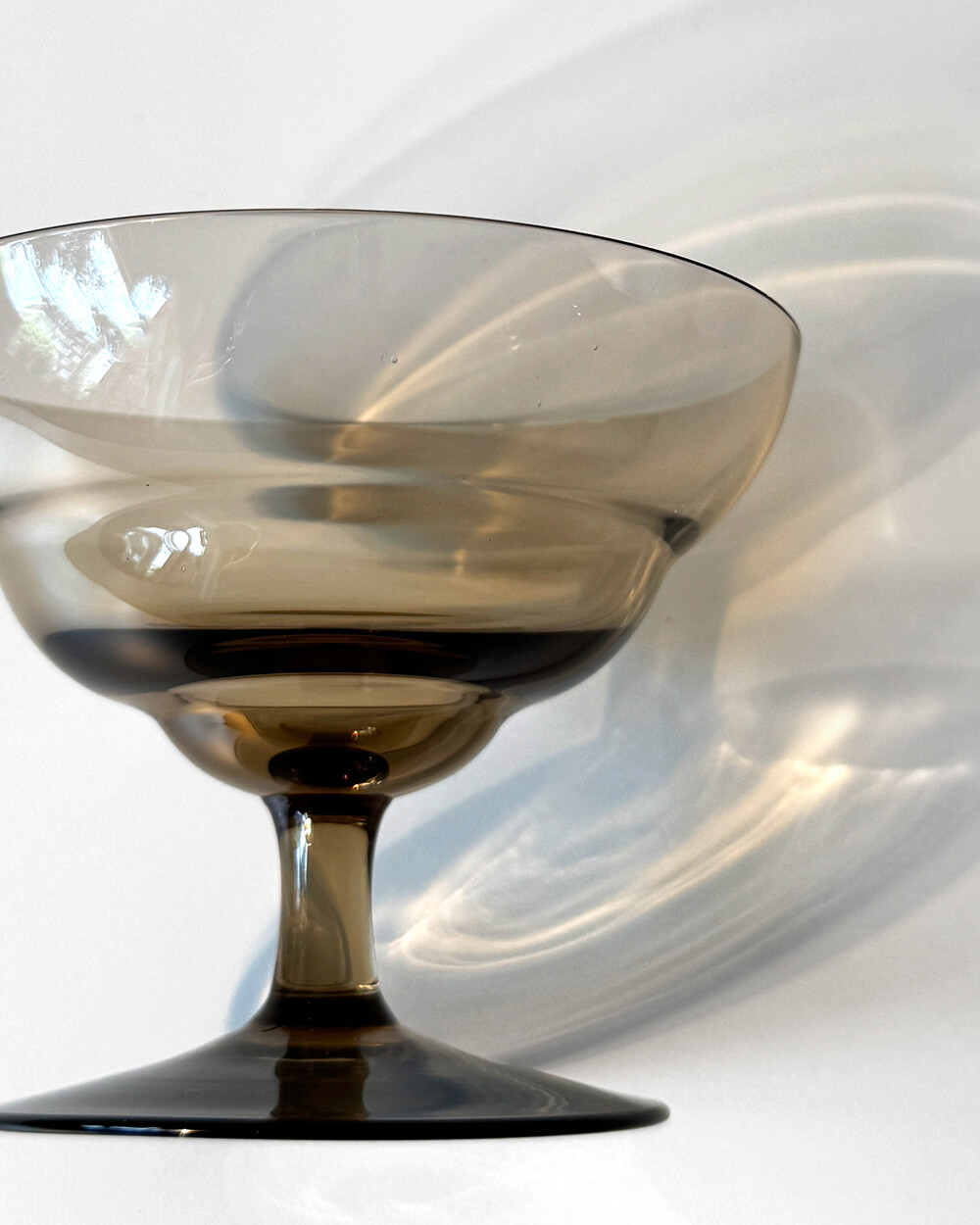 얇고 섬세하게 제작된 스모크드 글라스로, 1970년대 프랑스에서 디저트와 샴페인을 즐기기 위해 만들어진 잔입니다.