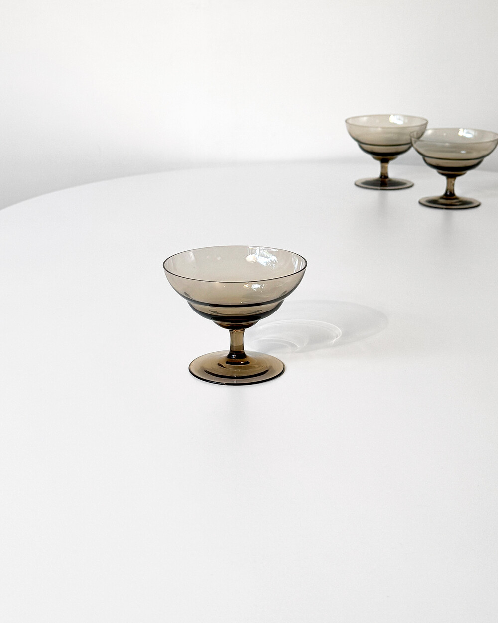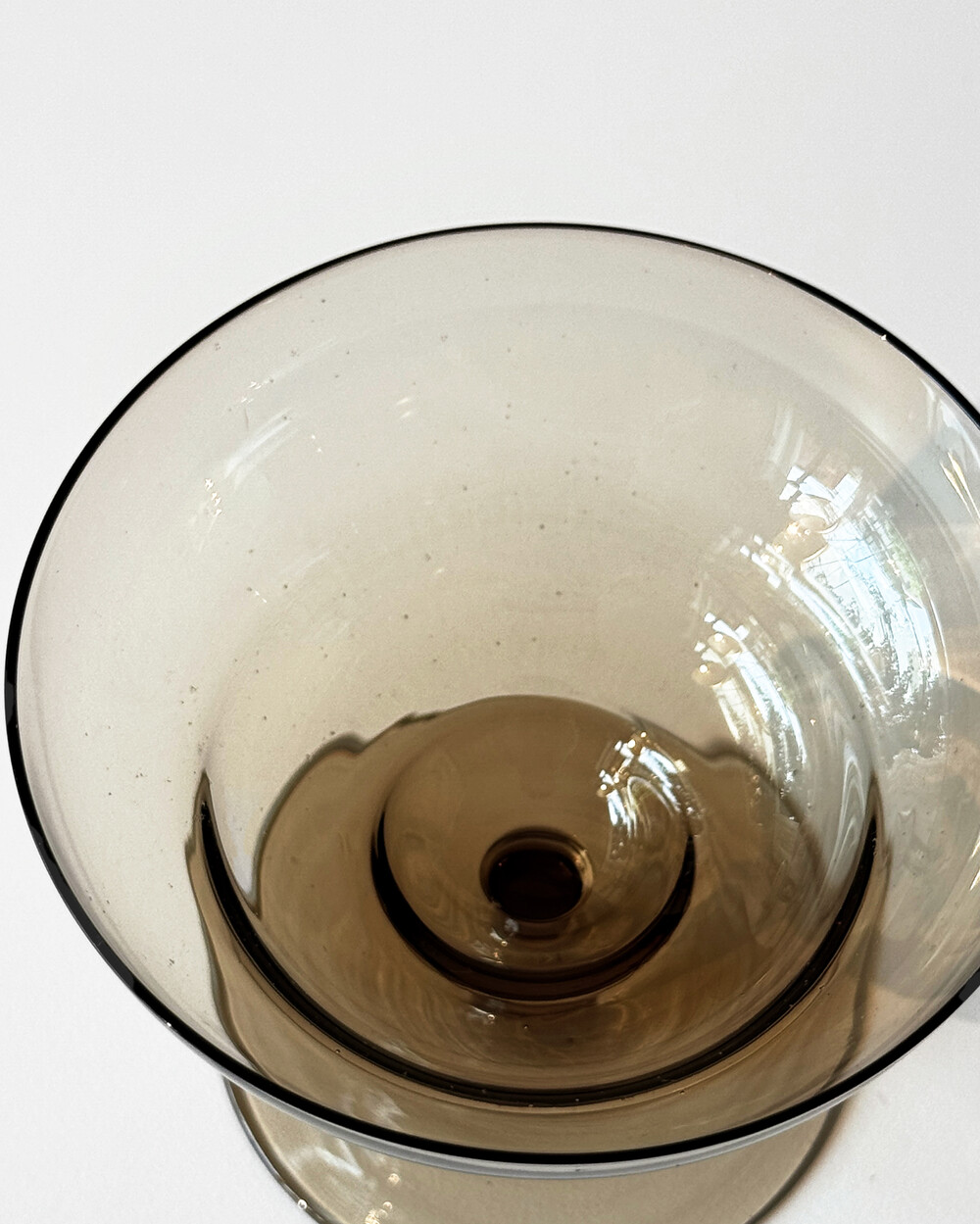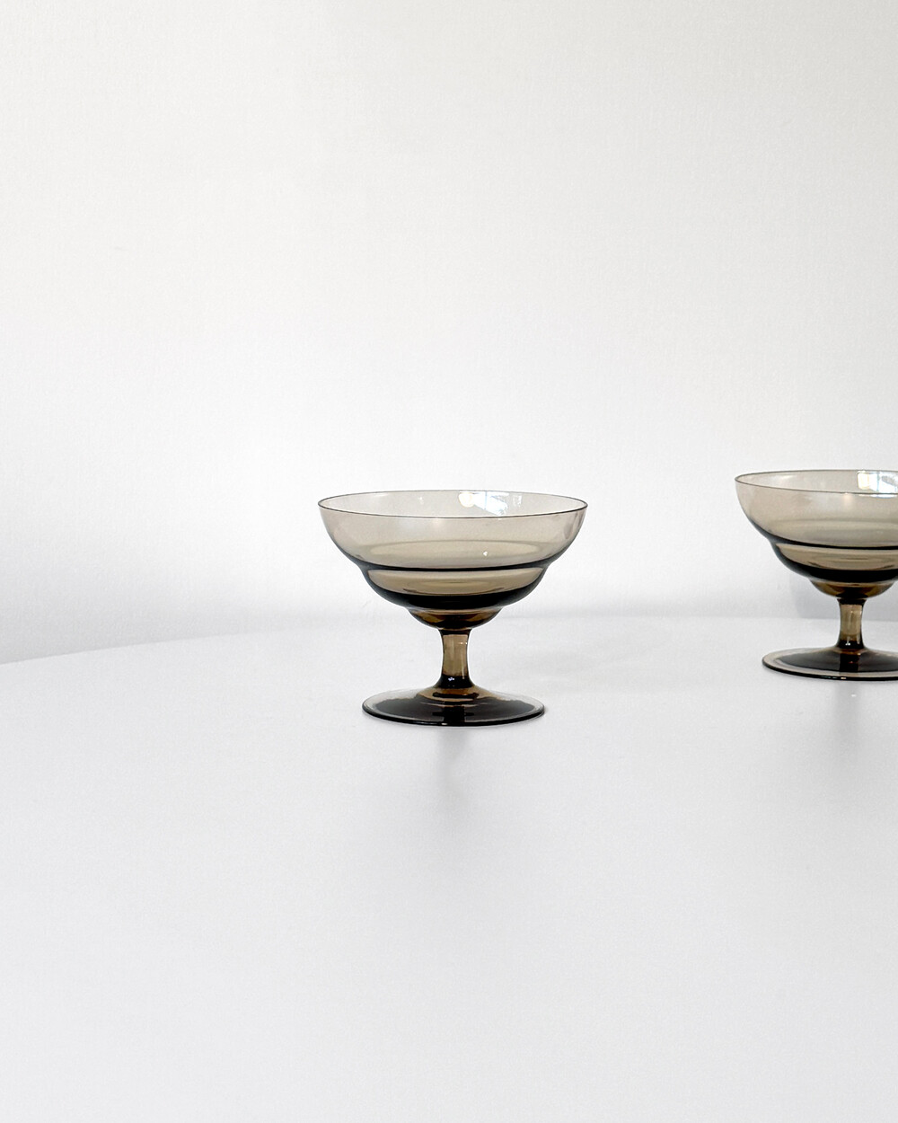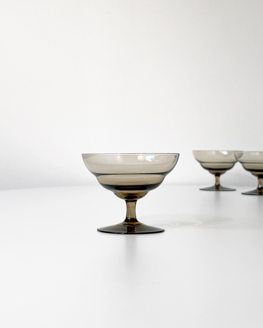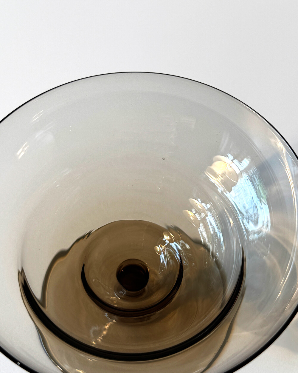 얇고 섬세하게 제작된 스모크드 글라스로, 1970년대 프랑스에서 디저트와 샴페인을 즐기기 위해 만들어진 잔입니다.