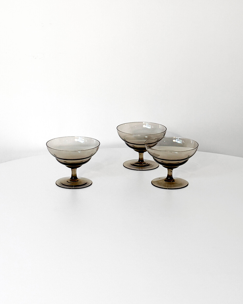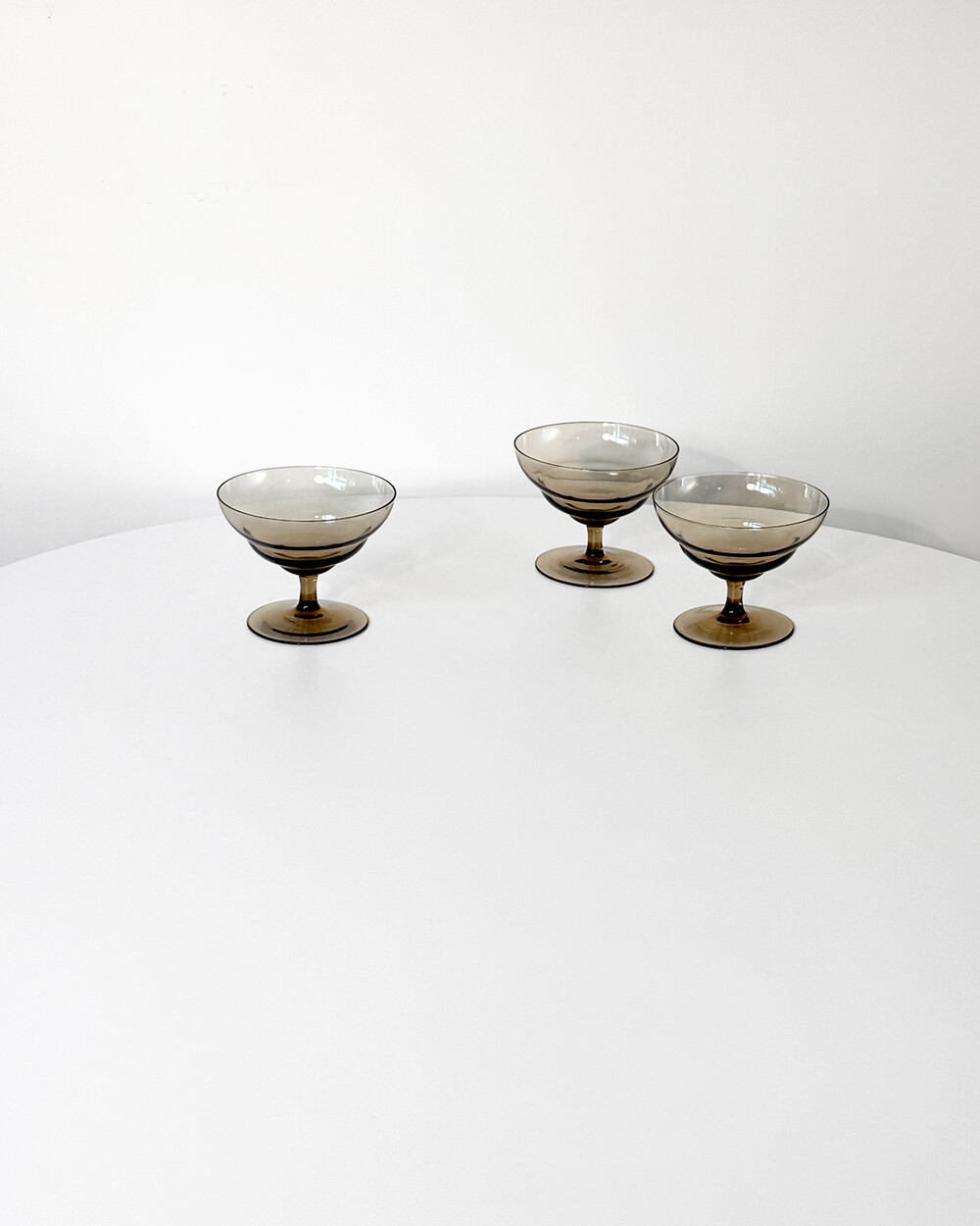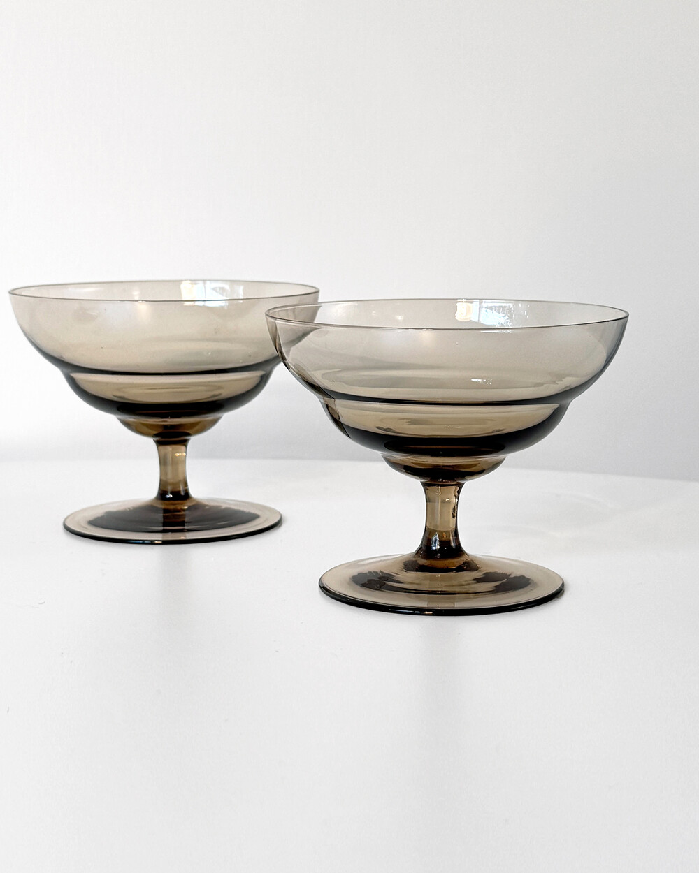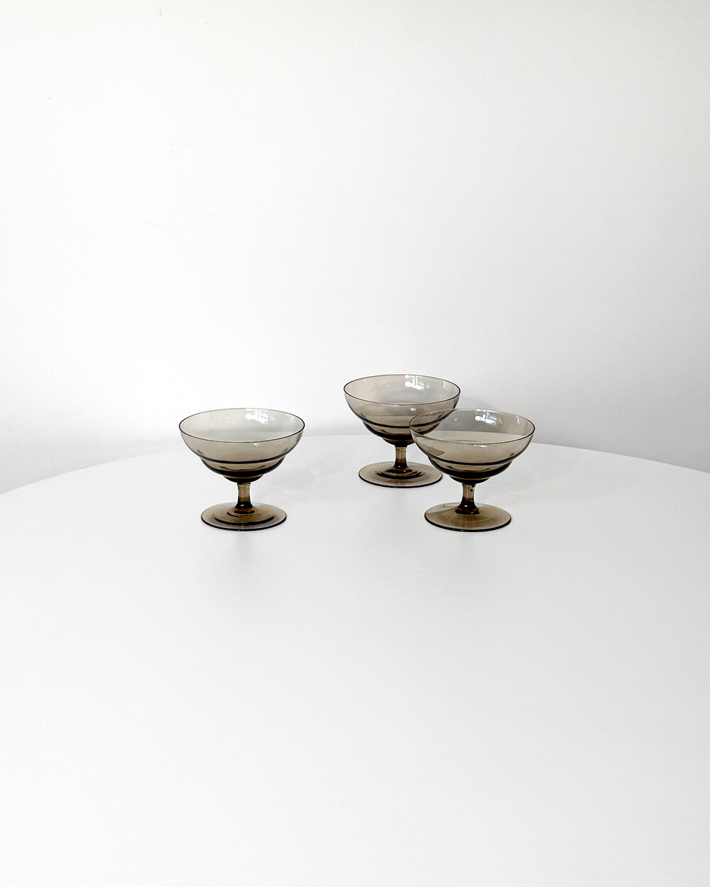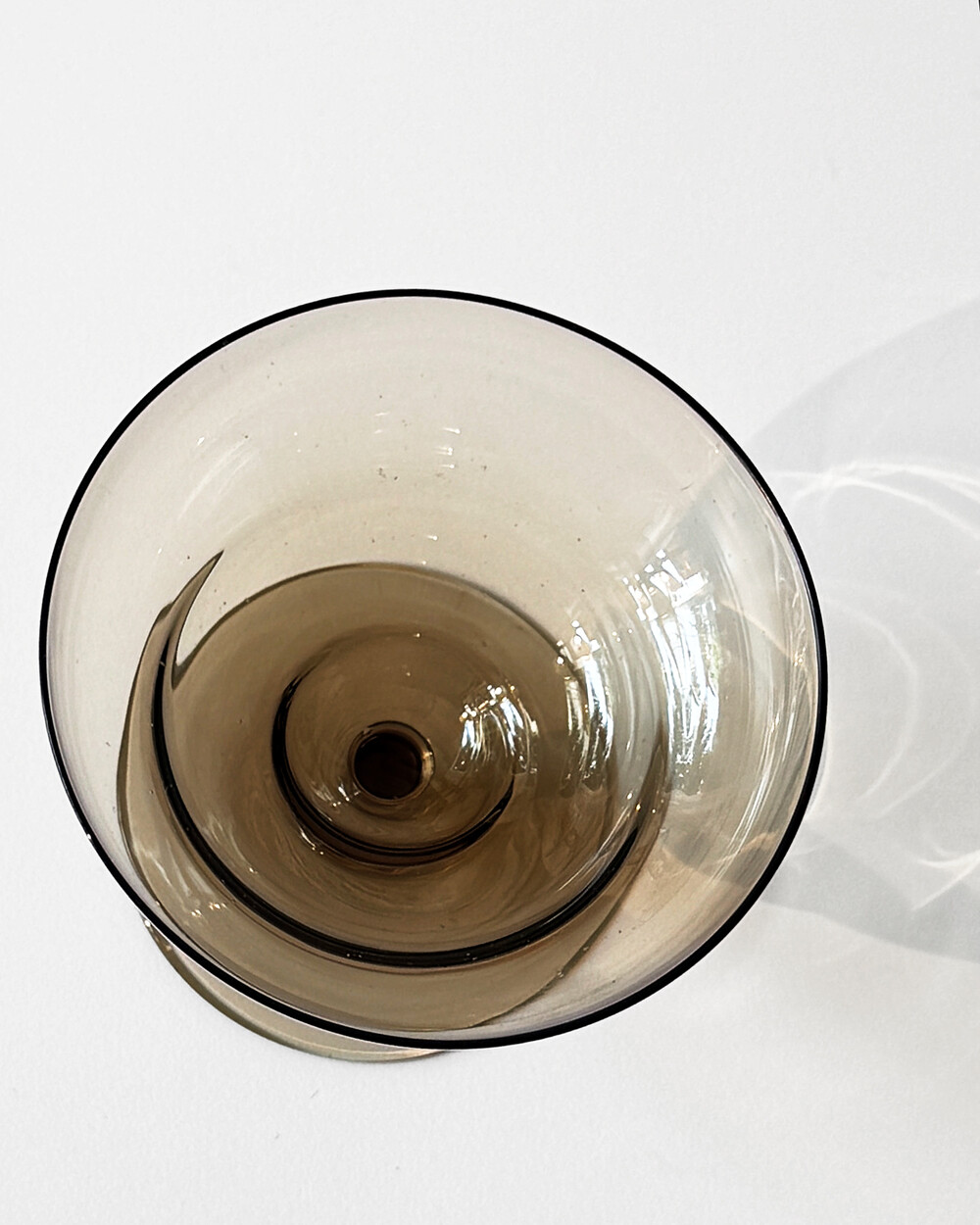 얇고 섬세하게 제작된 스모크드 글라스로, 1970년대 프랑스에서 디저트와 샴페인을 즐기기 위해 만들어진 잔입니다.