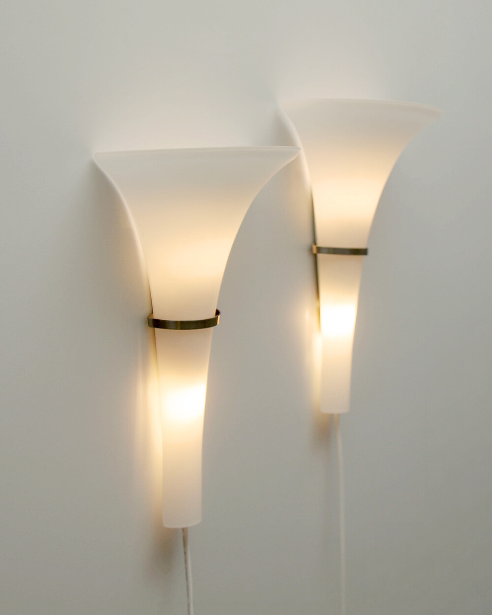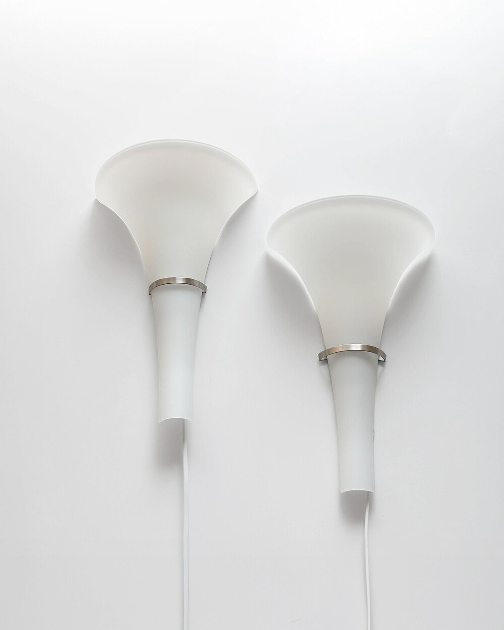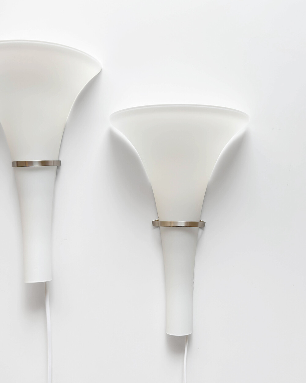 1980s Germany Opaline Glass Trumpet Wall Lamp