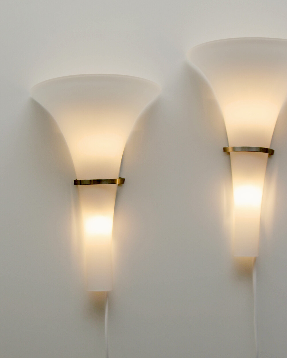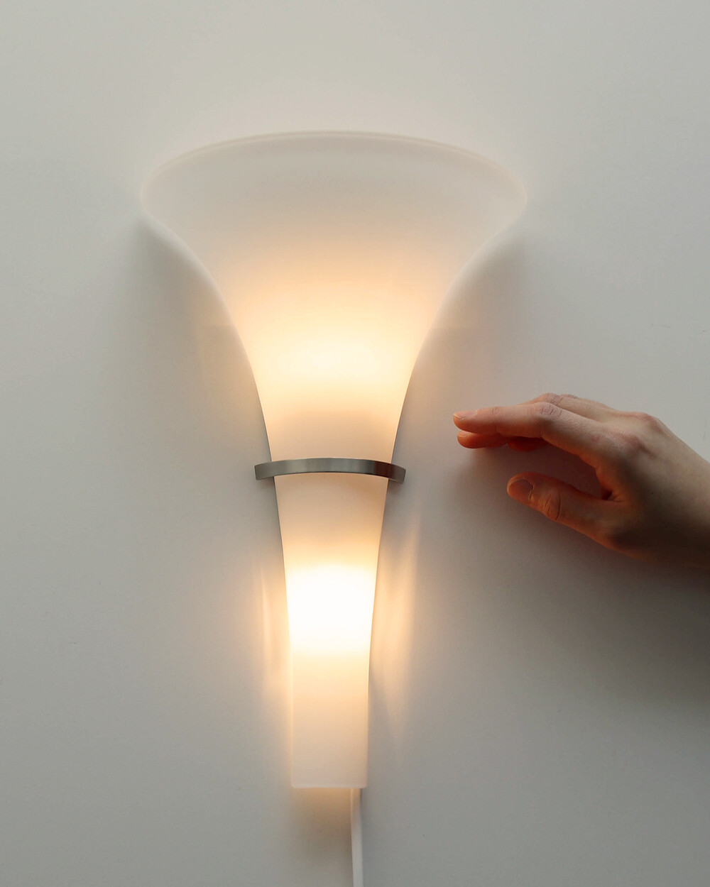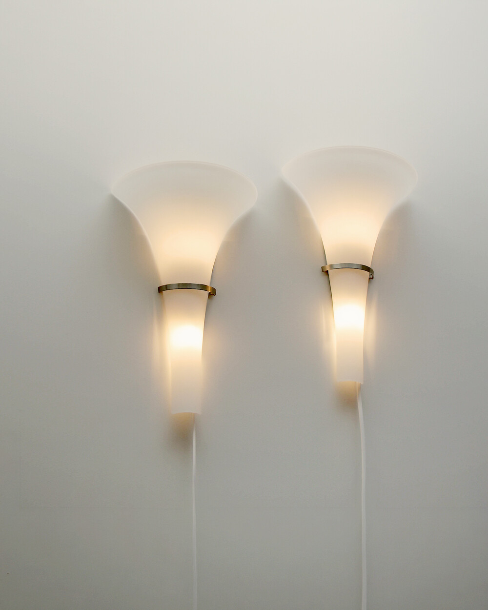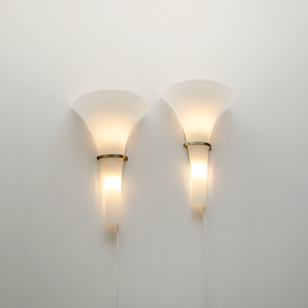 1980s Germany Opaline Glass Trumpet Wall Lamp