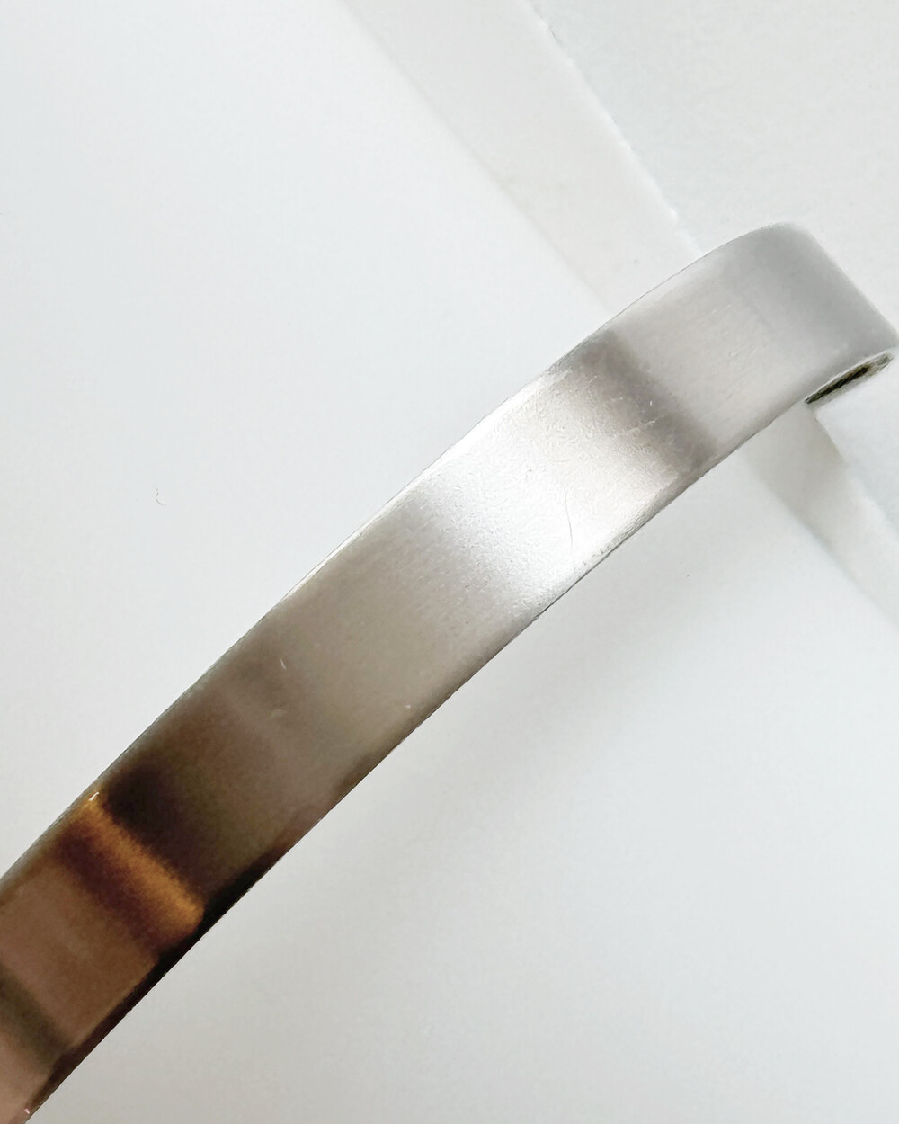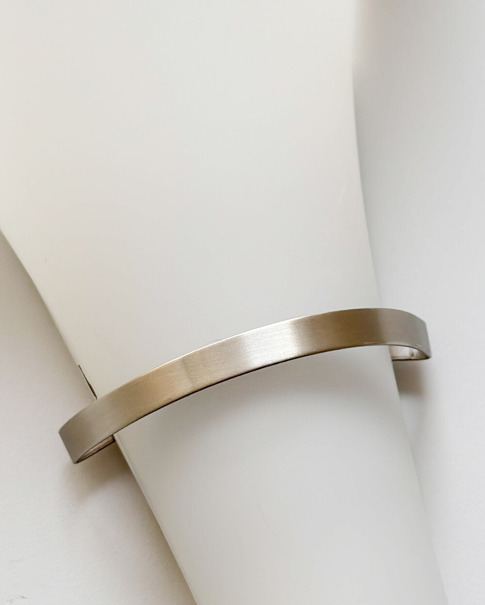 실버 메탈 장식이 포인트로 더해진 절제된 구성과 세로로 길게 뻗은 형태가 만들어내는 우아한 긴장감이 조화를 이룹니다.
