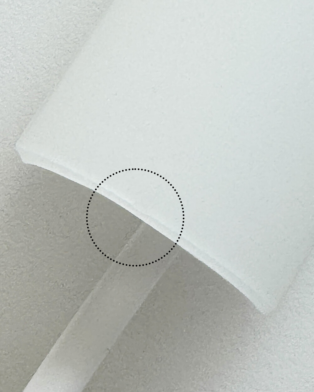 셰이드 내부에는 따뜻하고 은은한 색의 할로겐 전구가 상하로 배치되어 있어, 빛이 부드럽게 확산됩니다.