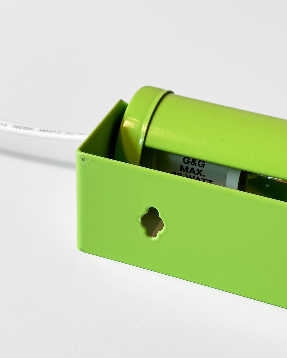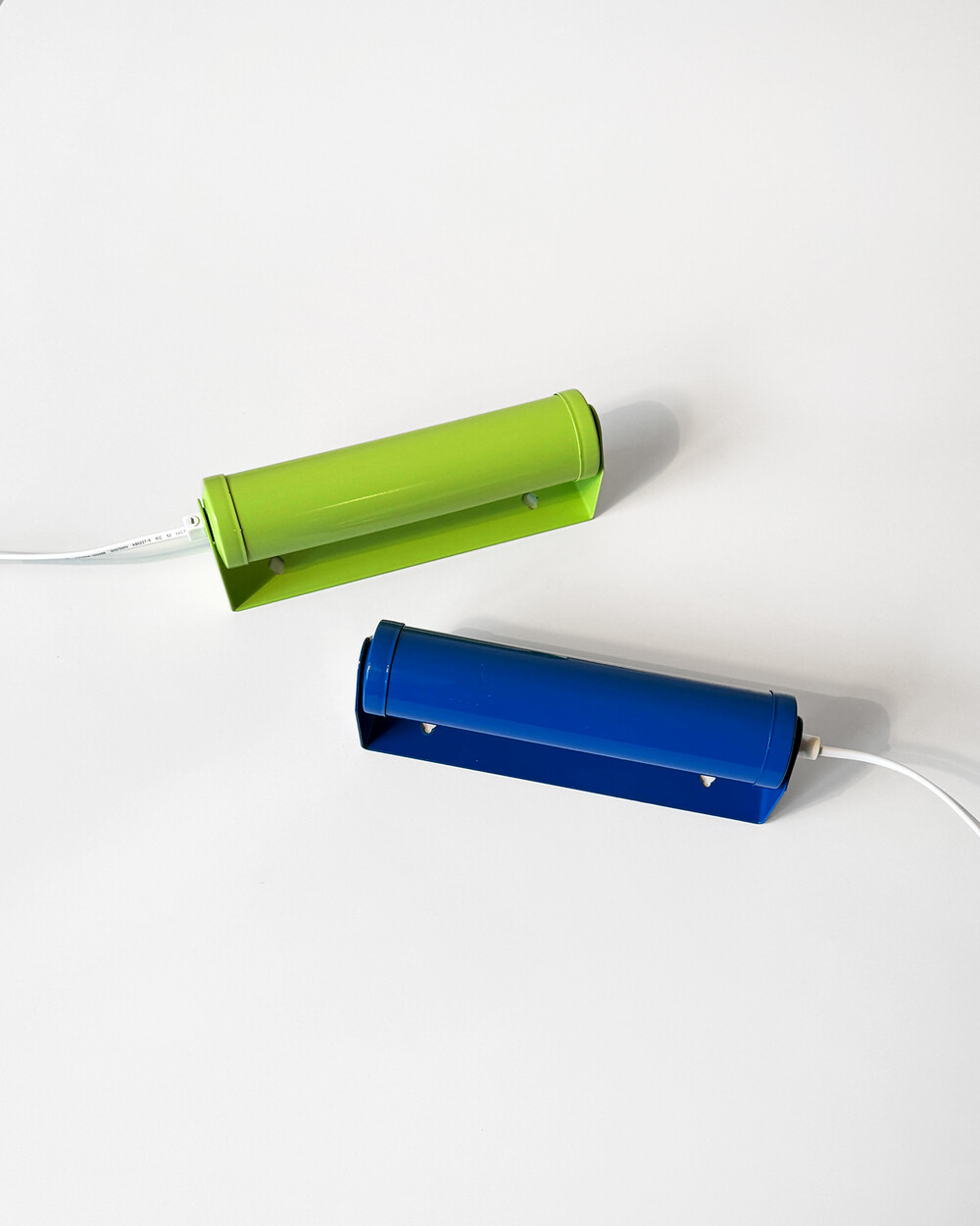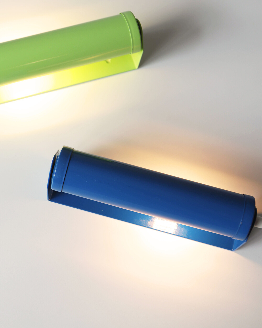 1980년대 미니멀한 포스트모던 디자인이 돋보이는 G&G의 월램프입니다. G&G는 1970년대 후반부터 1990년대 초반까지 네덜란드와 독일에서 활동한 조명 브랜드입니다. 가볍고 견고한 메탈 소재에 회전 가능한 헤드 구조를 갖추어 벽면에 가로나 세로로 설치할 수 있으며, 유니크한 테이블 조명으로도 활용 가능합니다. 라임그린과 블루 두 가지 컬러로 입고되었습니다.