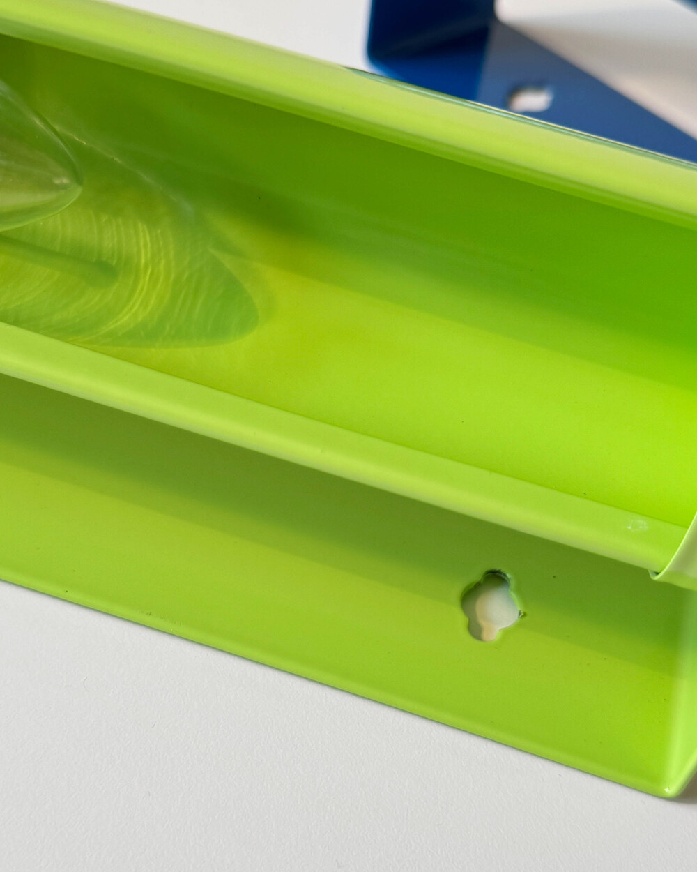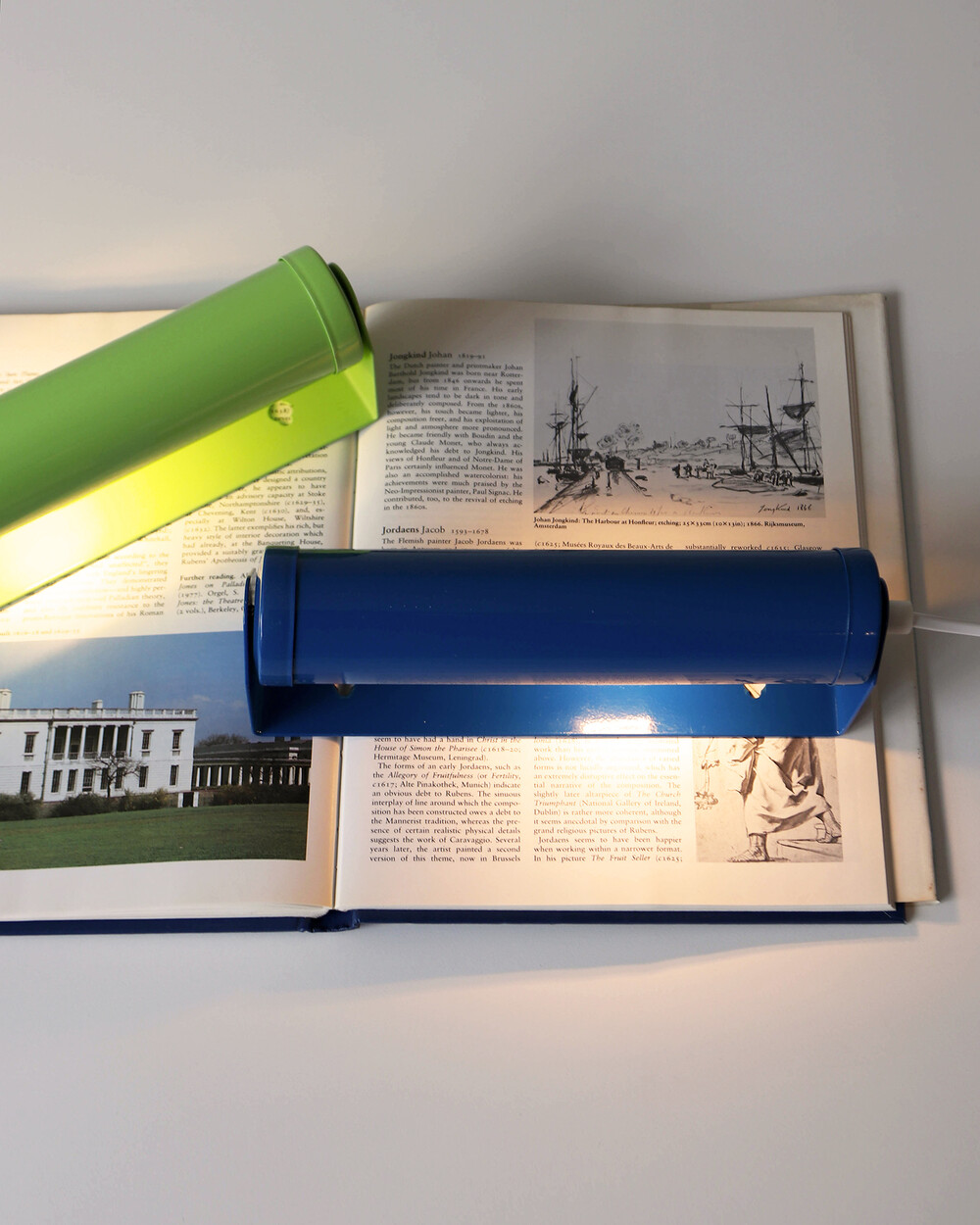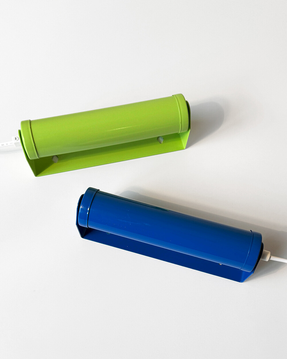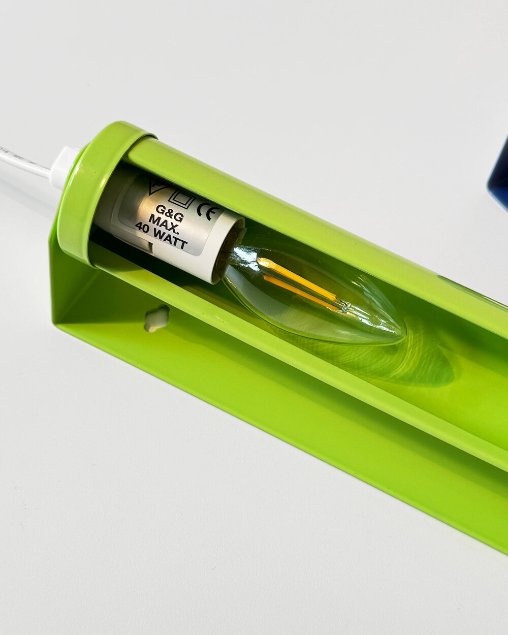 1980년대 미니멀한 포스트모던 디자인이 돋보이는 G&G의 월램프입니다. G&G는 1970년대 후반부터 1990년대 초반까지 네덜란드와 독일에서 활동한 조명 브랜드입니다. 가볍고 견고한 메탈 소재에 회전 가능한 헤드 구조를 갖추어 벽면에 가로나 세로로 설치할 수 있으며, 유니크한 테이블 조명으로도 활용 가능합니다. 라임그린과 블루 두 가지 컬러로 입고되었습니다.